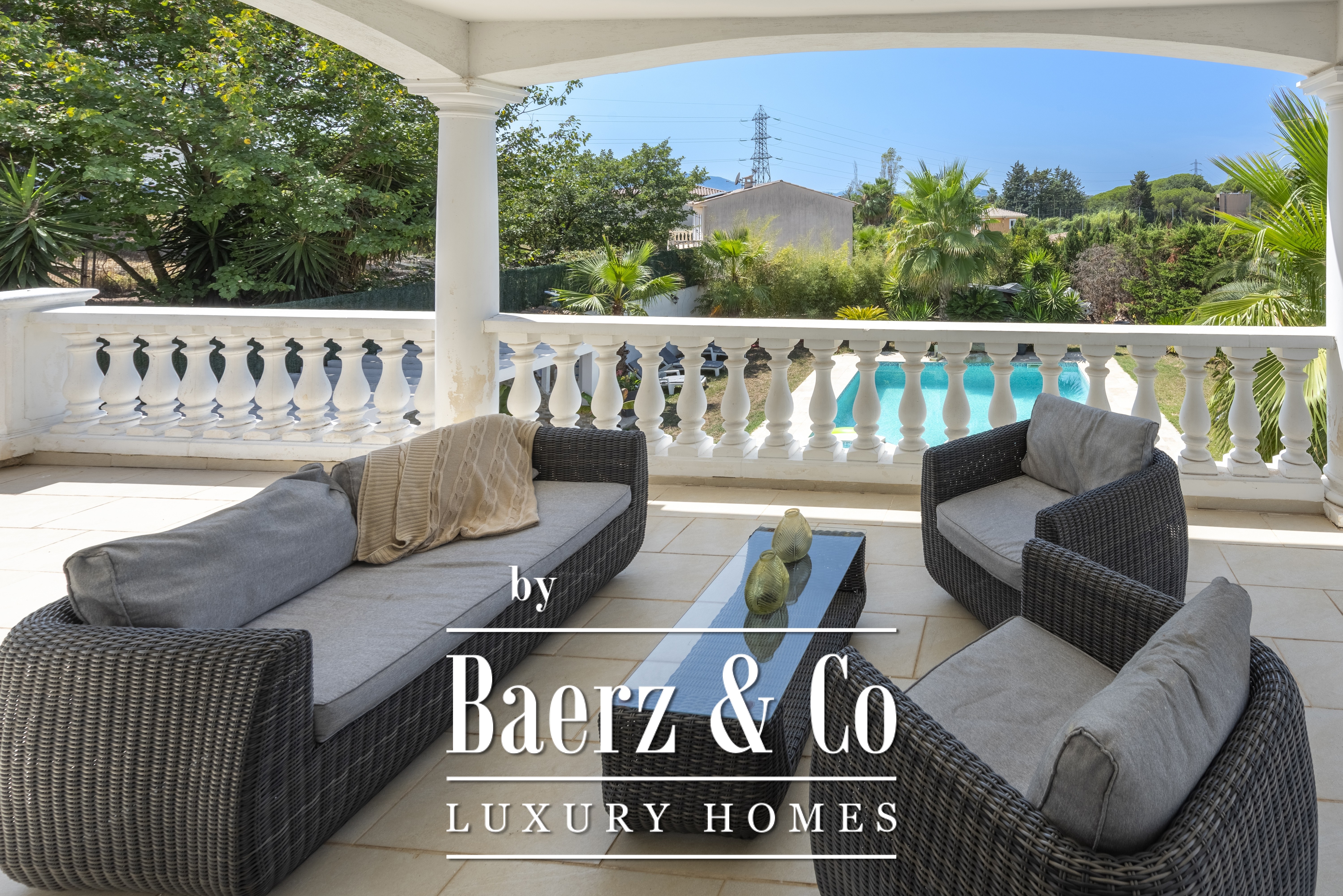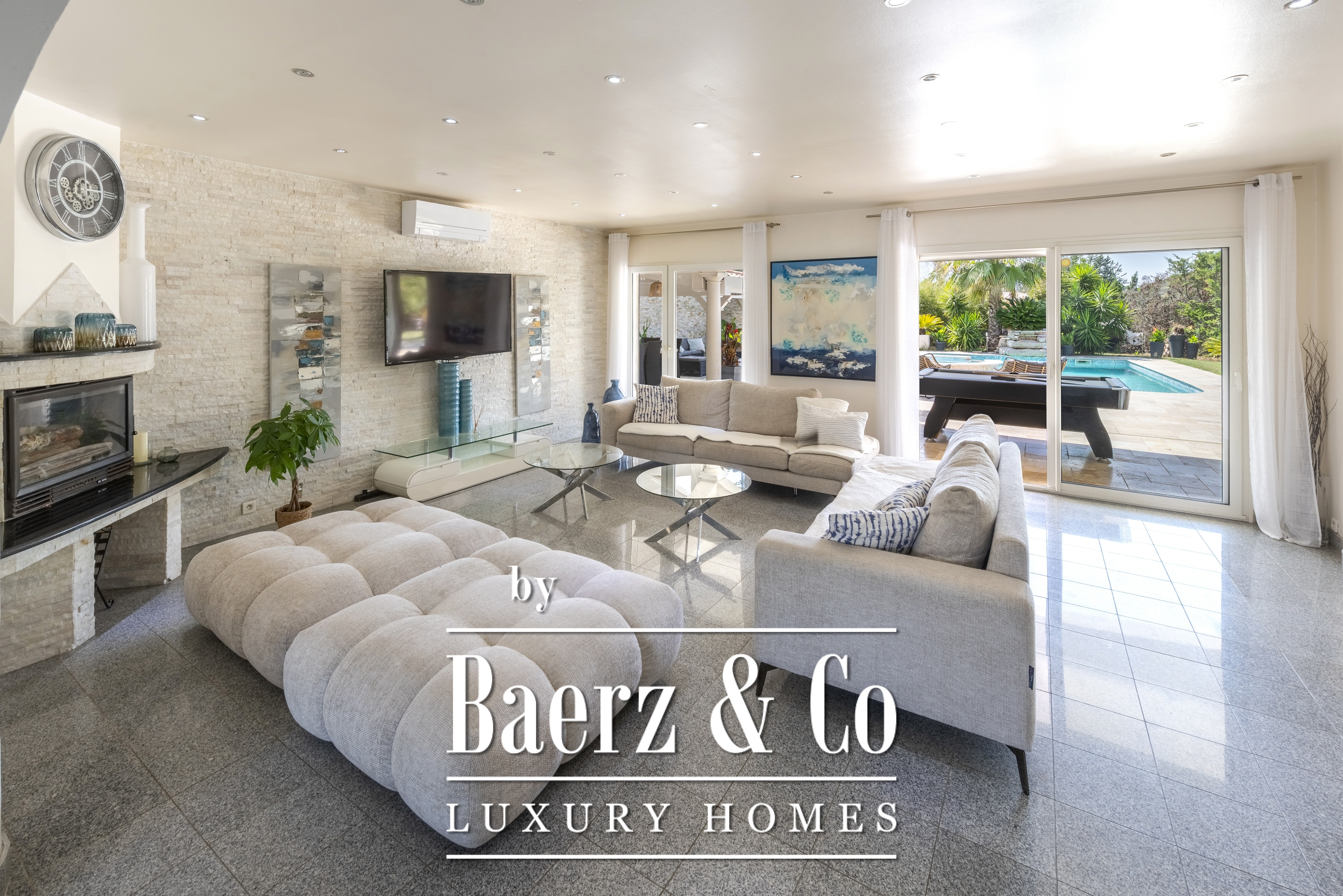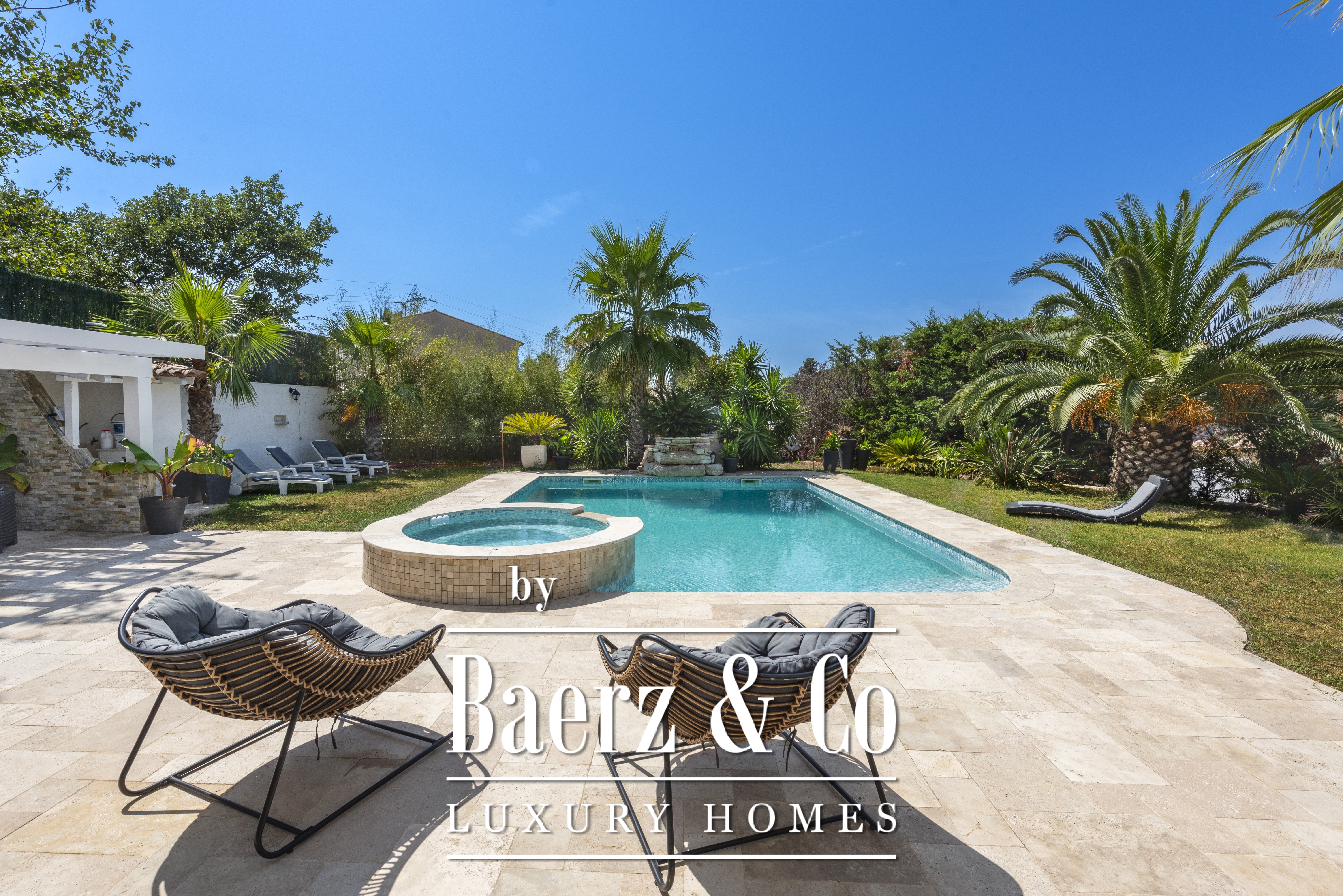Villa Fréjus präsentiert eine zum Verkauf stehende Villa mit 172 m², die mit großzügigen Räumen und stilvollem Licht gestaltet wurde und sich in einer privaten, gesicherten Wohnanlage befindet. Diese Immobilie liegt in einem ruhigen Wohnumfeld und bietet dennoch unmittelbaren Zugang zu allen Annehmlichkeiten, darunter Geschäfte, Schulen und Hauptverkehrsstraßen. Die Villa Fréjus öffnet sich mit einer lichtdurchfluteten Wohnfläche und einer voll ausgestatteten offenen Küche, die optimal für geselliges Beisammensein gestaltet wurde. Mit Westausrichtung öffnet sich der Bereich elegant auf eine großzügige Terrasse mit Blick auf den Pool und die Gartenanlage. Der Schlaftrakt umfasst vier Schlafzimmer, ein großes Badezimmer, ein Duschbad sowie eine funktionale Waschküche. Das Anwesen erstreckt sich über ein 1.082 m² großes Grundstück mit offenen und überdachten Terrassen, die Bereiche für sommerliches Speisen, Entspannung am Pool sowie einen separaten Jacuzzi schaffen. Granitfliesen, Fußbodenheizung, umkehrbare Klimaanlage und elektrische Rollläden unterstreichen das Augenmerk auf Qualität und Komfort. Die Villa verfügt sowohl über eine Garage als auch über reichlich Innen- und Außenstellplätze, was ein privates und angenehmes Wohnkonzept ermöglicht. Die Energieeffizienzklasse B steht für ausgewogene, moderne Effizienz.