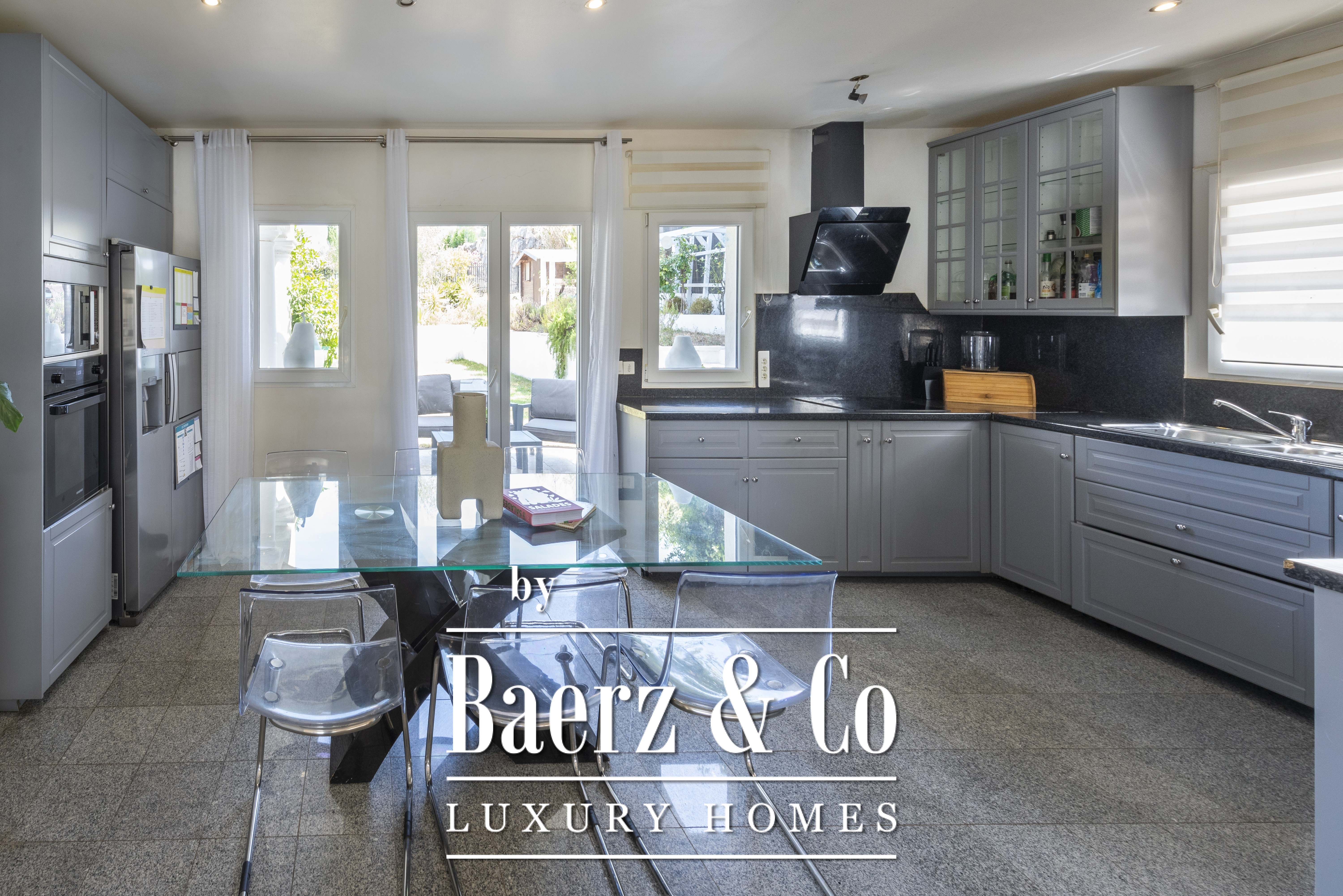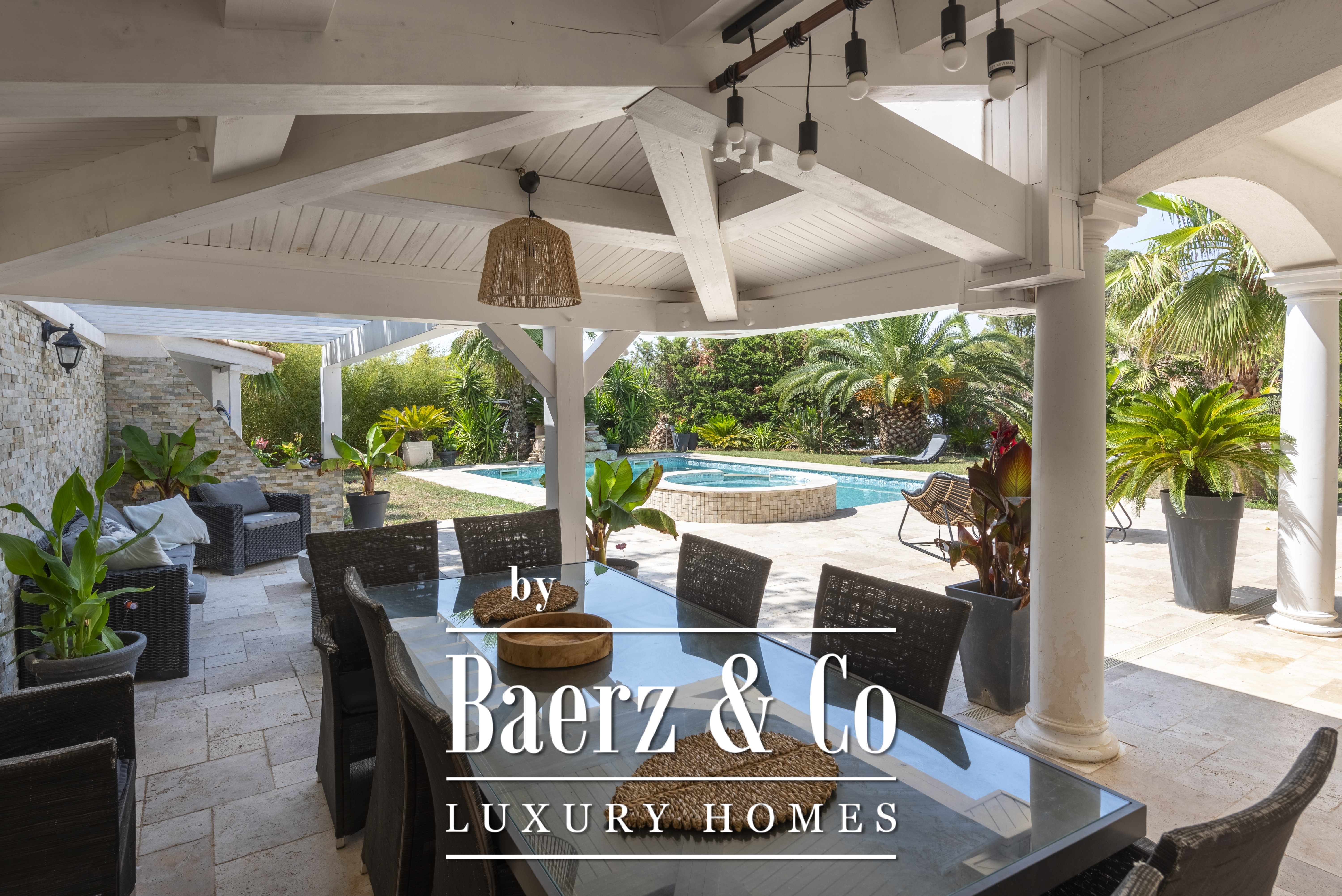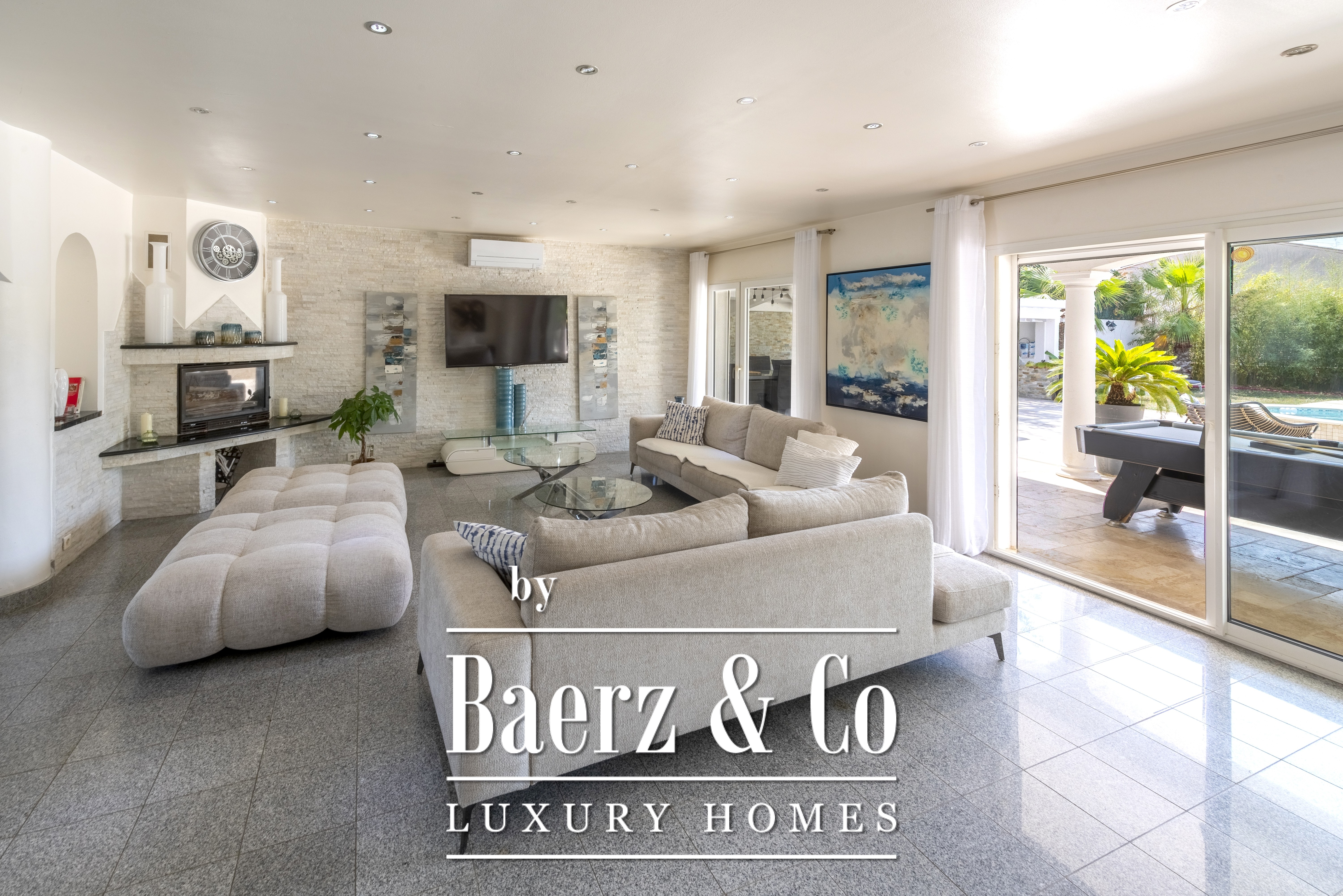 Villa Fréjus präsentiert eine zum Verkauf stehende Villa mit 172 m², die mit großzügigen Räumen und stilvollem Licht gestaltet wurde und sich in einer privaten, gesicherten Wohnanlage befindet. Diese Immobilie liegt in einem ruhigen Wohnumfeld und bietet dennoch unmittelbaren Zugang zu allen Annehmlichkeiten, darunter Geschäfte, Schulen und Hauptverkehrsstraßen. Die Villa Fréjus öffnet sich mit einer lichtdurchfluteten Wohnfläche und einer voll ausgestatteten offenen Küche, die optimal für geselliges Beisammensein gestaltet wurde. Mit Westausrichtung öffnet sich der Bereich elegant auf eine großzügige Terrasse mit Blick auf den Pool und die Gartenanlage. Der Schlaftrakt umfasst vier Schlafzimmer, ein großes Badezimmer, ein Duschbad sowie eine funktionale Waschküche. Das Anwesen erstreckt sich über ein 1.082 m² großes Grundstück mit offenen und überdachten Terrassen, die Bereiche für sommerliches Speisen, Entspannung am Pool sowie einen separaten Jacuzzi schaffen. Granitfliesen, Fußbodenheizung, umkehrbare Klimaanlage und elektrische Rollläden unterstreichen das Augenmerk auf Qualität und Komfort. Die Villa verfügt sowohl über eine Garage als auch über reichlich Innen- und Außenstellplätze, was ein privates und angenehmes Wohnkonzept ermöglicht. Die Energieeffizienzklasse B steht für ausgewogene, moderne Effizienz.