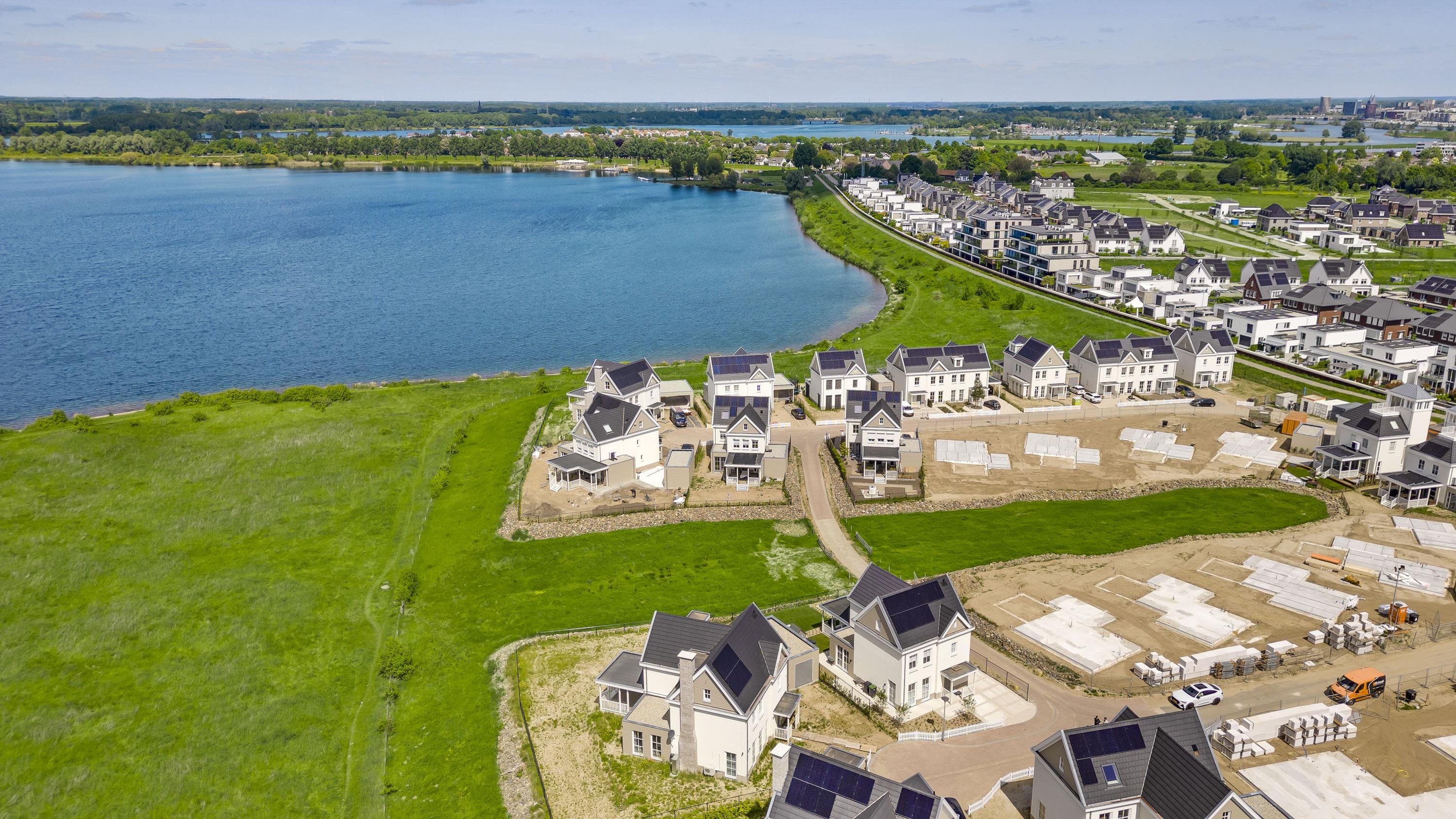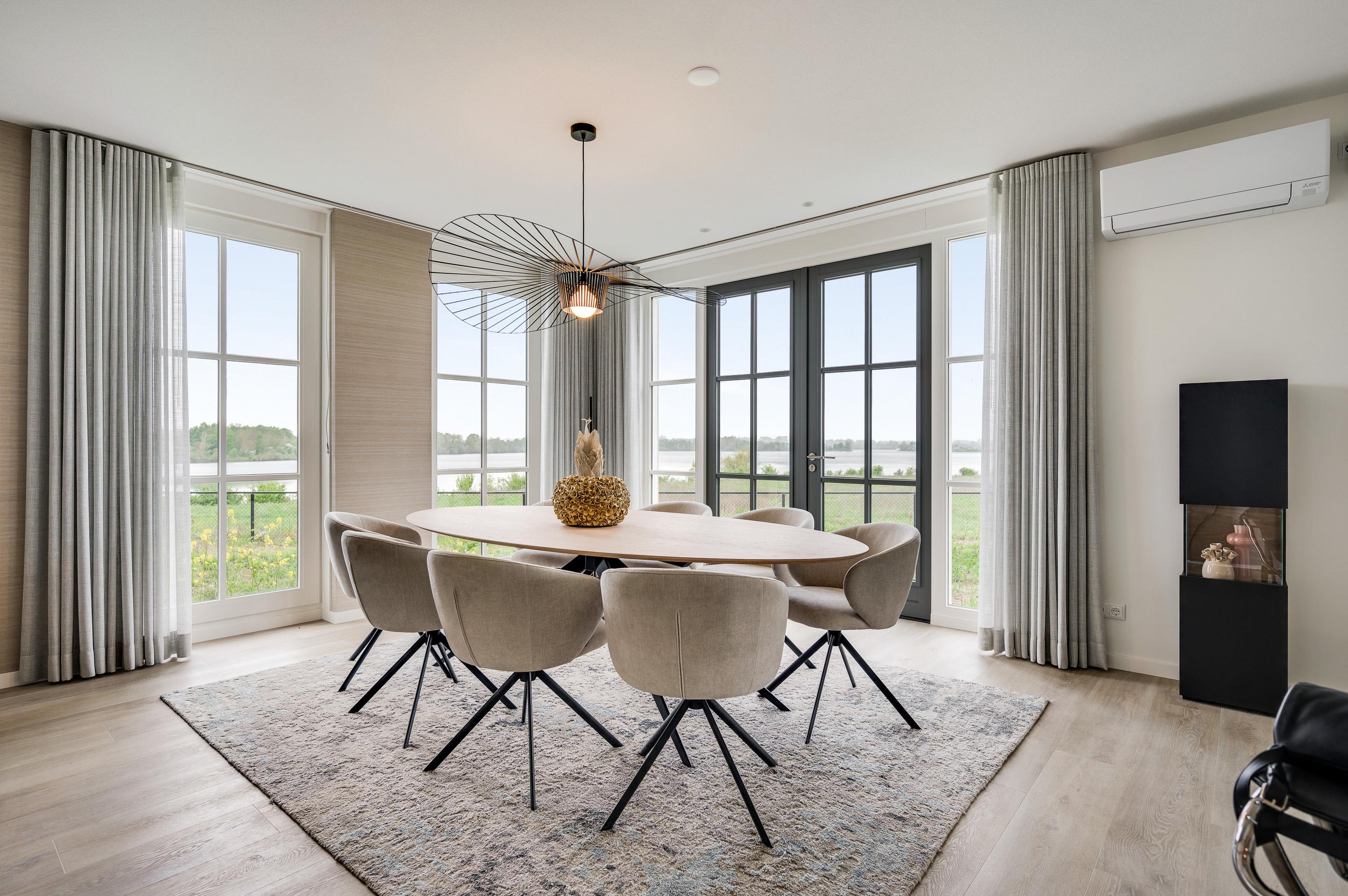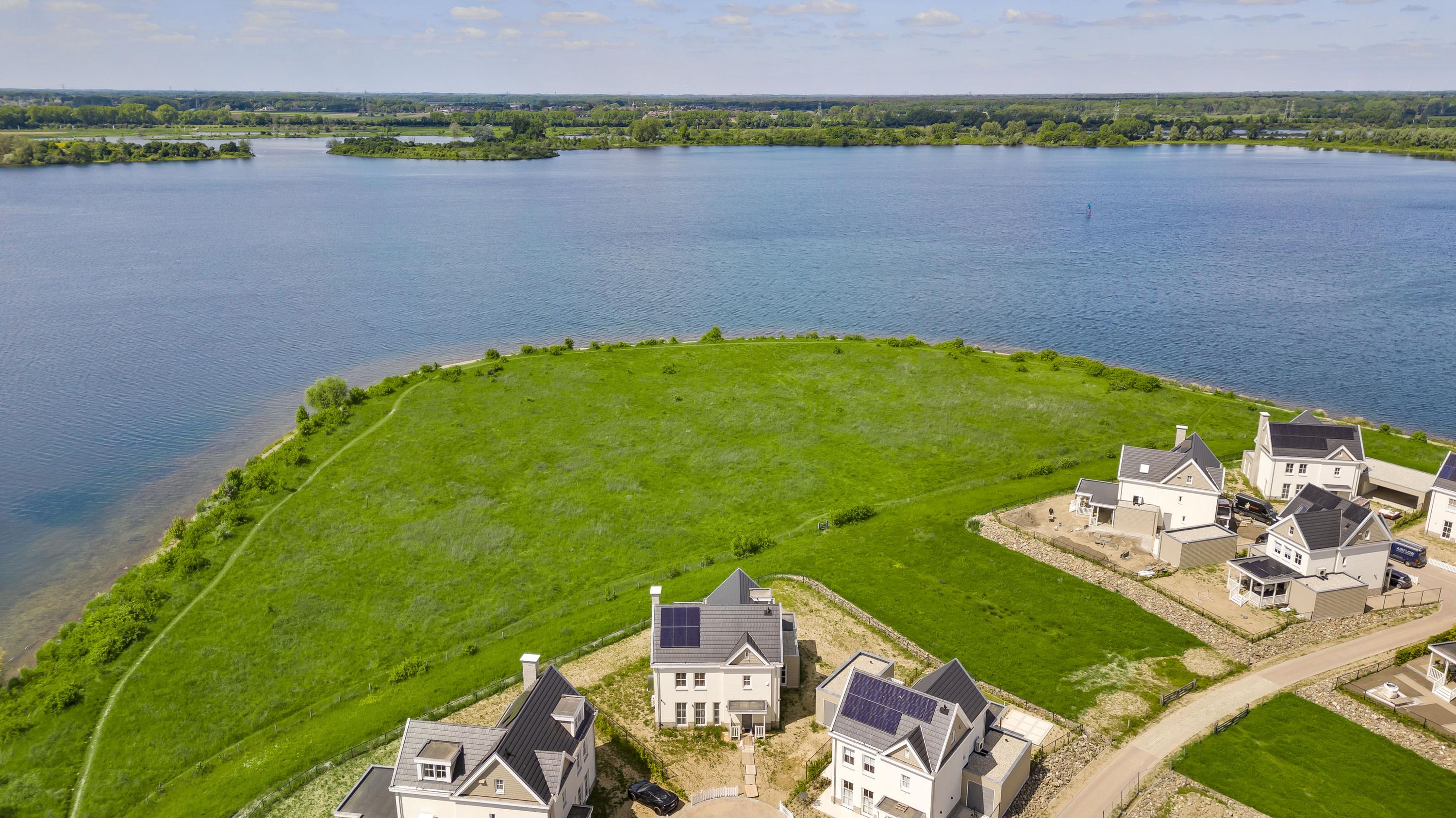Villa Herten vereint Wasser, Licht und moderne Architektur zu einer seltenen Symbiose. Diese Villa in Herten bietet 266 m² Wohnfläche und liegt einzigartig an der Spitze einer Halbinsel, umgeben von den stets wechselnden Impressionen des Oolderplas. Von der überdachten Veranda aus eröffnet sich tagtäglich ein Panorama, das besonders in den Abendstunden durch das sanfte Spiel von Wasser und Himmel geprägt wird.