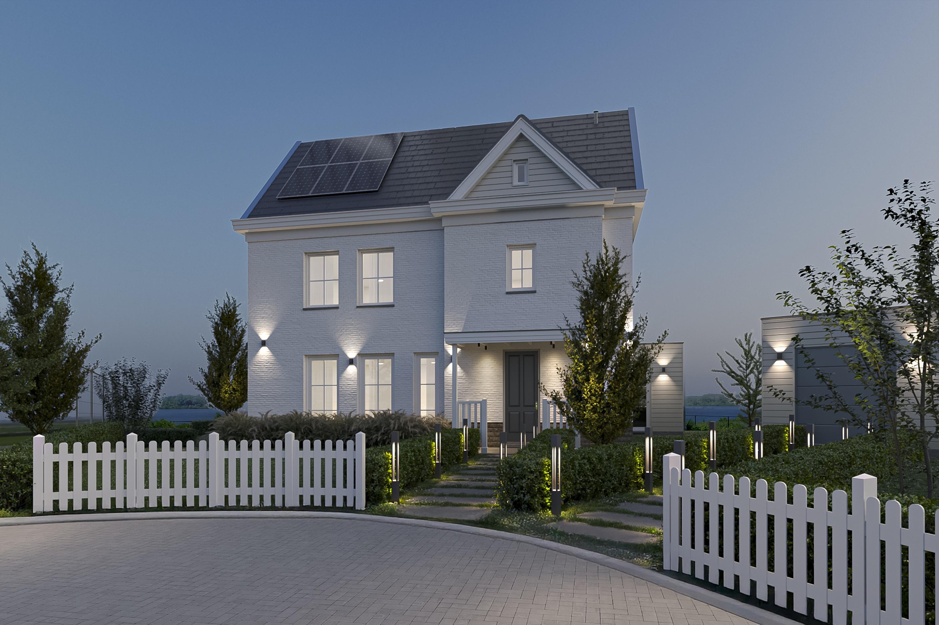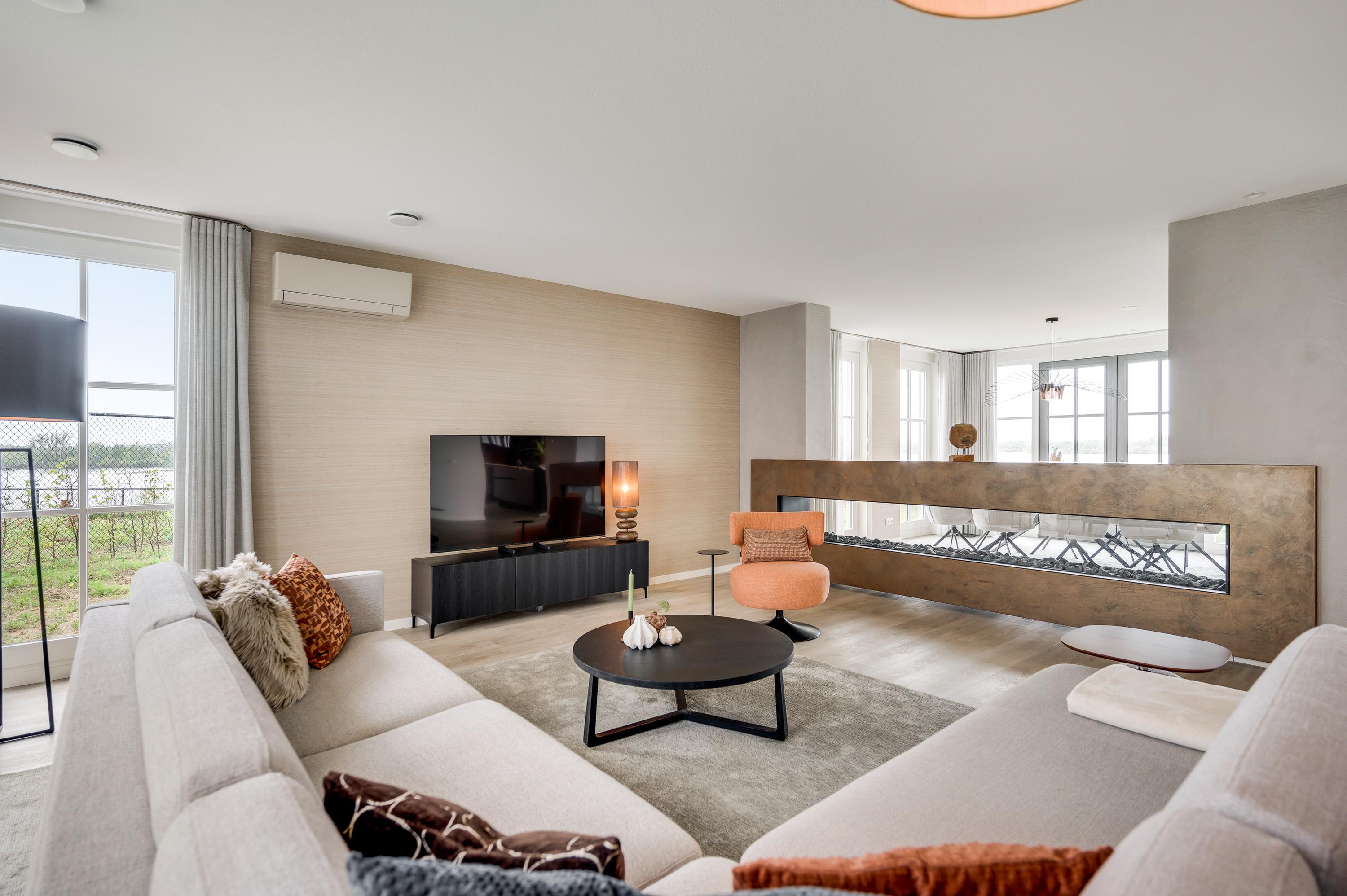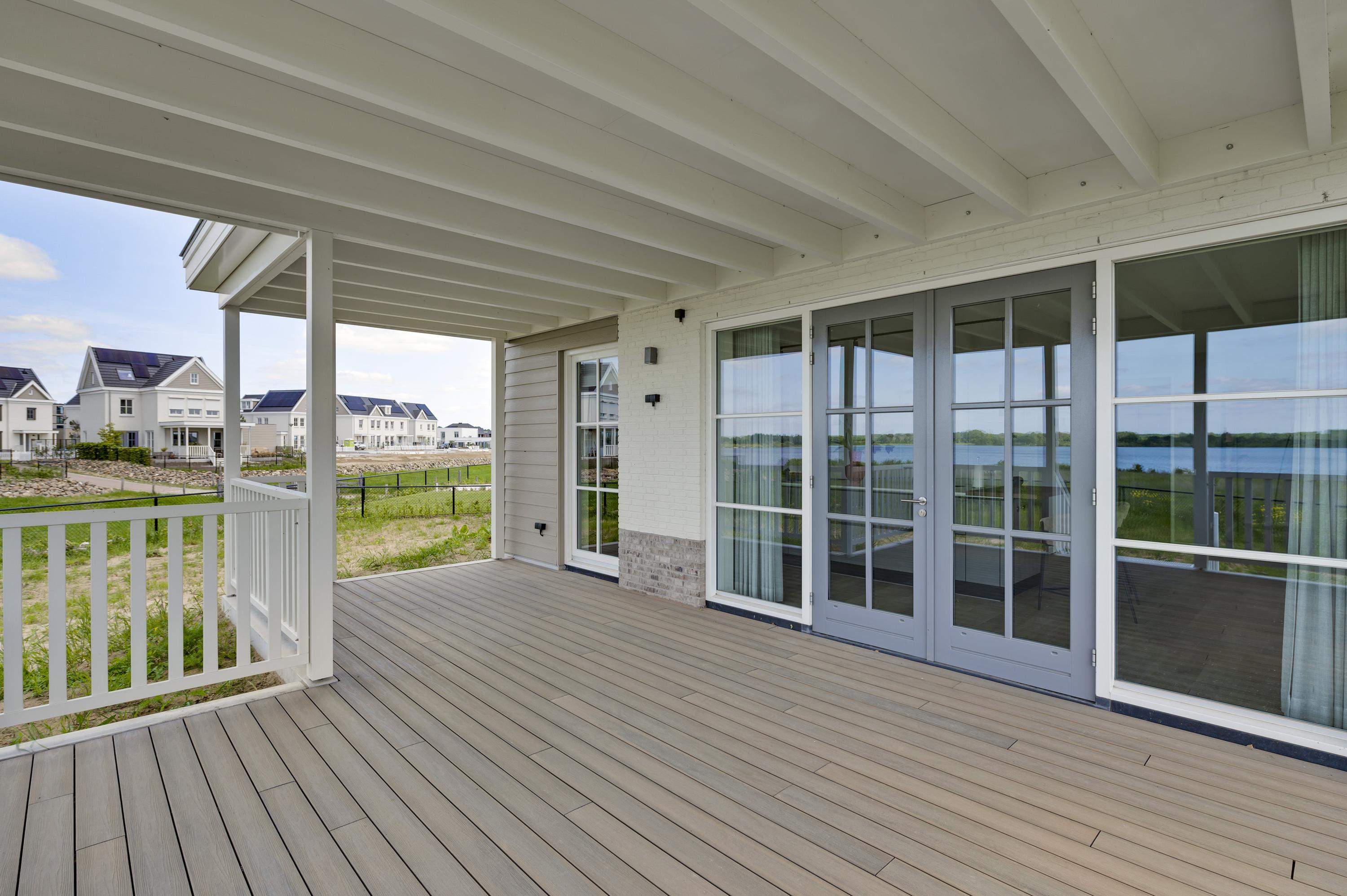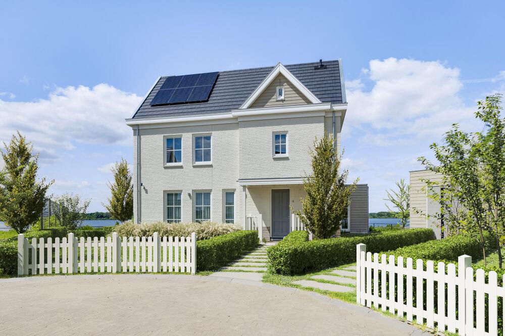 Villa Herten vereint Wasser, Licht und moderne Architektur zu einer seltenen Symbiose. Diese Villa in Herten bietet 266 m² Wohnfläche und liegt einzigartig an der Spitze einer Halbinsel, umgeben von den stets wechselnden Impressionen des Oolderplas. Von der überdachten Veranda aus eröffnet sich tagtäglich ein Panorama, das besonders in den Abendstunden durch das sanfte Spiel von Wasser und Himmel geprägt wird.