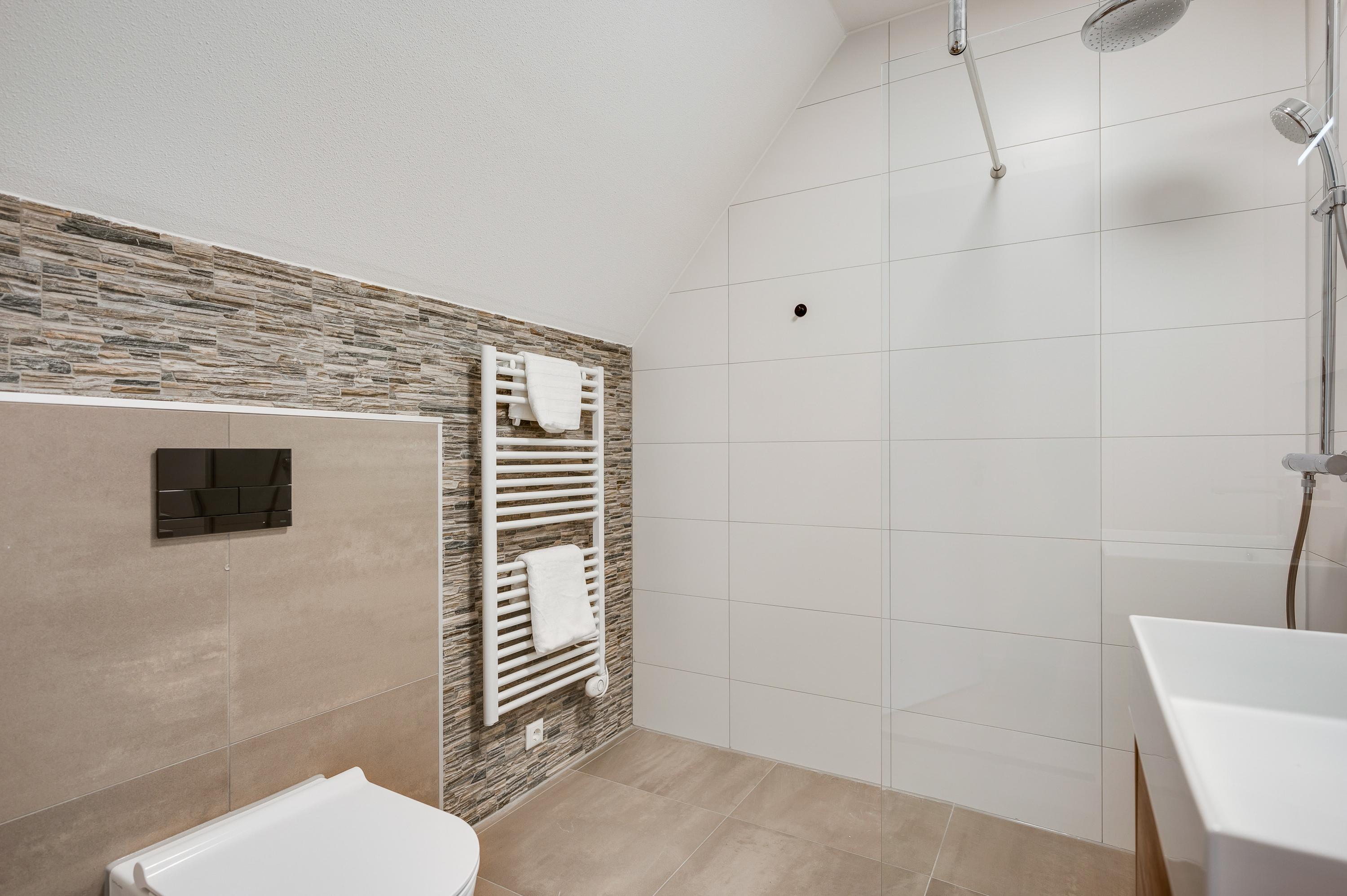 Das 1.051 m² große Grundstück verfügt über eine freistehende Garage und einen Außenabstellraum, was das Raumgefühl zusätzlich erweitert. Vollständig gedämmt und mit der Energieklasse A_PPP versehen, bietet diese luxuriöse Villa in Herten die Ruhe des Wohnens am Wasser, gepaart mit innovativer Technik und diskretem Stil.