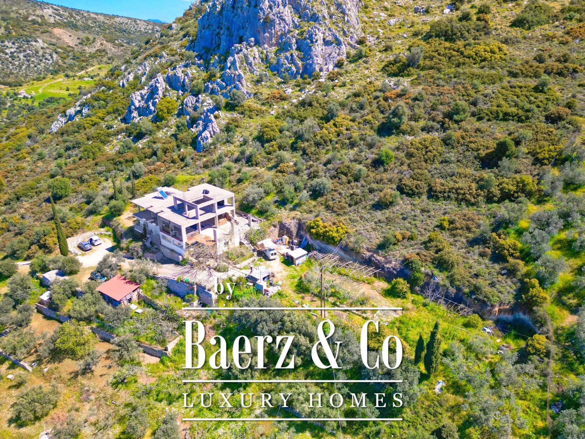 Das Anwesen profitiert von einer unverbaubaren, spektakulären Aussicht und das weitläufige Grundstück, das von jahrhundertealten Olivenhainen geprägt ist, bleibt unberührt und lädt zur individuellen Gestaltung oder zur Schaffung weiterer Annehmlichkeiten ein. Ob als exklusive Luxusvilla, mit bis zu sieben getrennten Apartments oder als kleine, hochwertige Unterkunft – die Form des Gebäudes steht für Exklusivität und Flexibilität. Die Unterstützung eines erfahrenen lokalen Ingenieurs sorgt für einen reibungslosen, sachkundigen Fertigstellungsprozess. Nur 3 km von sowohl dem nächsten Strand als auch dem historischen Zentrum von Nafplio entfernt, stellt diese Immobilie durch ihre Lage, Größe und außergewöhnlichen Ausblicke eine besondere Gelegenheit in Karathona dar.