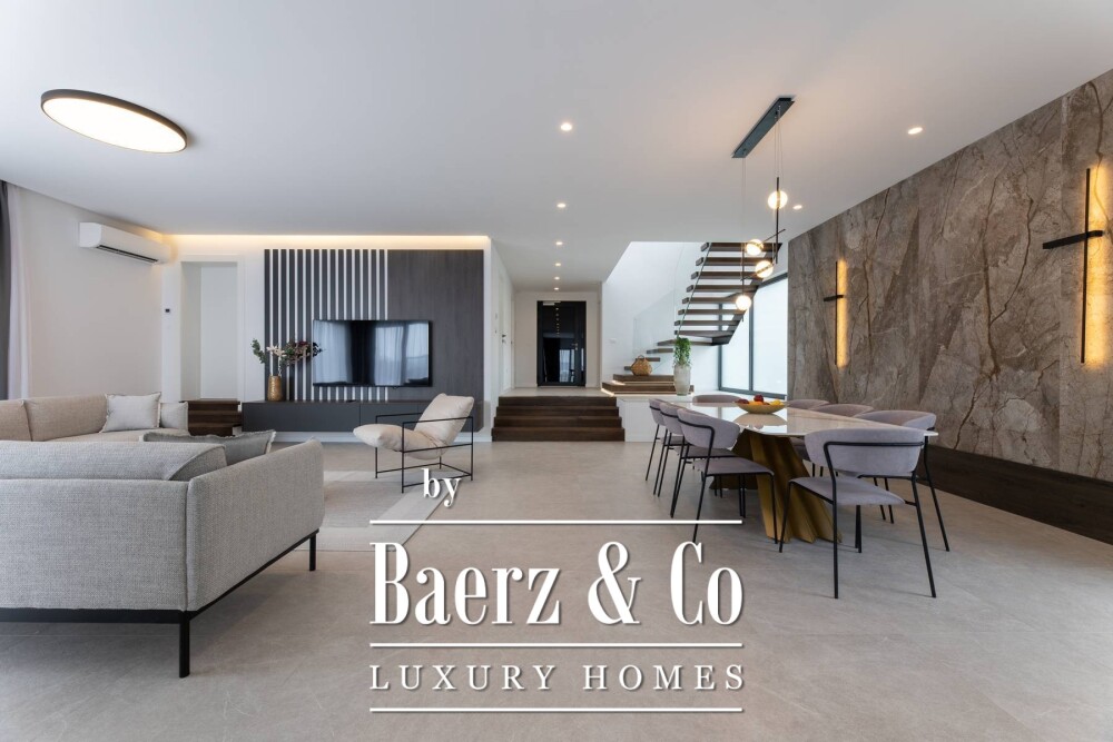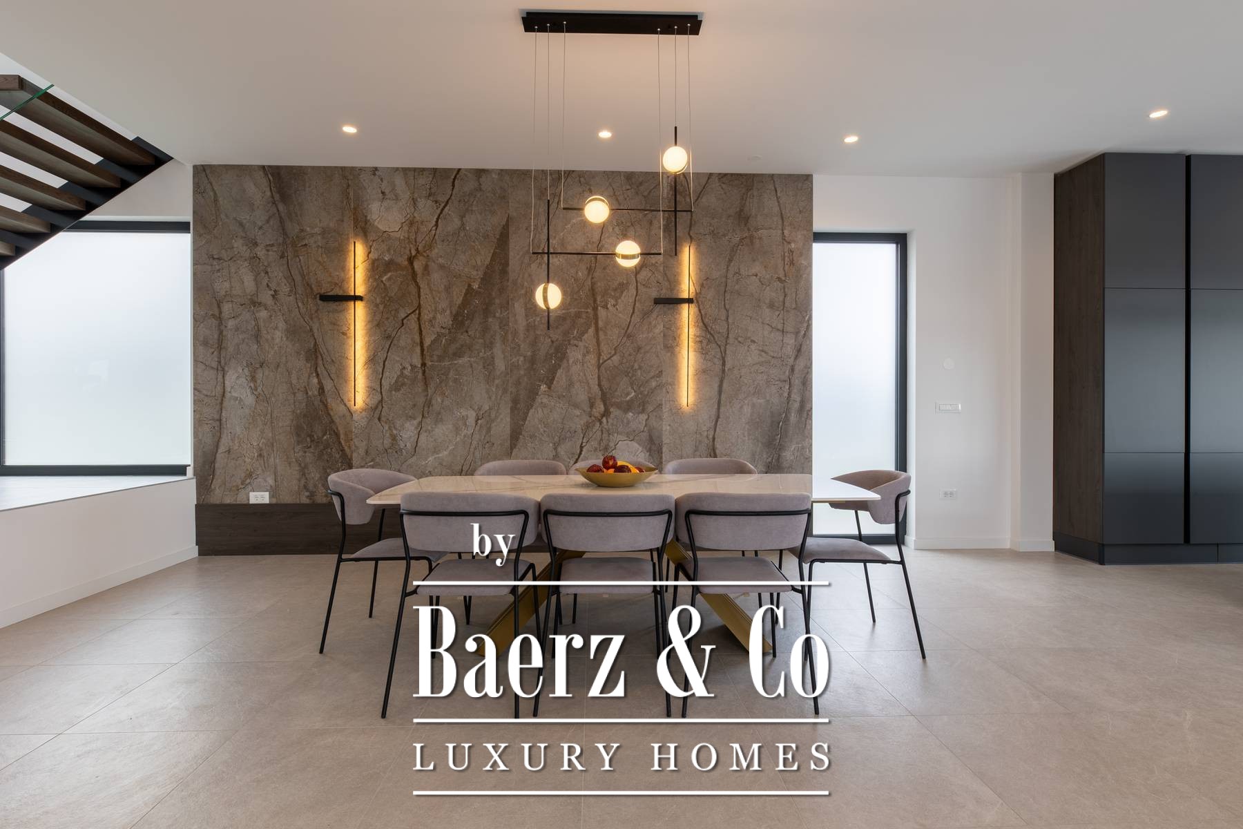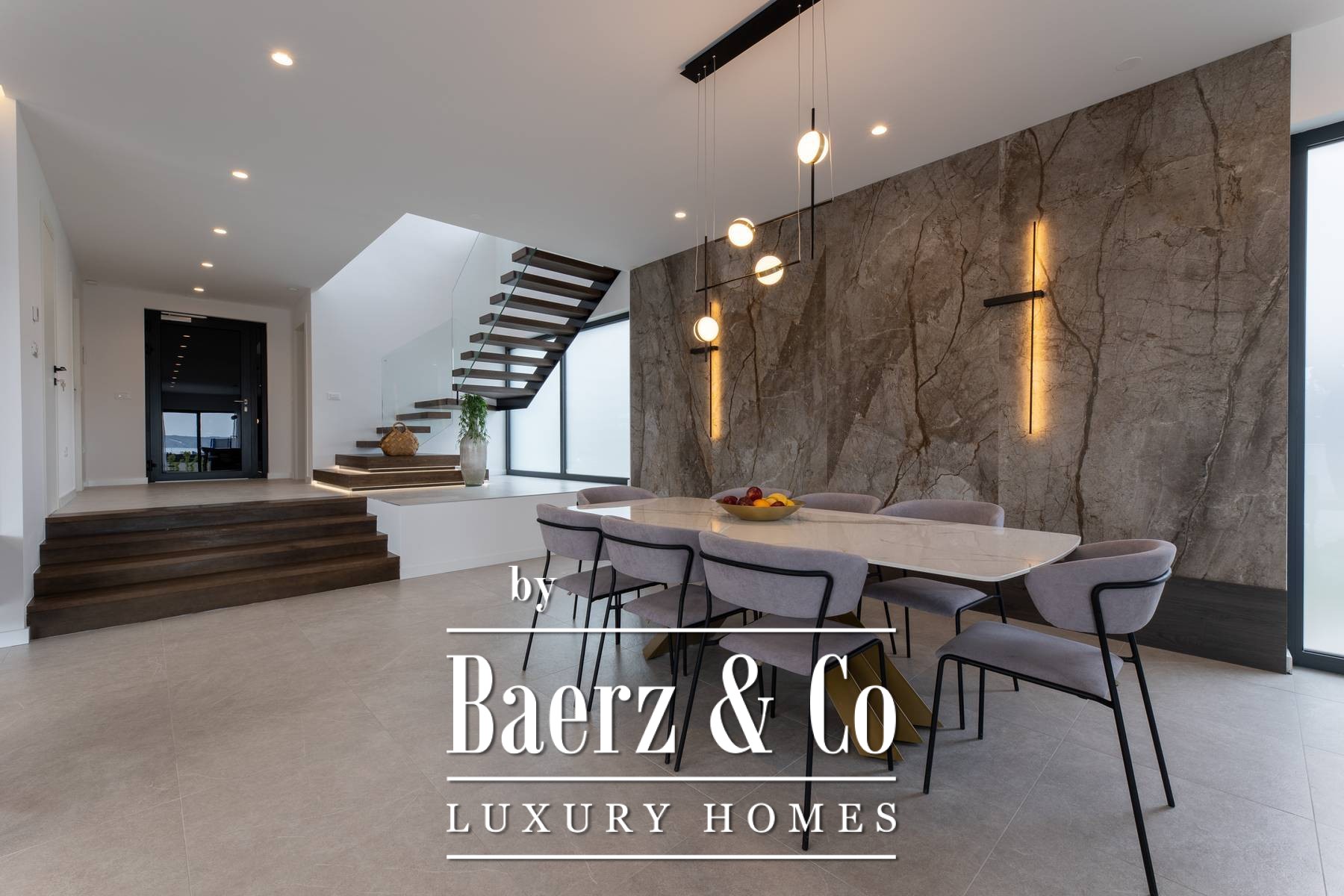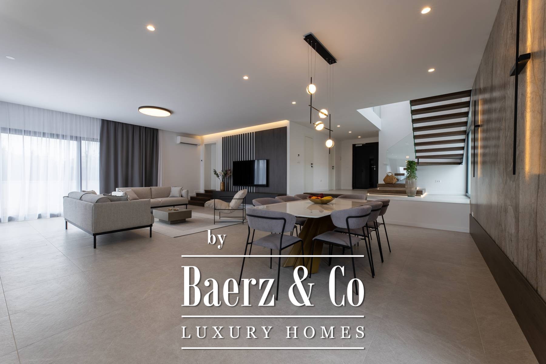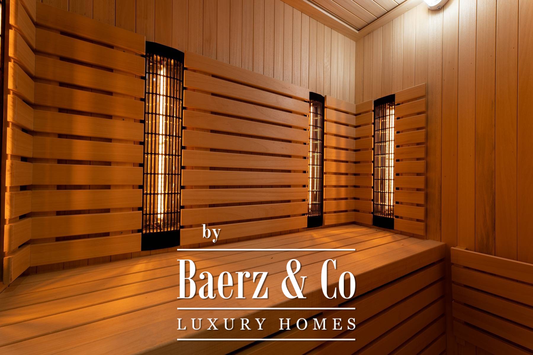 Die Innenausstattung unterstreicht den Anspruch auf Qualität und Langlebigkeit, von Designertüren und hochwertigen Aluminiumfenstern bis hin zu edler Keramik und ausgesuchtem Parkettboden. Jeder Bereich ist mit Liebe zum Detail gestaltet, um Entspannung oder einen aktiven Lebensstil zu ermöglichen; Ausstattungen wie Billardtisch, Fitnessraum, Sauna, Swimmingpool und Kinderspielplatz schaffen eine vielseitige Atmosphäre für große Familientreffen oder ruhigen Rückzug.