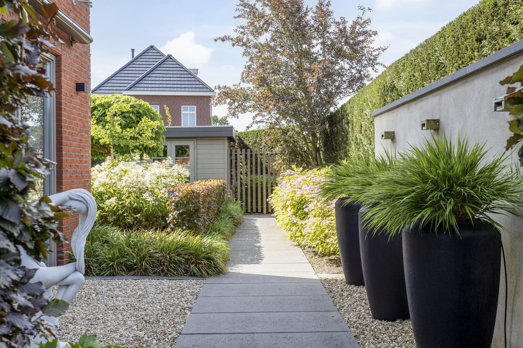 Das Außenleben spielt sich in einem liebevoll angelegten Garten ab, der mehrere Terrassen, gepflegte Hecken und eine Außendusche bietet. Der private Steg ermöglicht einen unkomplizierten Zugang zum Kanal und ist ideal für Bootsausflüge auf dem Oegstgeester Kanal und darüber hinaus. Garage, Carport und gesicherte Parkmöglichkeiten sorgen für Komfort und Sicherheit. Täglicher Bedarf und der lebendige Strand von Katwijk bleiben in unmittelbarer Nähe und unterstreichen den außergewöhnlichen Lebensstil, den diese Luxusvilla in Katwijk zum Verkauf bietet.