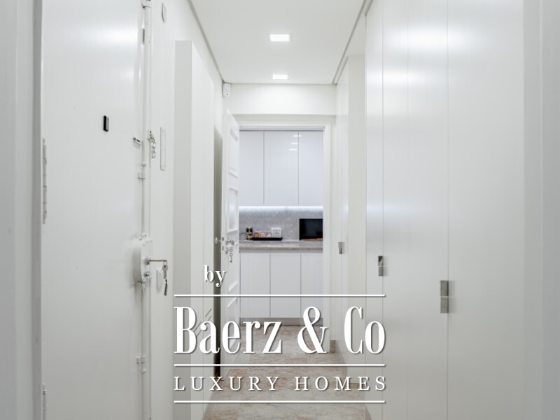 Die voll ausgestattete Küche überzeugt mit Naturstein-Arbeitsplatten und einer funktionalen Kochinsel, die zum kulinarischen und familiären Mittelpunkt wird. Eine großzügige Diele vermittelt einen feinen Empfang und verbindet Esszimmer, Hauswirtschaftsbereich und weitere Balkone, die das Licht der Stadt hereinlassen. Zur Ausstattung gehören ein Aufzug, Klimaanlage in allen Räumen, Zentralheizung, zwei Parkplätze, ein Abstellraum und ein Concierge-Service vor Ort.