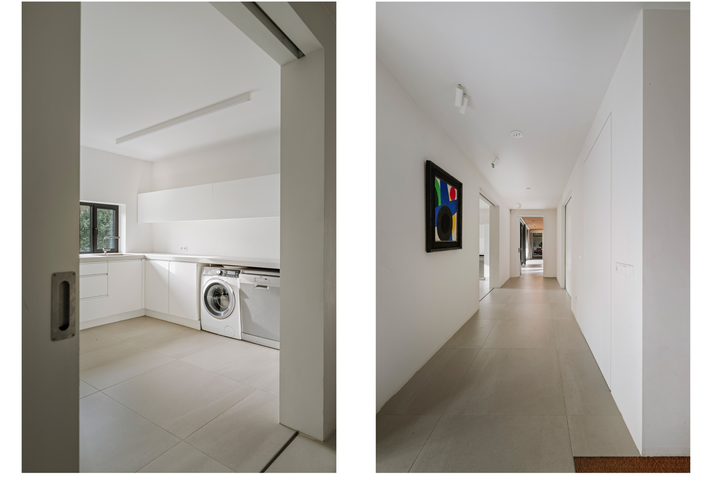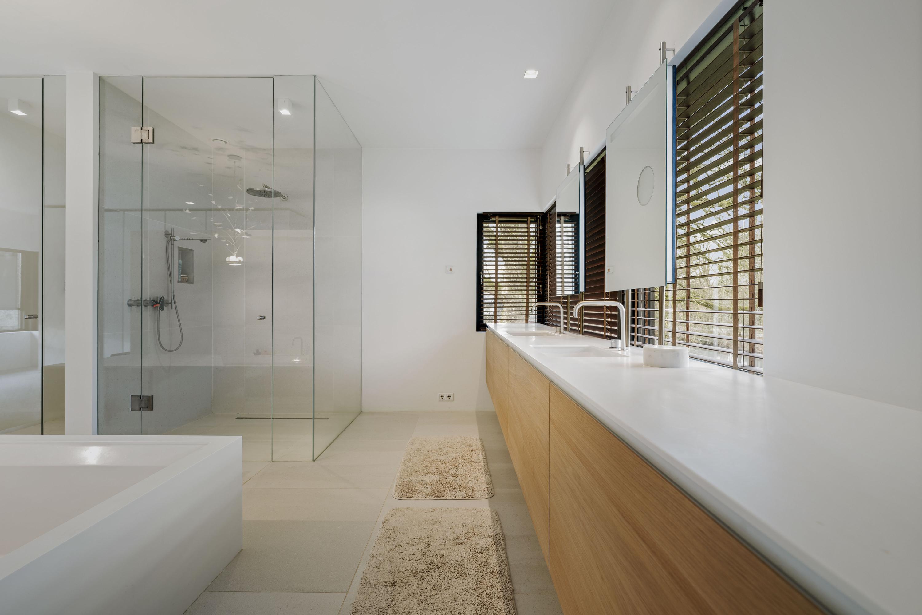 Das Hauptwohnzimmer mit 74 m² verfügt über zwei separat gestaltete Sitzbereiche, maßgefertigte Einbauten und großzügige Ausblicke. Im Obergeschoss befinden sich vier geräumige Schlafzimmer und zwei Bäder sowie eine exklusive Master Suite mit Fenstern zu zwei Himmelsrichtungen und elegantem Bad en suite. Das Untergeschoss erweitert den Wohnraum mit einem Studio oder Fitnessraum, einem Gästeschlafzimmer mit eigenem Bad sowie robusten Betonoberflächen und Tageslichteinfall. Für höchsten Komfort sorgen Fußbodenheizung, eine geothermische Wärmepumpe und 30 Solarpaneele, was diese Villa in die Energieklasse A++ hebt.