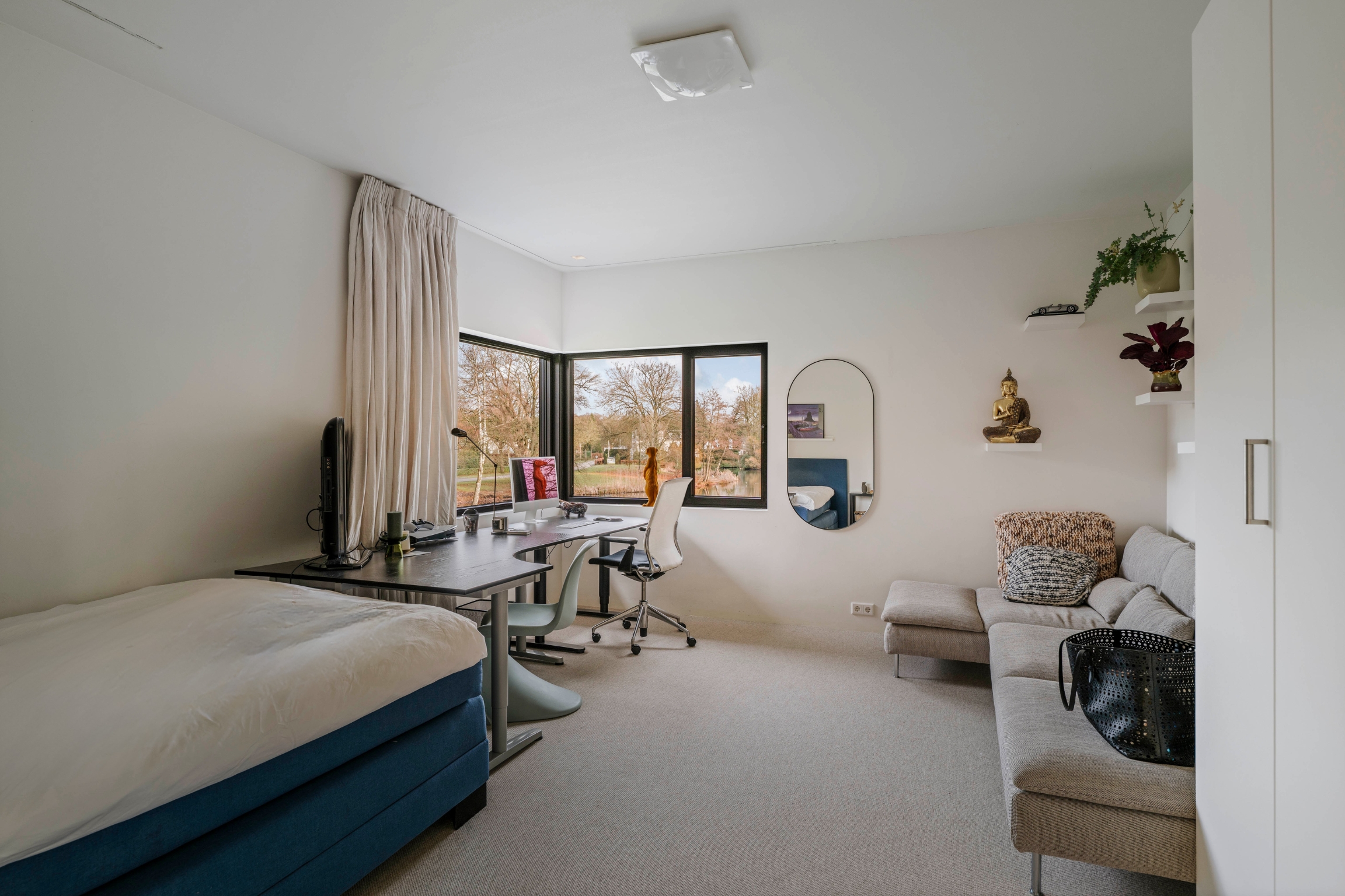 Im Außenbereich bieten ein 10 mal 5 Meter großer Schwimmteich, gepflegte Rasenflächen und gestaltete Pflanzungen ganzjährig Grün und Privatsphäre. Die Doppelgarage mit 70 m² komplettiert die Infrastruktur für Elektrofahrzeuge. Lochems Annehmlichkeiten, Schulen, Theater, Golfplatz und Naturschutzgebiete sind schnell erreichbar, während das Quartier Berkeloord seinen charakteristischen Charme bewahrt.