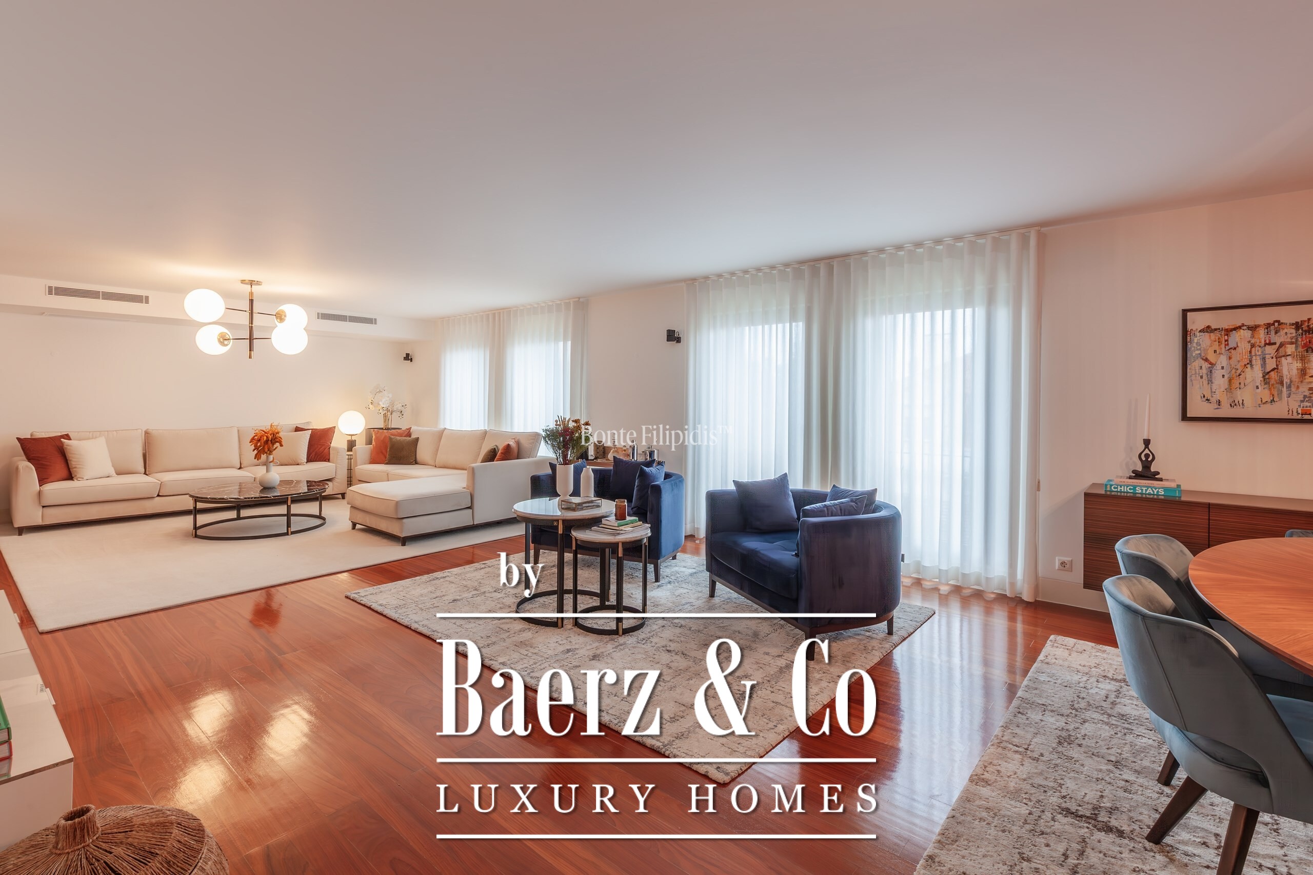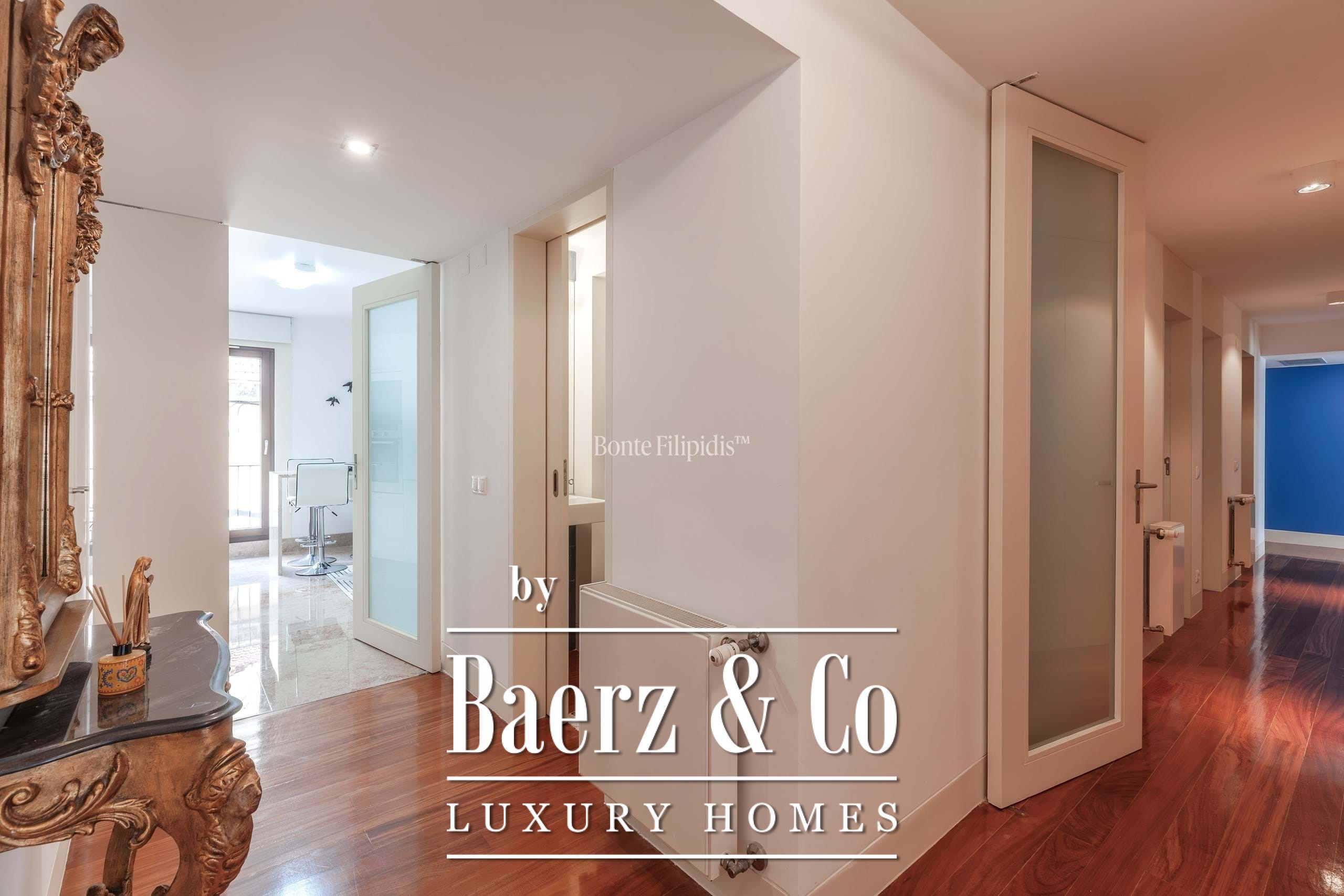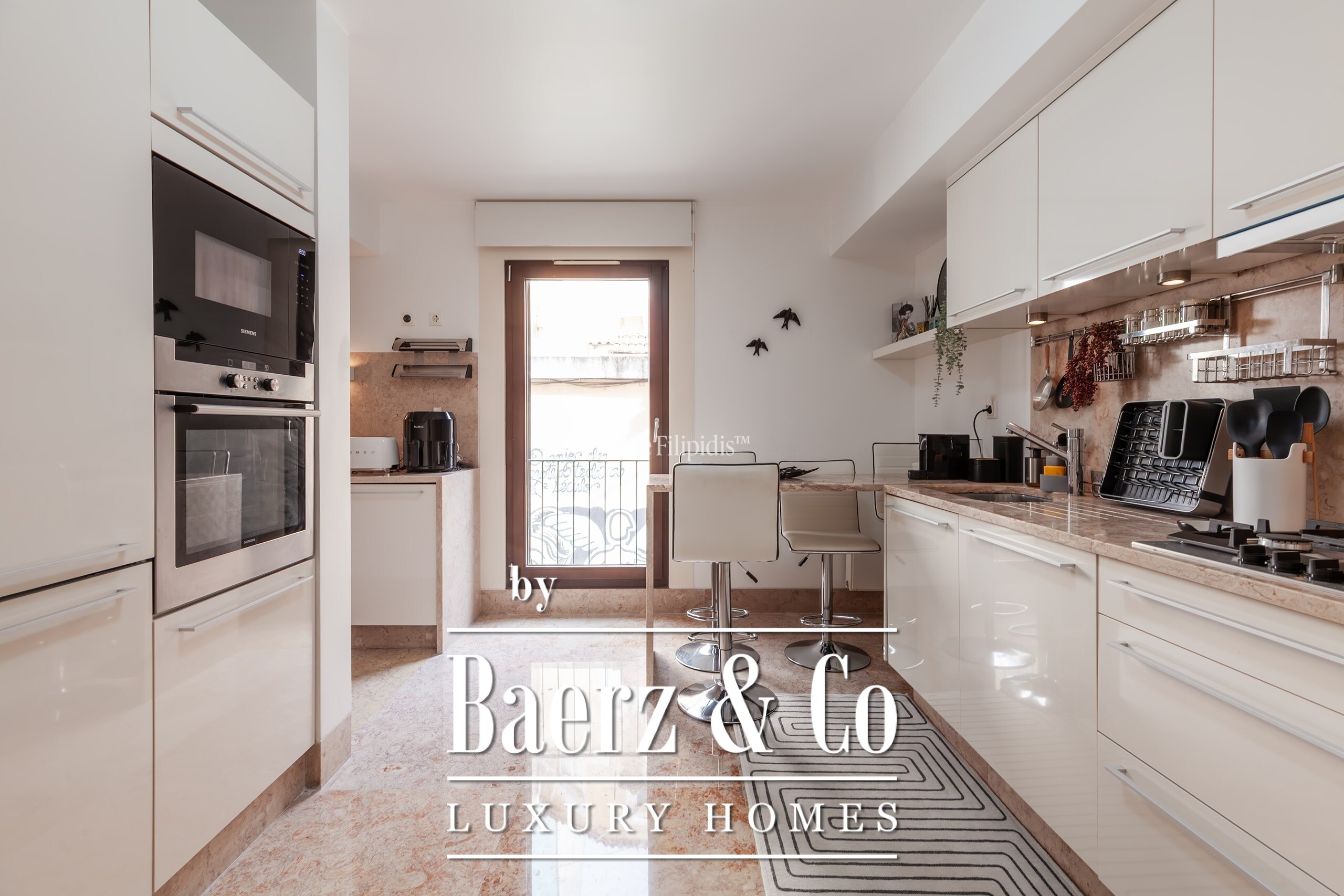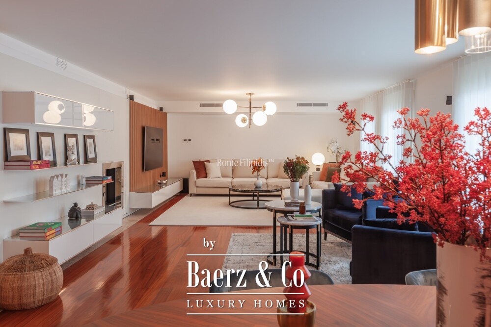 Die Küche, lichtdurchflutet nach Südwesten, ist mit SMEG- und Siemens-Geräten, Lioz-Kalkstein und großzügigem Stauraum ausgestattet und erfüllt mühelos sowohl die täglichen Bedürfnisse als auch Gastfreundschaft auf hohem Niveau. Afzelia-Hartholzböden, zeitgemäße Bäder und eine Zentralheizung unterstreichen den diskreten Anspruch dieses Zuhauses. Das Apartment wird überwiegend möbliert angeboten und unterstützt so einen reibungslosen Einzug.