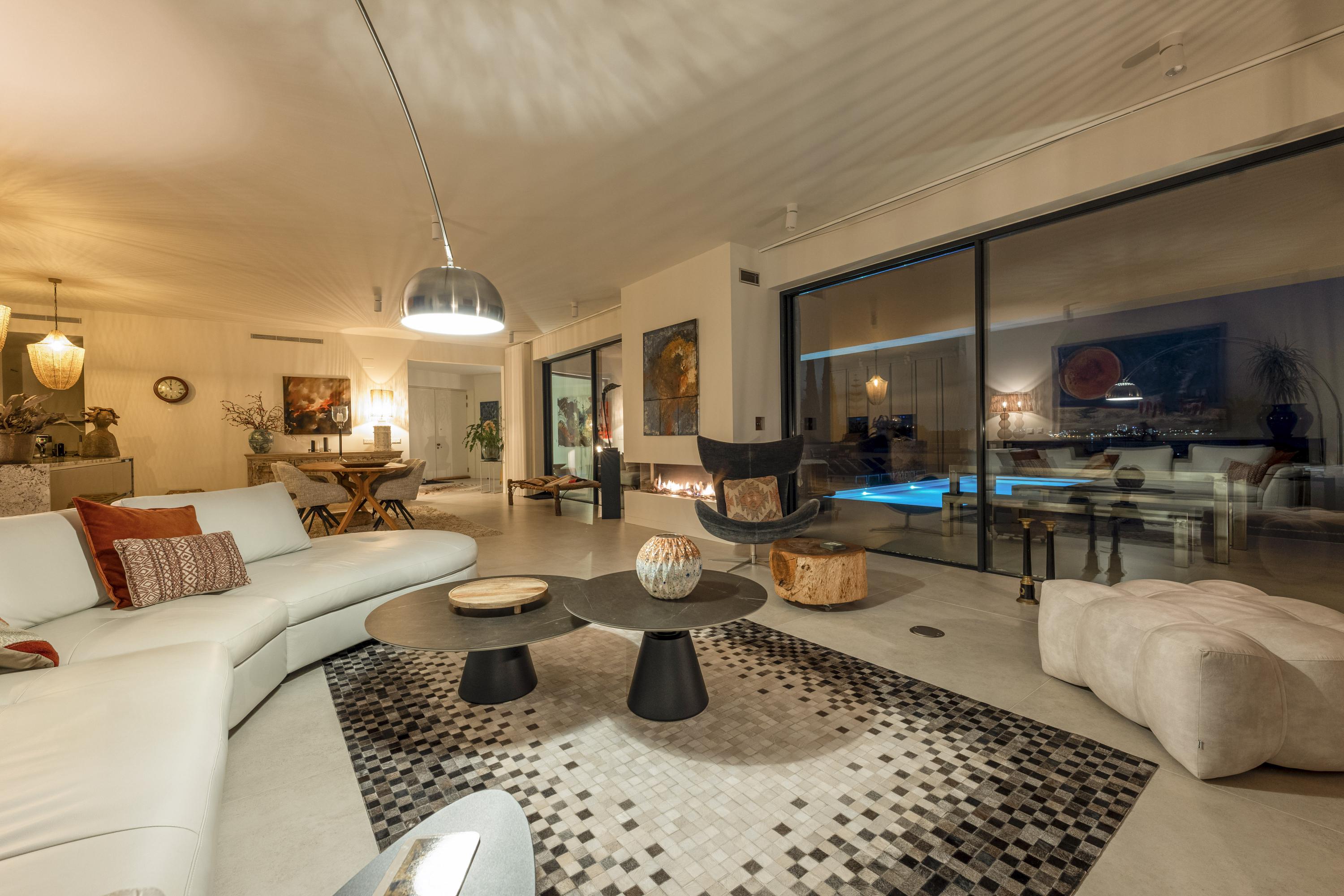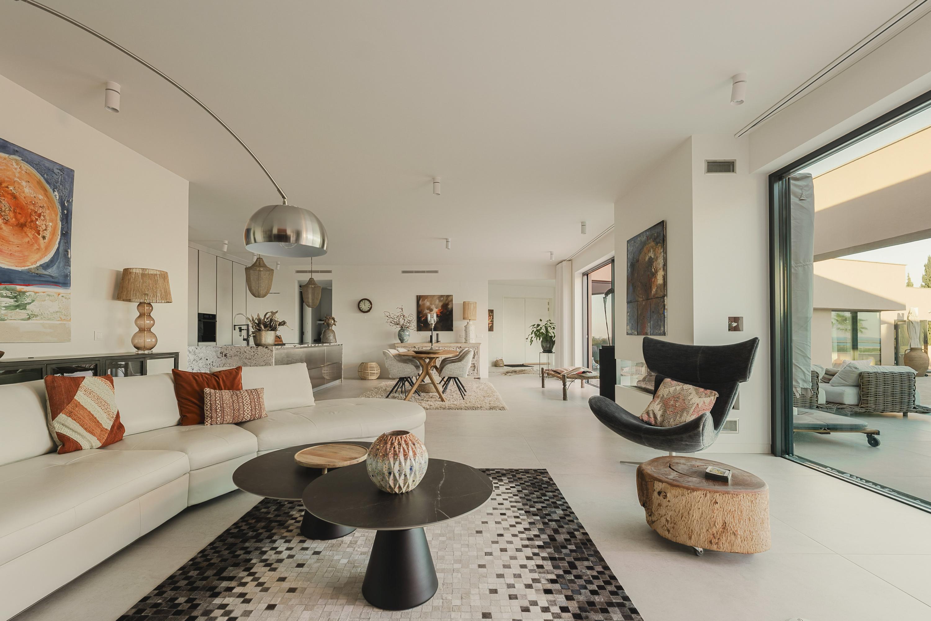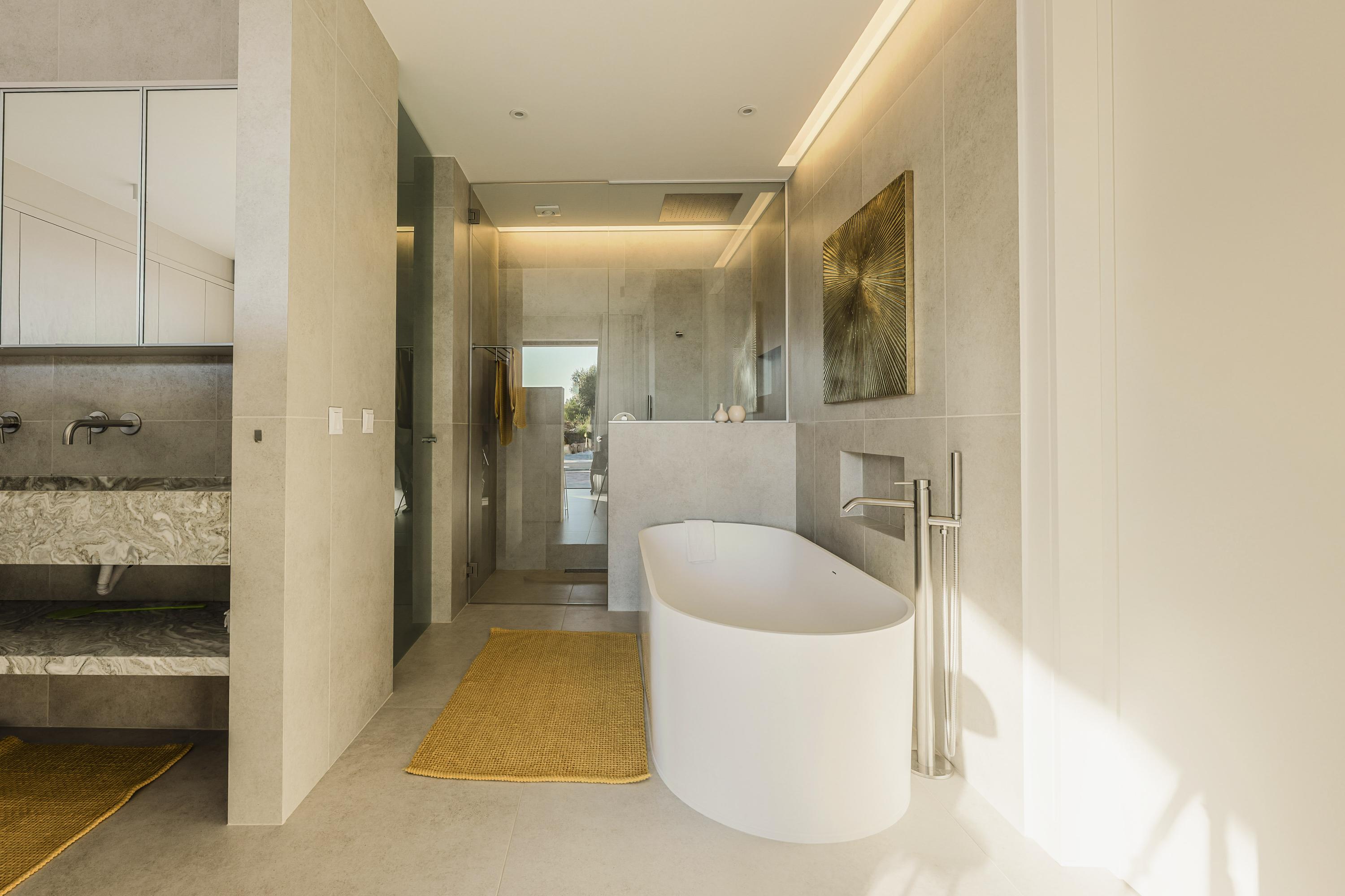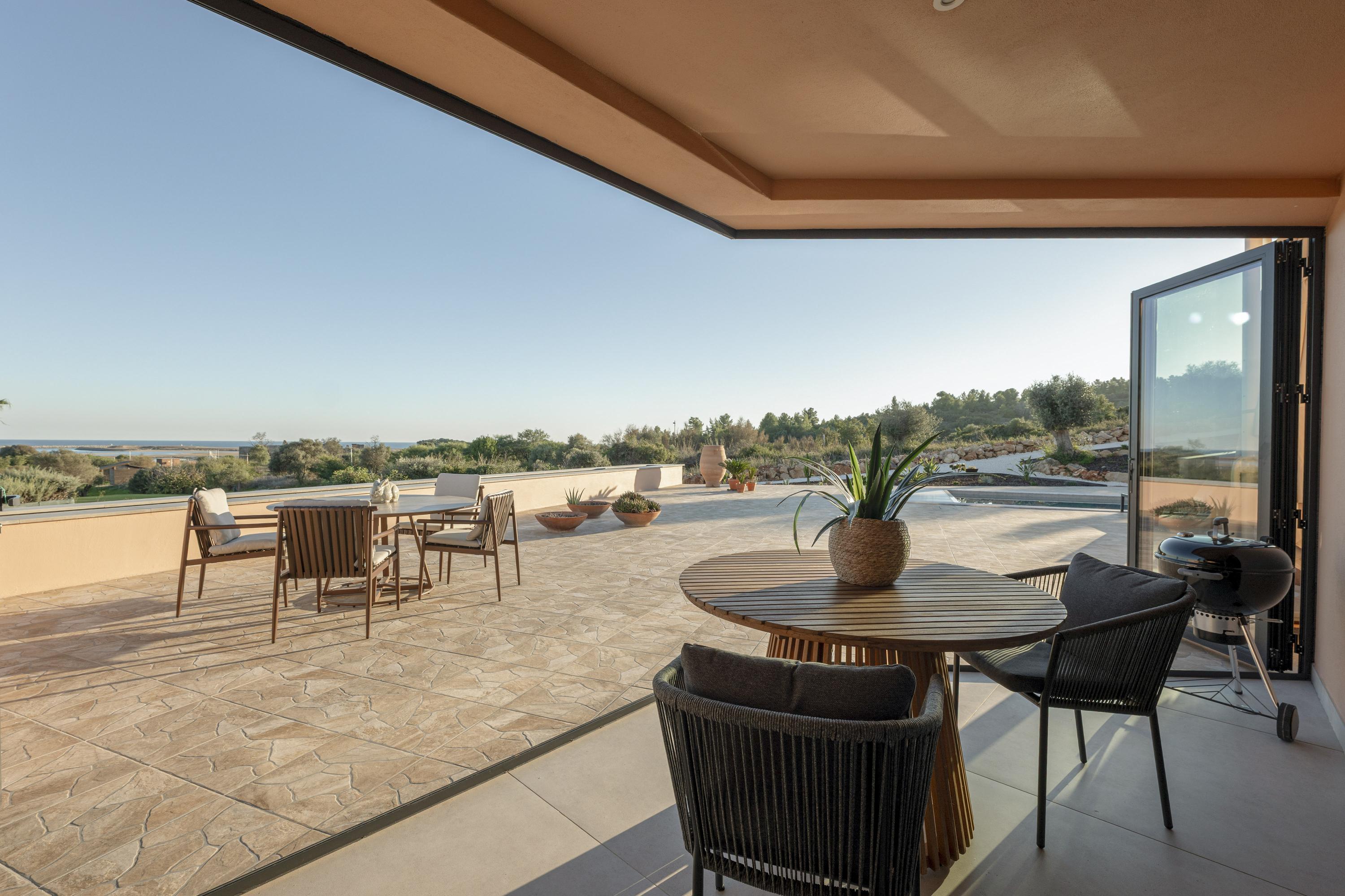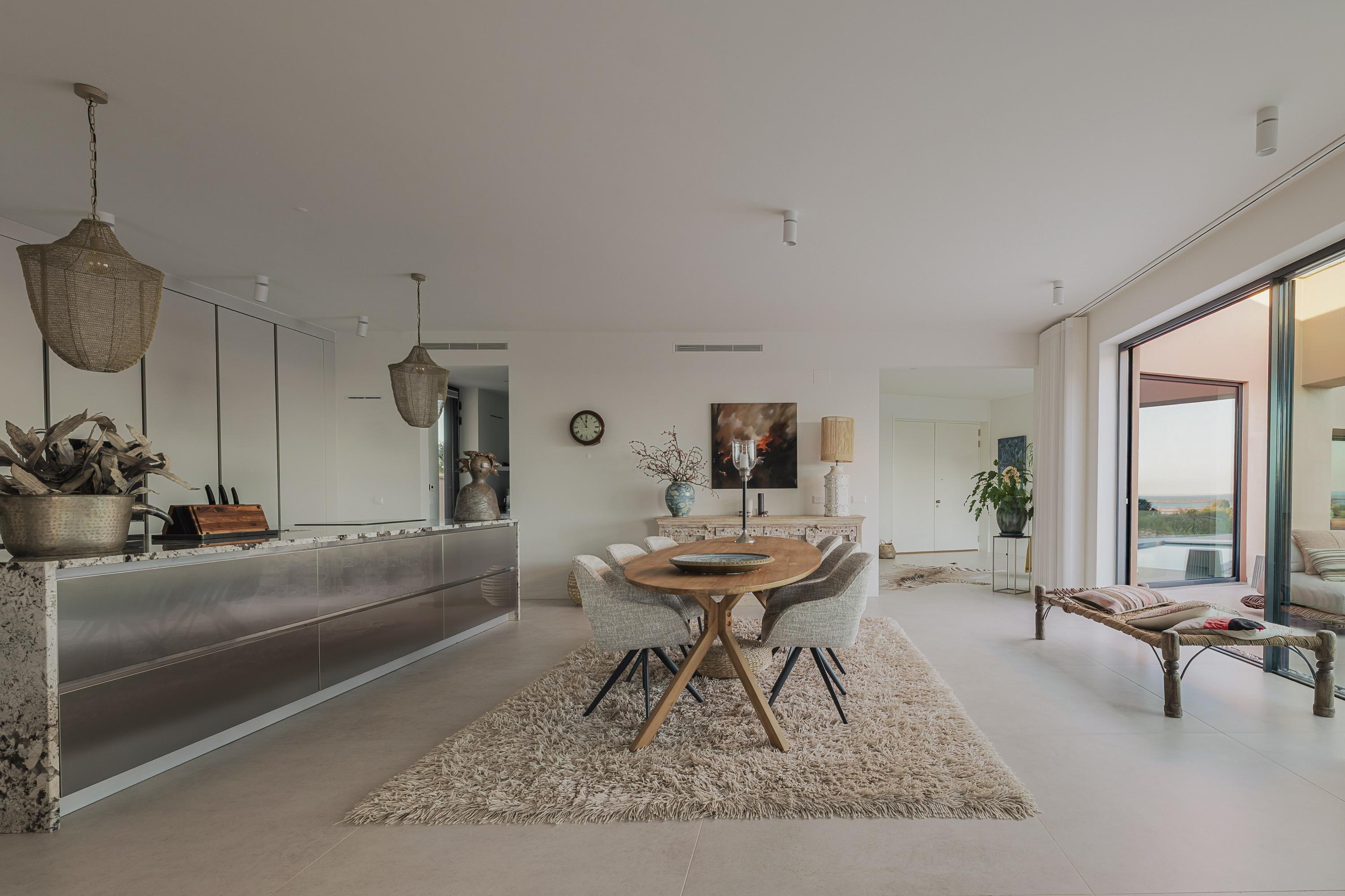 Vier sorgfältig gestaltete Suiten, jede mit eigenem Bad, bieten Komfort auf Boutique-Niveau. Zwei der Suiten eignen sich hervorragend als unabhängige Gästeresidenz und werden von vier italienisch designten Küchen unterstützt. Großzügige Terrassen, mediterrane Gärten und eine erhöhte Dachterrasse von 170 m² fangen die Dynamik des umliegenden Golfplatzes und das wechselnde Licht des Meeres ein. Ein beheizter 14-Meter-Salzwasserpool bildet das Herzstück des Außenbereichs, ergänzt durch stilvoll platzierte Jee-O Außenduschen und eine exklusive Gartengestaltung.