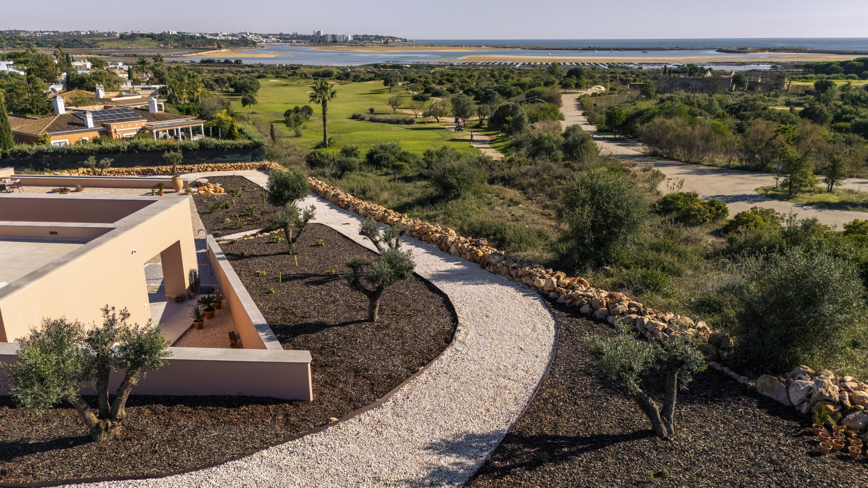 Die moderne Villa Odiaxere Lagos definiert das Küstenleben direkt am Palmares Golfplatz neu, wo anspruchsvolle Architektur auf natürliche Schönheit und atemberaubende Atlantikausblicke trifft. Dieses neu fertiggestellte Anwesen erstreckt sich direkt am Rand des 27-Loch Palmares Golfplatzes über ein großzügiges, 3.000 m² großes, landschaftlich gestaltetes Grundstück, das Privatsphäre mit nahtloser Verbindung zur hügeligen Umgebung bietet. Die architektonische Klarheit der Villa—384 m² auf der Hauptetage, ergänzt durch ein vielseitiges Untergeschoss mit 120 m²—schafft einen Raum voller Licht, Ruhe und Weite.