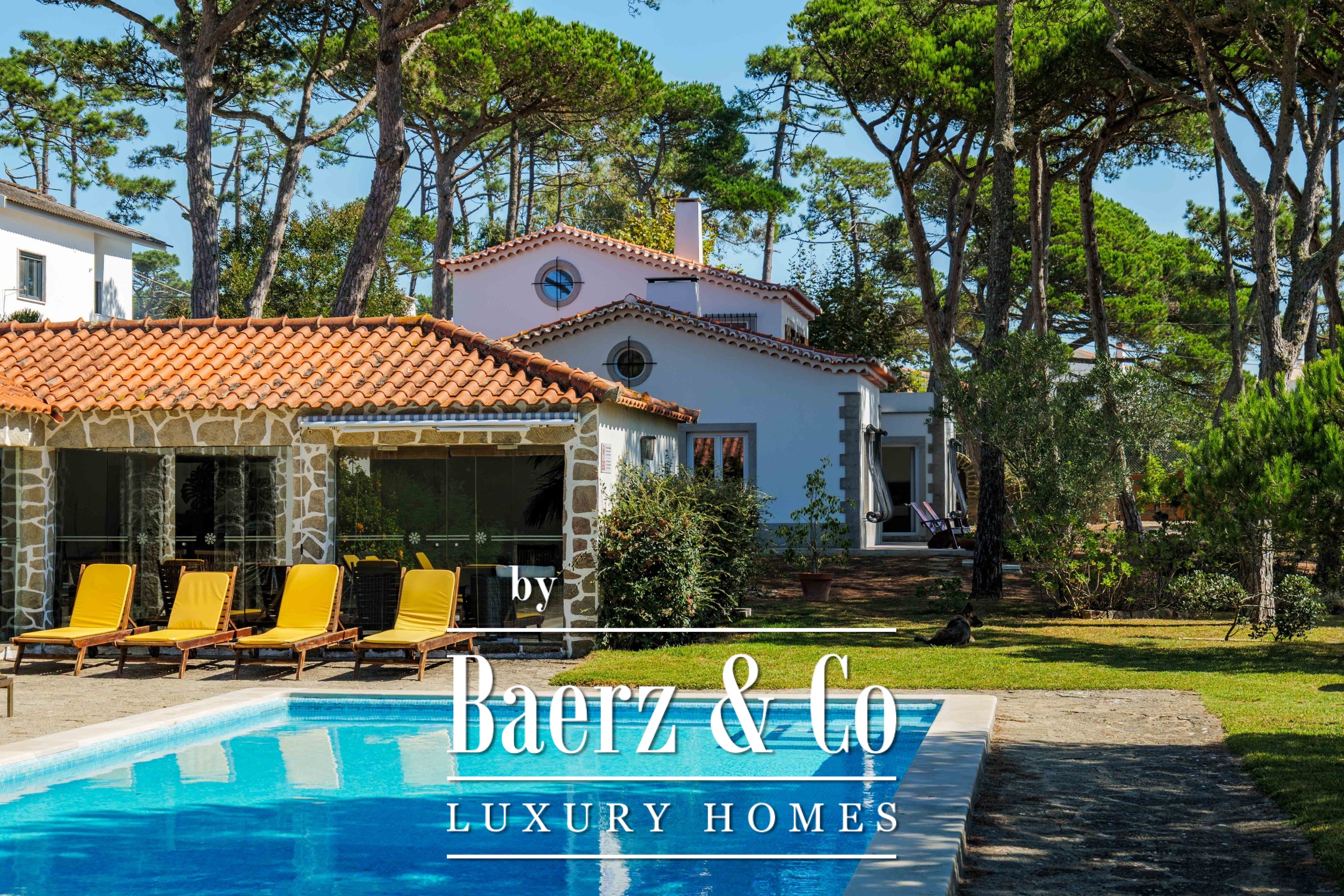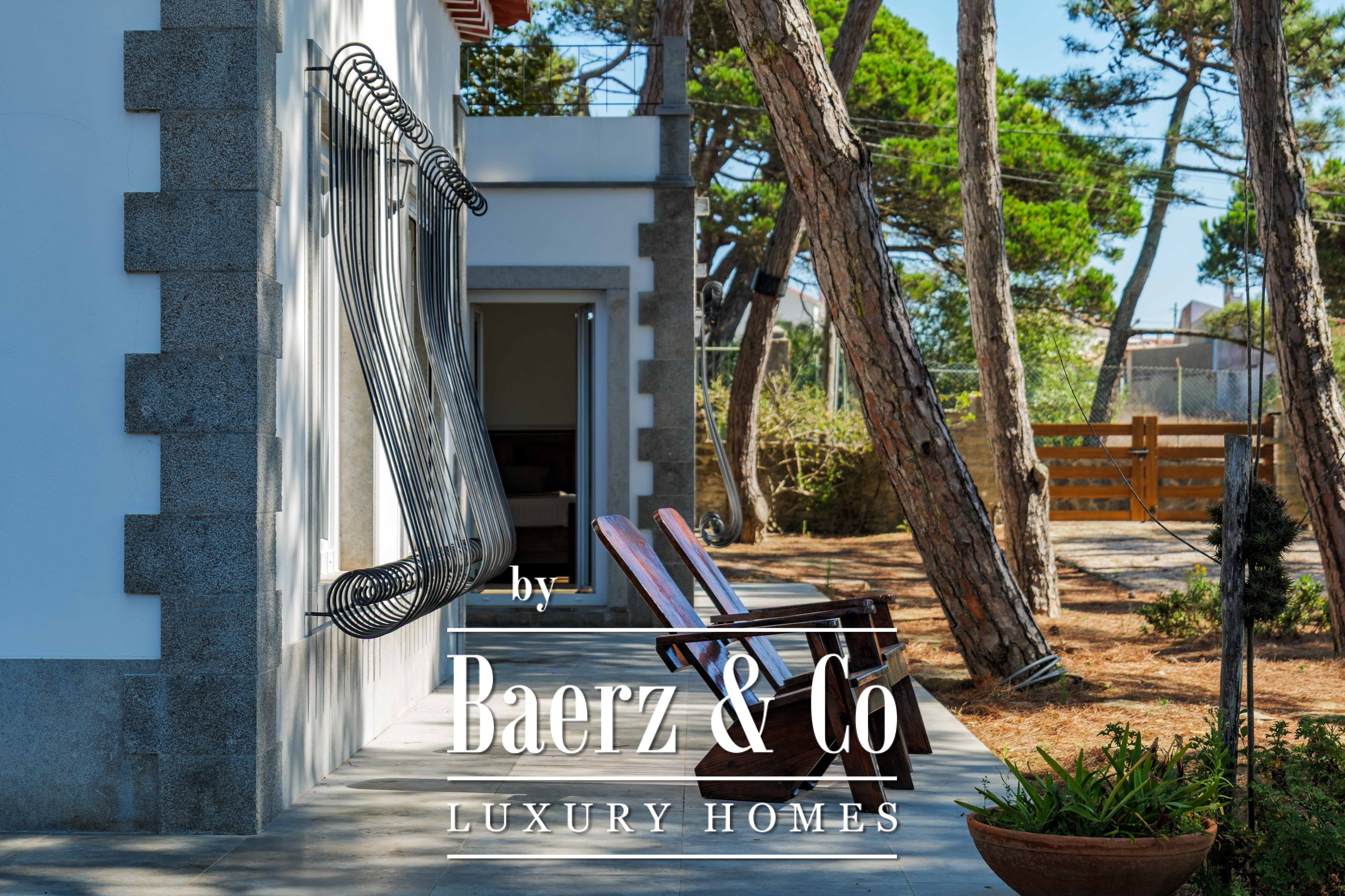 Die Villa Sintra mit Garten und Meerblick vereint portugiesische Architektur des 20. Jahrhunderts mit zeitgenössischer Raffinesse. Auf einem 2.341 m² großen, landschaftlich gestalteten Grundstück gelegen, nur fünf Minuten vom Praia do Magoito entfernt, sind das Haupthaus und das Gästehaus von alten Pinien umgeben, über denen sich ein weiter Himmel wölbt.