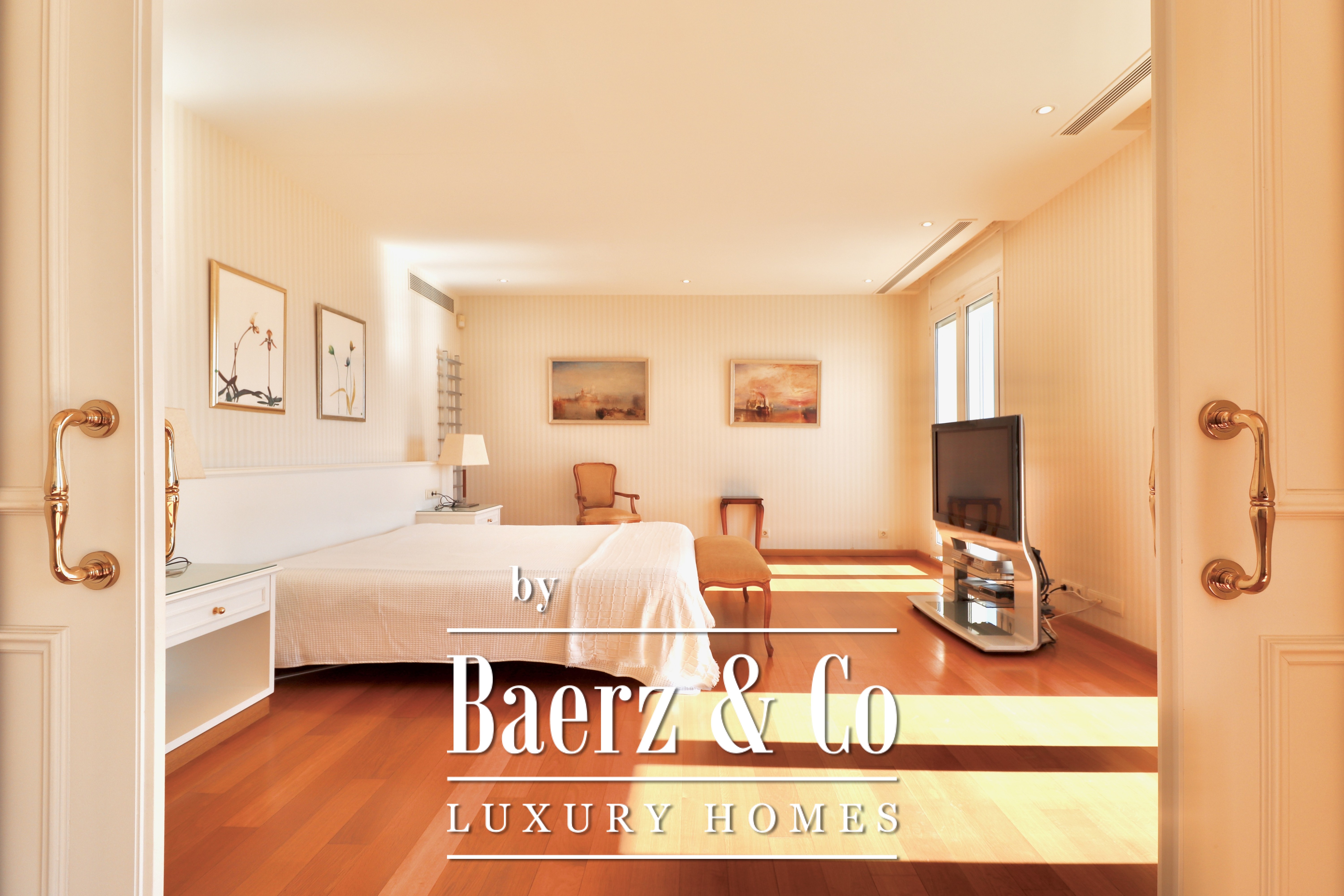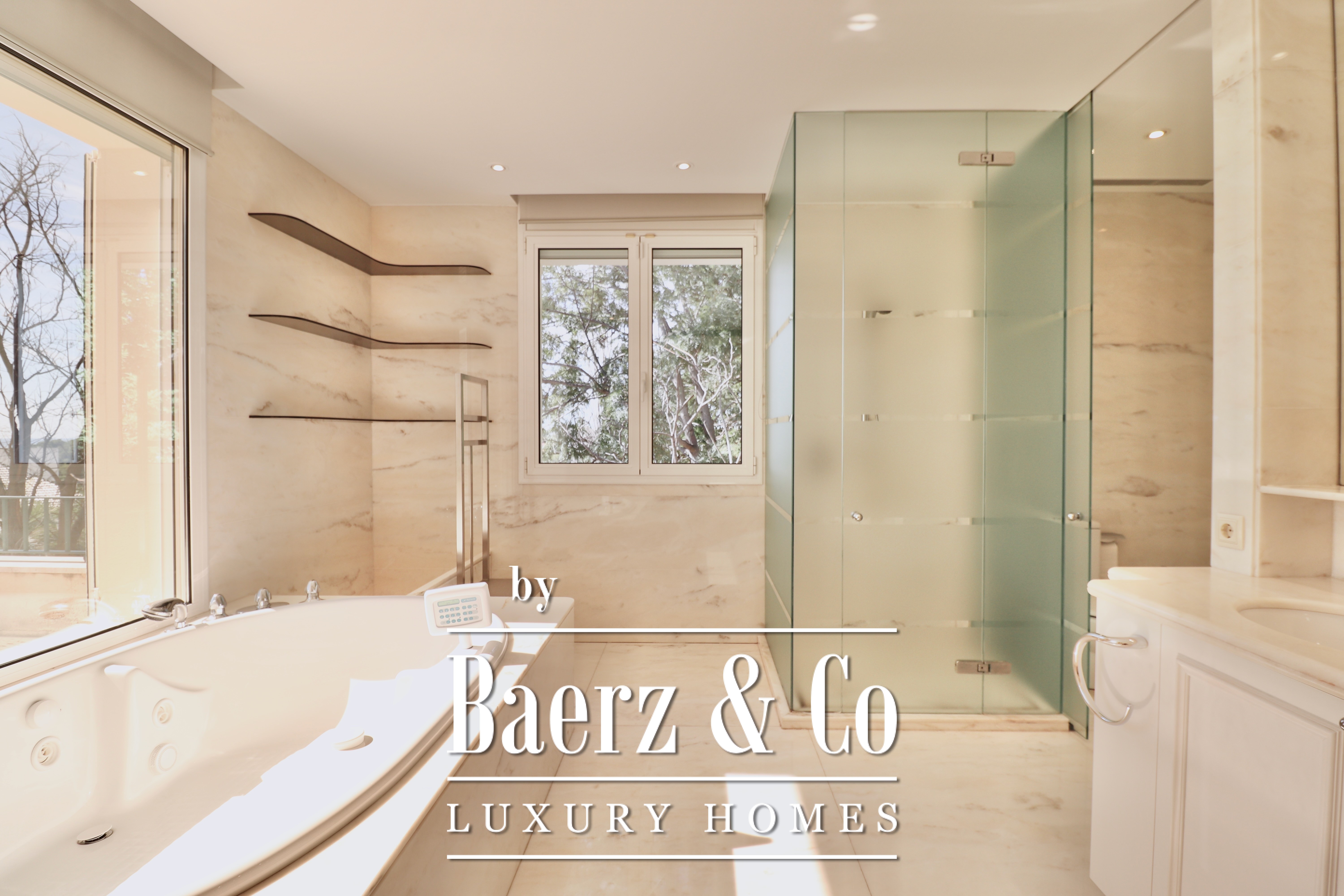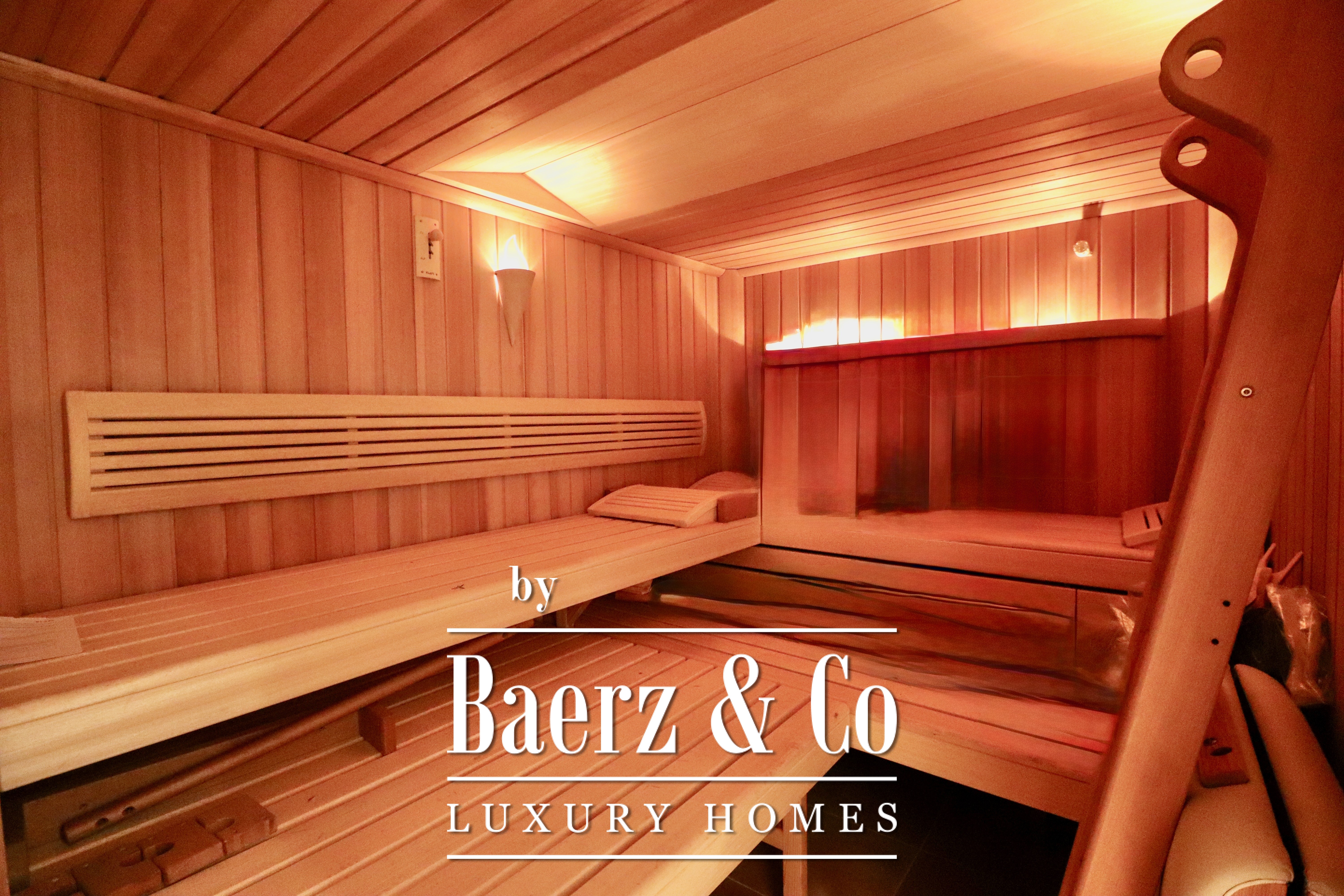 Die Villa wurde für Diskretion und Komfort entworfen und erstreckt sich über drei Ebenen, die durch einen privaten Aufzug verbunden sind. Das Hauptgeschoss empfängt mit einer eleganten Diele, die in einen fließenden Wohnbereich übergeht und Wohn- und Esszimmer, einen Medienbereich sowie eine voll ausgestattete Küche mit angrenzendem Hauswirtschaftsraum und einem separaten Büro umfasst. Fünf Schlafzimmer und acht Bäder ermöglichen sowohl familiäre Geborgenheit als auch großzügige Unterhaltung.