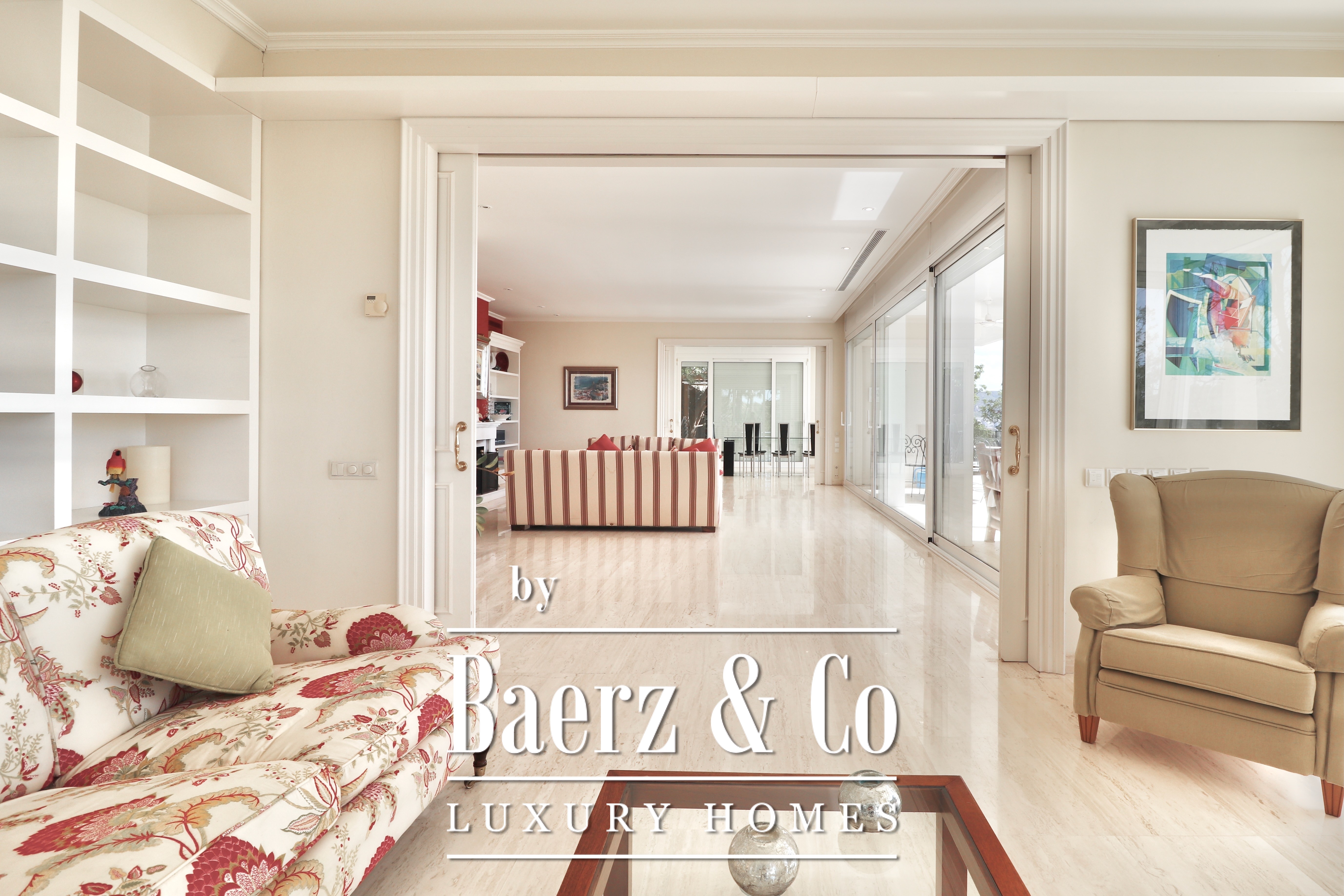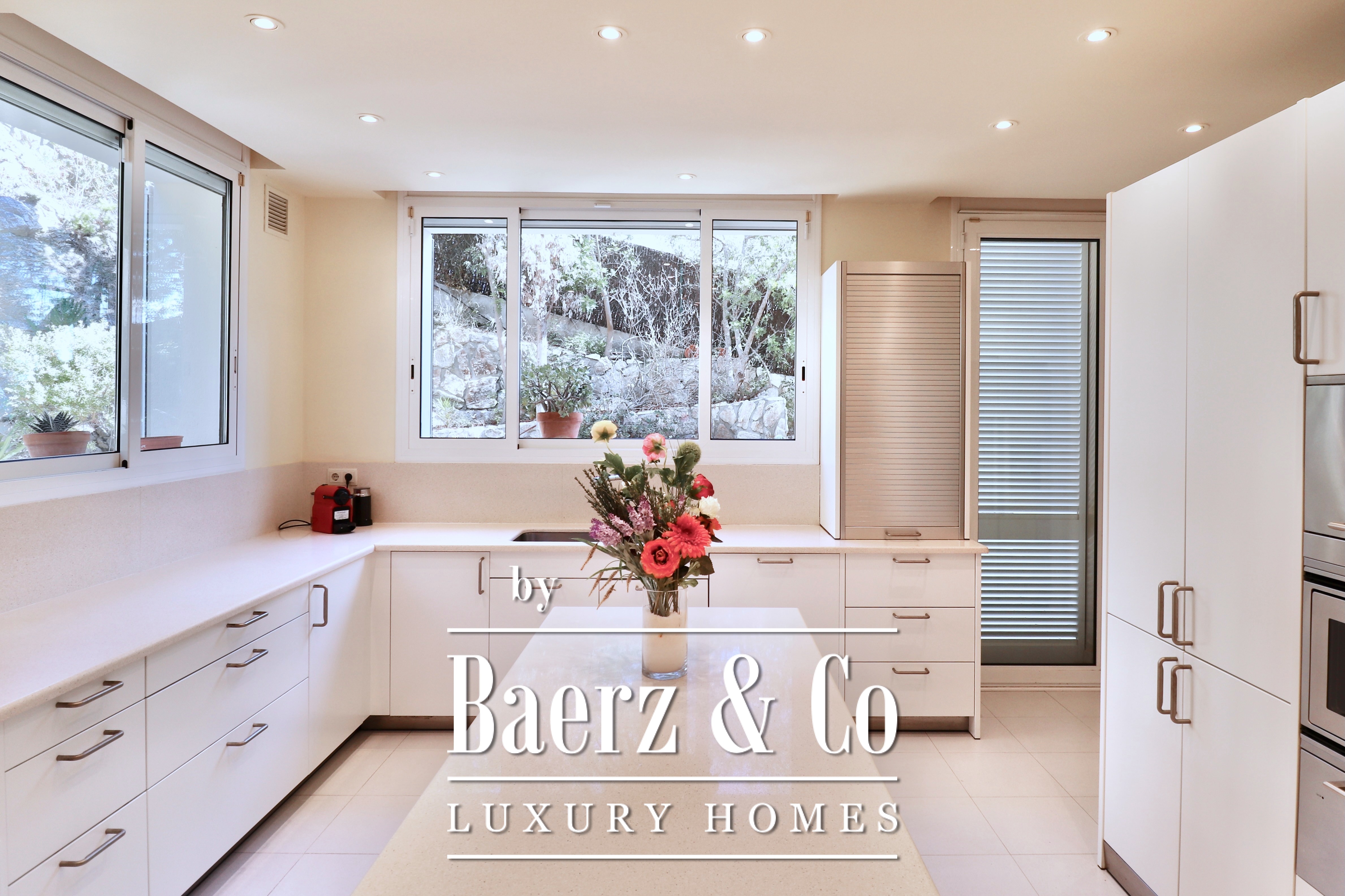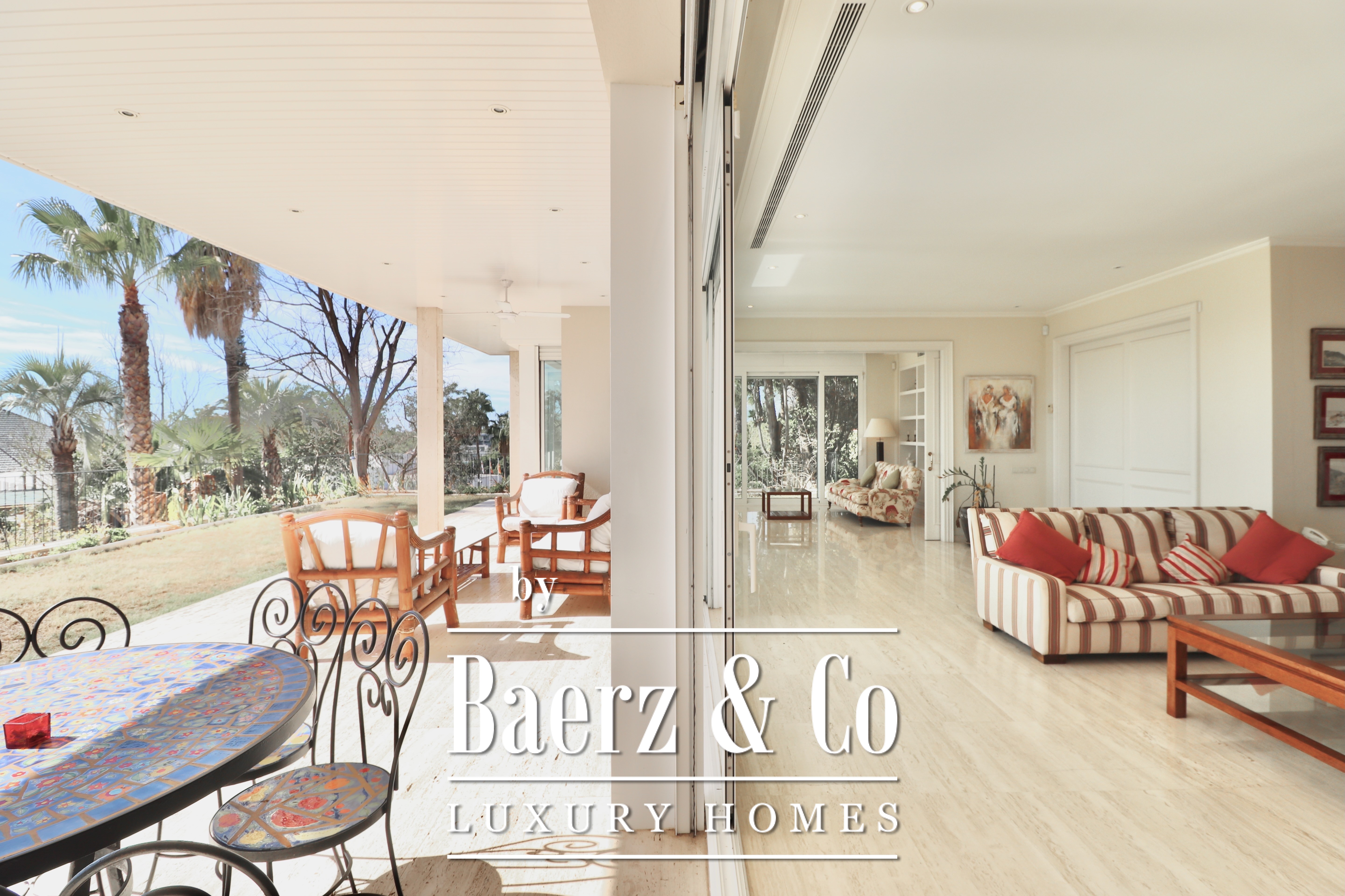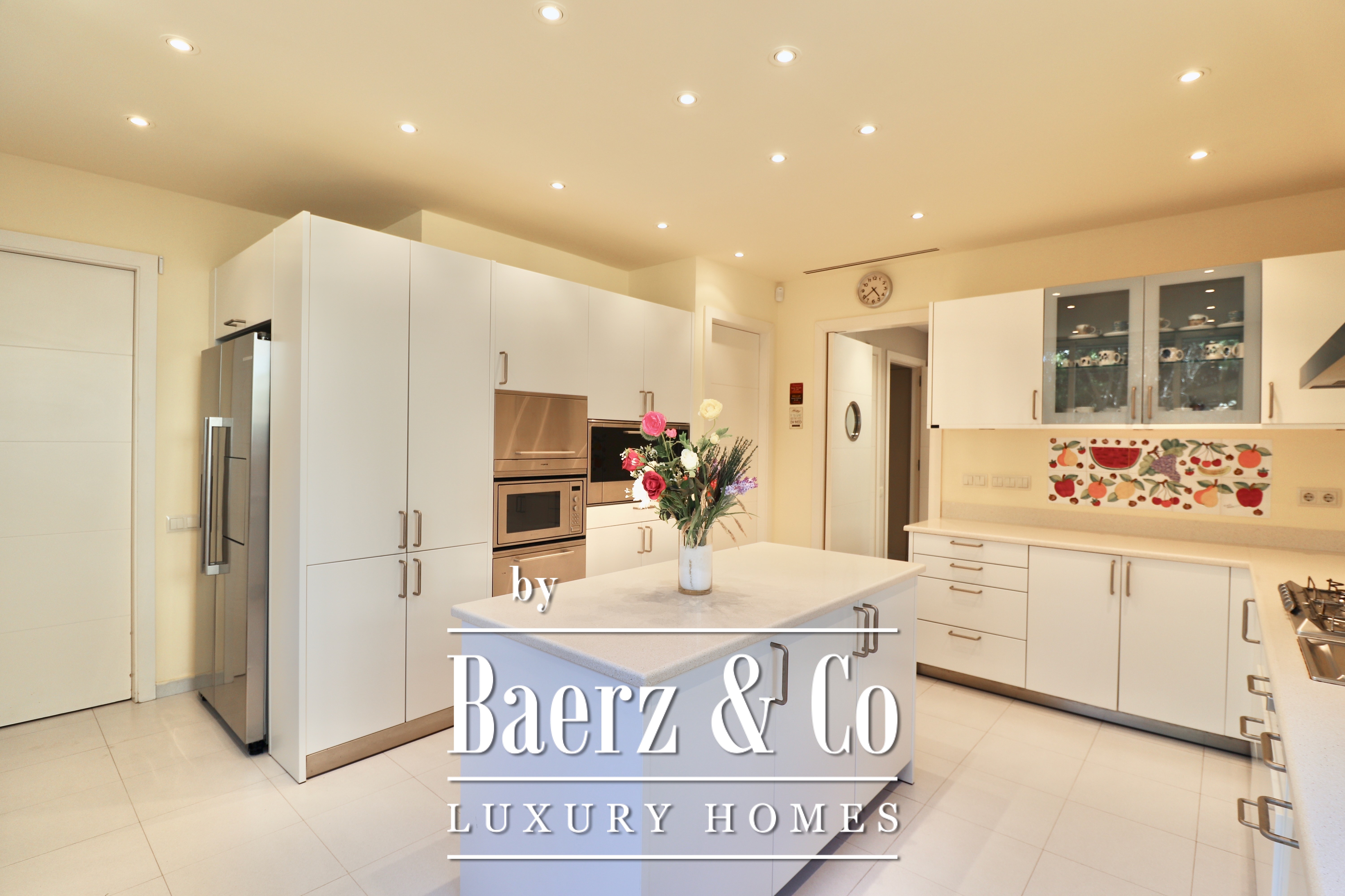 Die Villa wurde für Diskretion und Komfort entworfen und erstreckt sich über drei Ebenen, die durch einen privaten Aufzug verbunden sind. Das Hauptgeschoss empfängt mit einer eleganten Diele, die in einen fließenden Wohnbereich übergeht und Wohn- und Esszimmer, einen Medienbereich sowie eine voll ausgestattete Küche mit angrenzendem Hauswirtschaftsraum und einem separaten Büro umfasst. Fünf Schlafzimmer und acht Bäder ermöglichen sowohl familiäre Geborgenheit als auch großzügige Unterhaltung.