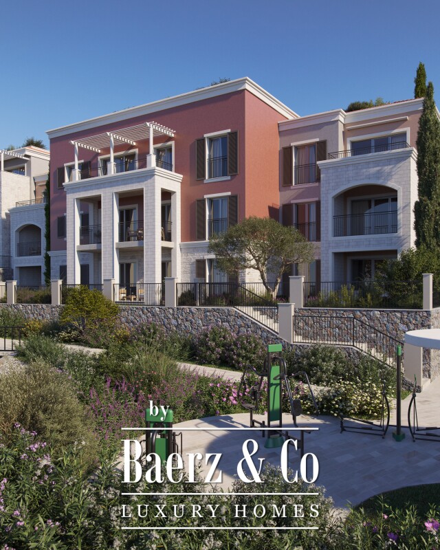 Each home offers bright, airy living spaces that extend onto generous balconies, while select residences enjoy views across Trašte Bay, Boka Bay, and beyond. Residents also benefit from a curated selection of community amenities, including a large private pool, a separate children’s pool, a water feature beside the guvno, and a dedicated fitness area complemented by a peaceful yoga zone.
