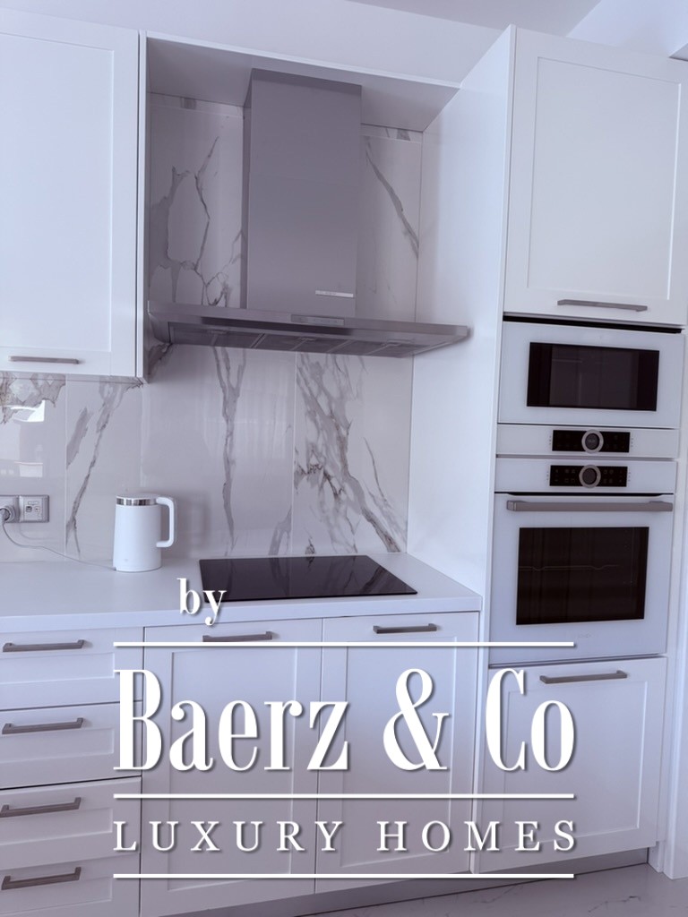 Das komplett möblierte Anwesen erstreckt sich über drei Etagen mit einer Wohnfläche von 214 m² auf einem 463 m² großen Grundstück. Die 2024 renovierte Villa verfügt über fünf Schlafzimmer, fünf Badezimmer und ein Gäste-WC. Vier Schlafzimmer befinden sich im zweiten Stock, während die großzügige Mastersuite mit eigenem Bad und privatem Abstellraum das oberste Geschoss einnimmt. Die Küche blickt auf den angelegten Garten und wird durch ein separates Esszimmer und ein gemütliches Wohnzimmer mit Dampf-Kamin ergänzt. Hochwertige Fliesen, Marmor und Laminat schaffen ein elegantes Gesamtbild.