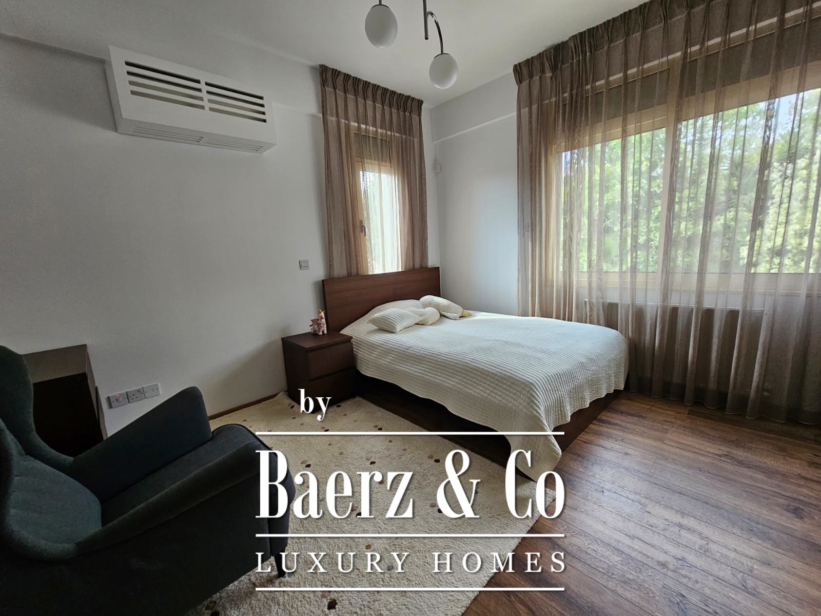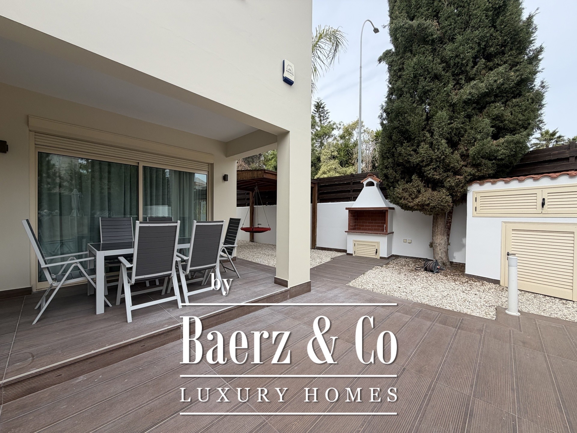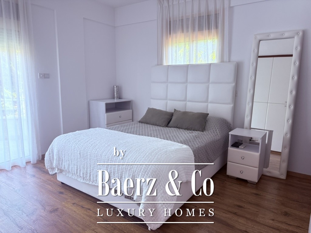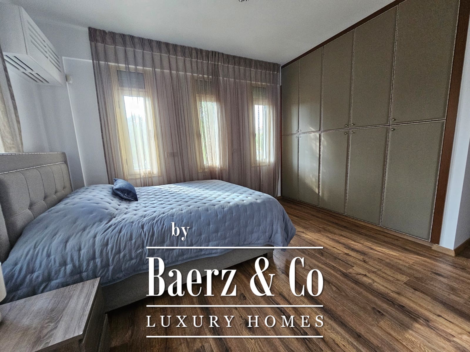 Helle, luftige Räume profitieren von Klimaanlage, Zentralheizung mit Diesel und energieeffizienten doppelt verglasten Aluminiumfenstern. Zusätzliche Ausstattungsmerkmale umfassen einen Wasch- und Abstellraum, Weinkühlschrank, umfassende Sicherheitsmaßnahmen mit Sicherheitstür und Videoüberwachung sowie Schall- und Wärmedämmung. Draußen befindet sich ein privater Swimmingpool im schön gestalteten Garten, passend zum ruhigen Wohnumfeld. Zwei überdachte Parkplätze runden das Angebot ab.