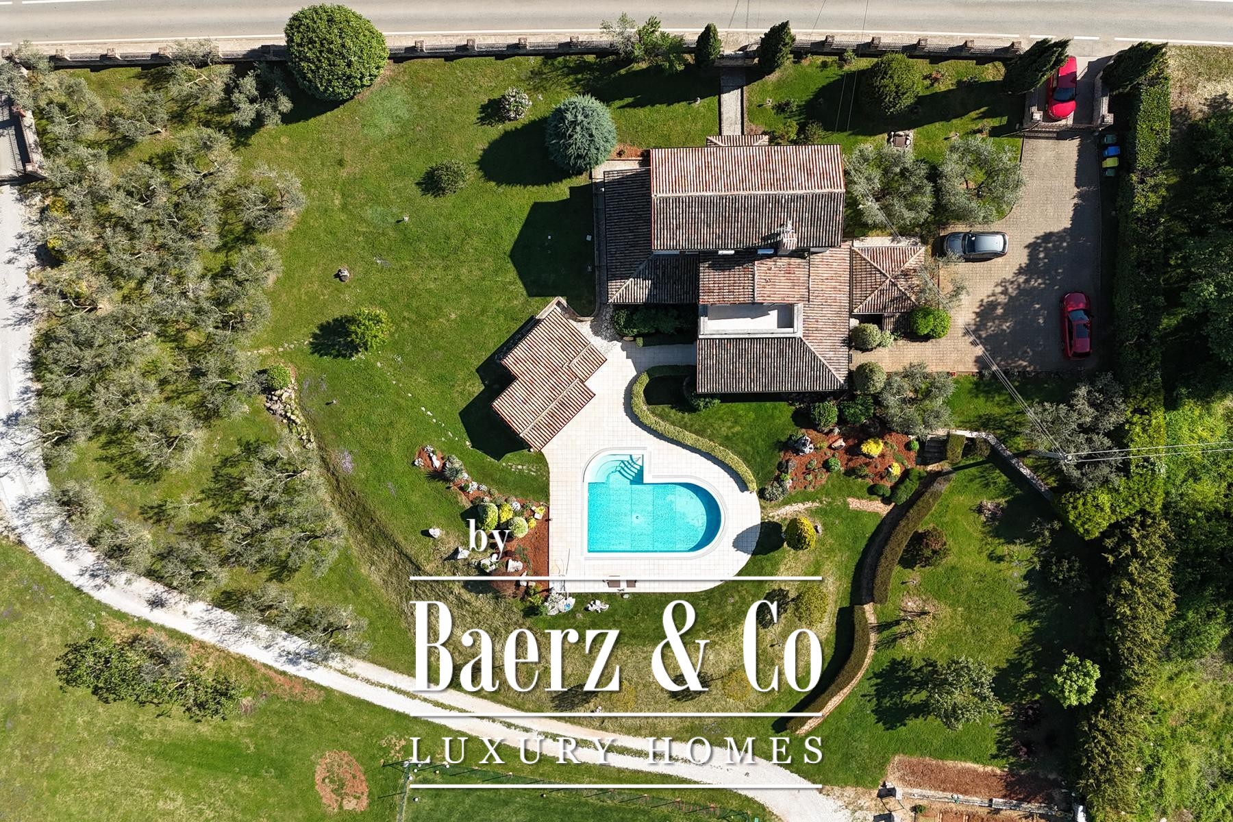 Zum Anwesen gehören eine separate Taverne mit Kamin und Küche, zusätzliche Parkmöglichkeiten und Flächen, die für Wellness, Fitness oder Gäste vorgesehen sind. Außen erwarten Sie automatische Bewässerungssysteme, ein Olivenhain mit rund 110 Bäumen, ein Obstgarten sowie ein Fußballplatz. Das Grundstück bietet weiteres Entwicklungspotenzial und verbindet Privatsphäre mit attraktiven Investitionsmöglichkeiten.