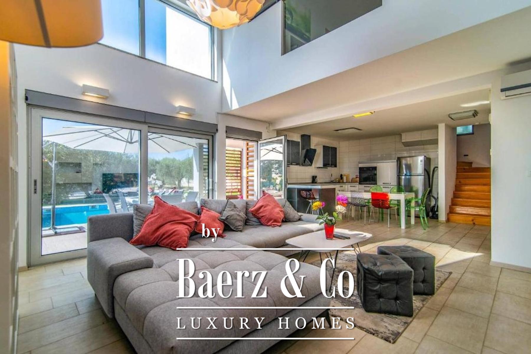 Die Villa Vodnjan mit ihrem Panoramablick aufs Meer steht als Sinnbild modernen Designs und vollendetem Rückzug, nur wenige Minuten vom Zentrum Vodnjans und allen wichtigen Annehmlichkeiten entfernt. Das Objekt bietet 173 m² sorgfältig gestalteten Wohnraum auf einem gesicherten, angelegten Grundstück von 1.294 m², das Privatsphäre und einen freien Ausblick auf die Natur, den Brijuni-Archipel und das bis nach Pula reichende Meer garantiert.