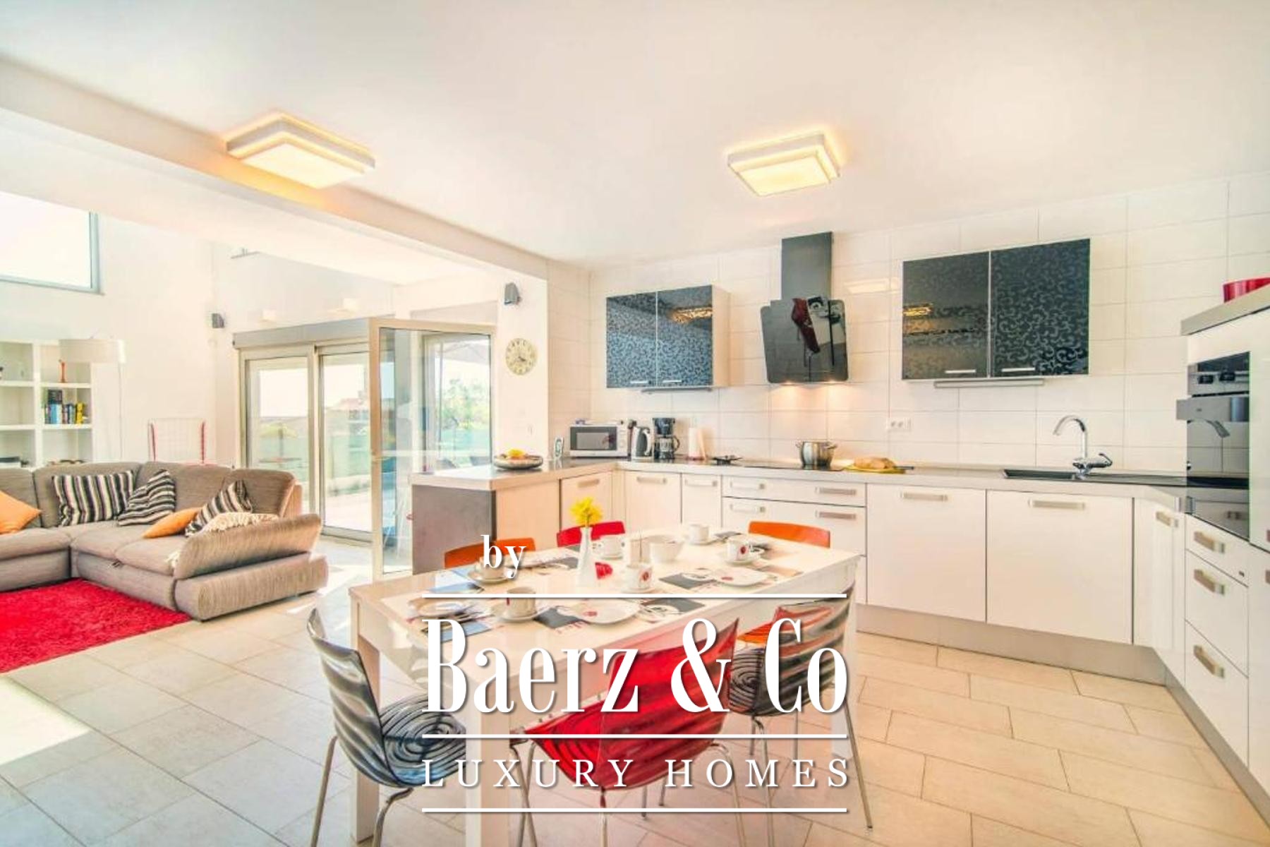 Die Architektur vereint Funktion und Erlebnis. Drei großzügige Schlafzimmer sowie ein nahtlos offener Wohnbereich durchflutet von natürlichem Licht sorgen für ein außergewöhnliches Ambiente. Fußbodenheizung in jedem Zimmer garantiert wohlige Behaglichkeit das ganze Jahr über. Küche, Ess- und Wohnbereich verfügen jeweils über einen Zugang zur Terrasse, von der aus Sie den Blick auf den privaten beheizten Pool, den Sonnendeckbereich und gemütliche Zonen für entspannte Stunden oder gesellige Zusammenkünfte genießen. Die Energieeffizienzklasse A plus bezeugt den Anspruch an Bauqualität und nachhaltige Wirtschaftlichkeit.