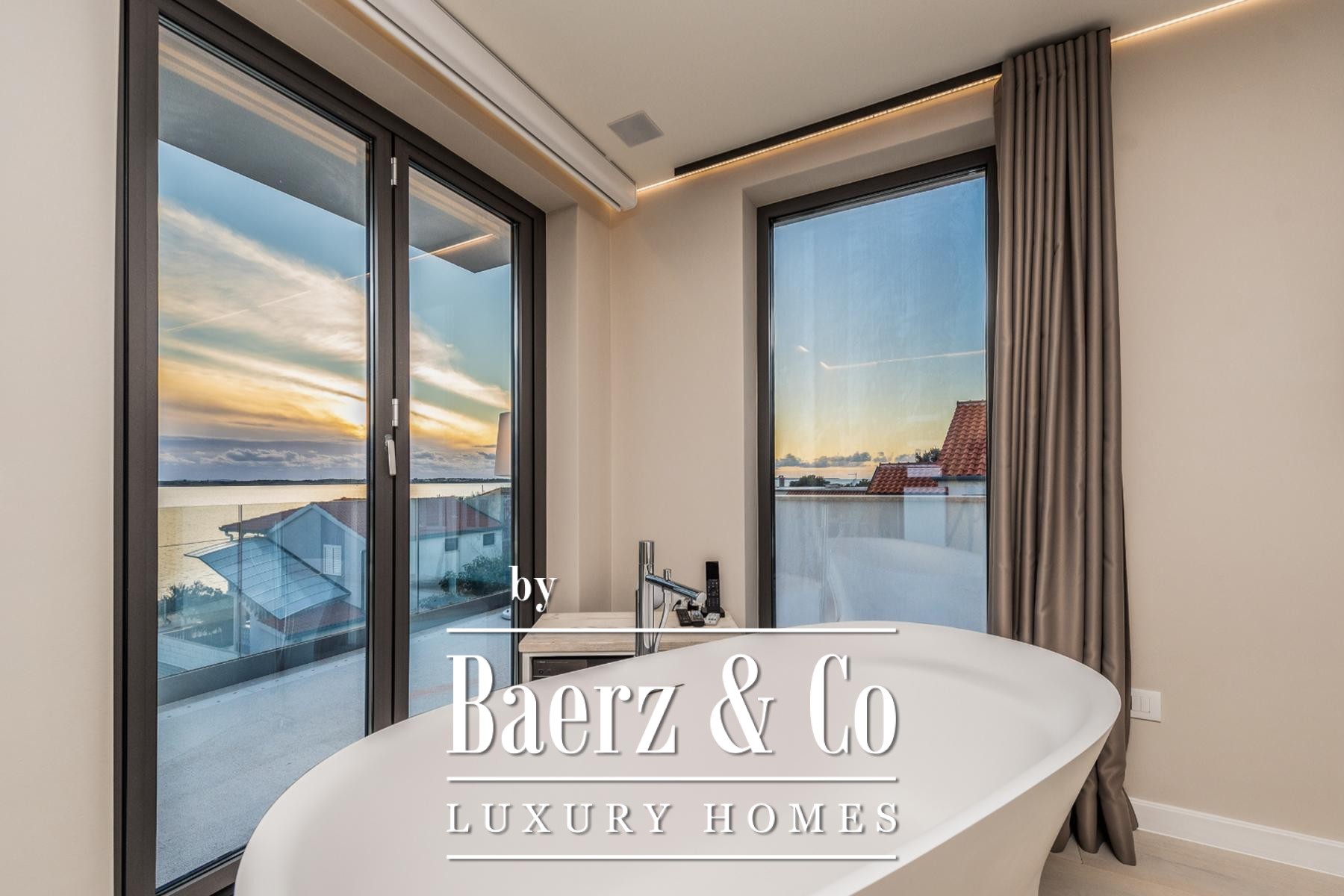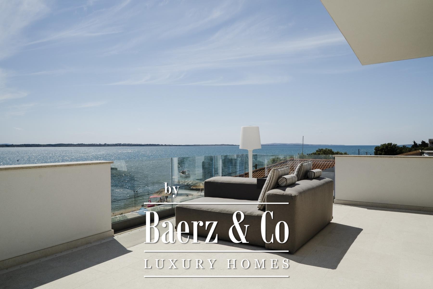 Das exklusive Villenensemble Beachfront Villa Complex Vrsi bietet eine seltene Gelegenheit, zwei moderne, vollständig ausgestattete Villen mit direktem Zugang zur Adria zu erwerben. Fertiggestellt im Jahr 2020, befindet sich dieses Anwesen in erster Reihe am Strand, wodurch der offene Blick auf das Meer und die Bucht das Erlebnis in jedem Raum unvergleichlich prägt. Großzügige Fensterfronten holen das mediterrane Licht und die Ausblicke in die sorgfältig gestalteten Innenräume und verleihen dem Ambiente eine gelungene Balance aus Privatsphäre und Offenheit – ideal für Familienzusammenkünfte oder entspannte Zeiten mit Freunden.