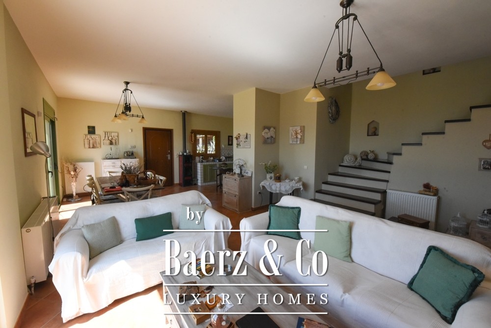 Οι ευρύχωρες ζώνες διαβίωσης με εντοιχισμένες κουζίνες αποτελούν το κέντρο της καθημερινότητας και της φιλοξενίας. Παράθυρα με διπλά τζάμια, πόρτες ασφαλείας, κλιματισμός, αυτόνομη θέρμανση σε κάθε όροφο, ενεργειακό τζάκι και τρεις ιταλικές ξυλόσομπες προσφέρουν άνεση όλο τον χρόνο. Μεγάλες βεράντες επεκτείνονται αρμονικά προς τον κήπο με ώριμα δέντρα και την ελκυστική πισίνα που δεσπόζει στην έκταση των 5.000 τ.μ.