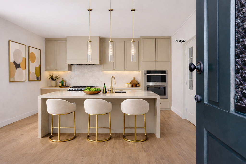 Η είσοδος είναι διακριτική, οδηγώντας από ιδιωτικό δρόμο στάθμευσης με χώρο για δύο οχήματα κάτω από στεγασμένη πέργκολα. Εσωτερικά, ευρύχωροι διάδρομοι δημιουργούν μια αίσθηση ηρεμίας και συνδέουν τους κύριους χώρους. Το μπροστινό σαλόνι είναι ανοιχτό και φιλόξενο, φωτεινό φυσικά και εστιασμένο γύρω από ένα ηλεκτρικό τζάκι. Η σύγχρονη κουζίνα προσφέρει λειτουργικότητα και ευελιξία για προσωπική ανακαίνιση, ενώ το δεύτερο σαλόνι στο πίσω μέρος διαθέτει τζάκι, ενδοδαπέδια θέρμανση και θέα στον κήπο.