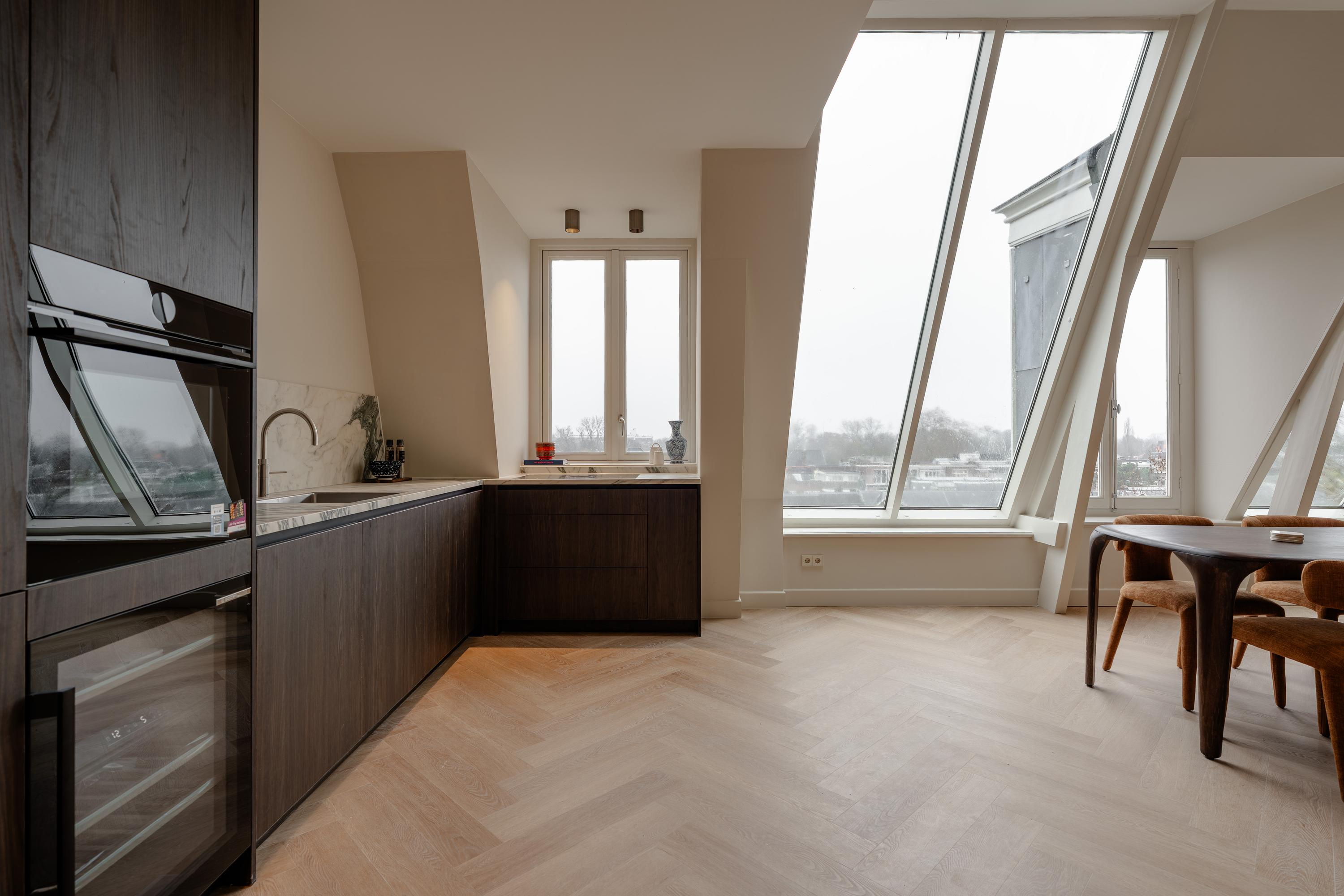 Το διαμέρισμα Amsterdam Oud-Zuid προσφέρει μια εκλεπτυσμένη εμπειρία διαμονής σε αυτήν την κατοικία 102,4 m² στον τέταρτο όροφο μιας κομψής λεωφόρου. Το διαμέρισμα Amsterdam Oud-Zuid διακρίνεται από τα ψηλά ταβάνια και την εντυπωσιακή δομή της στέγης, που καταλήγει σε εκτεταμένα φεγγίτες στο πίσω μέρος. Ο χώρος διαβίωσης λούζεται στο φως της ημέρας και προσφέρει ανεμπόδιστη θέα στο πράσινο τοπίο της πόλης, δημιουργώντας μια σπάνια αίσθηση ηρεμίας στο κέντρο της πόλης.