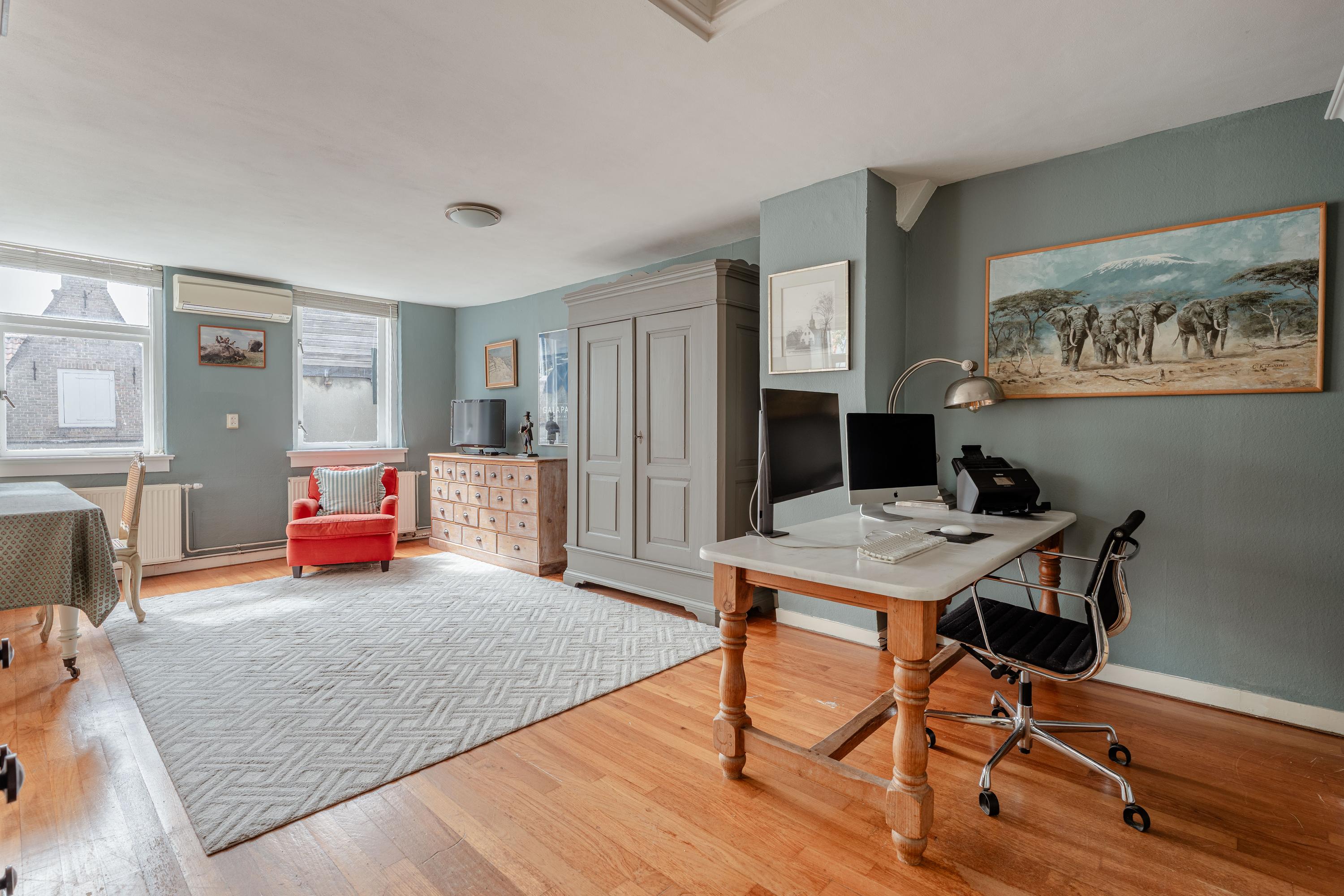 Το διαμέρισμα σας υποδέχεται απευθείας από την Prinsengracht, μέσα από μία κλασική ξύλινη πόρτα δίπλα στο Brooklyn Antiques. Στο εσωτερικό, ο χώρος αποκαλύπτει καθιστικά με ψηλά ταβάνια και μεγάλες τζαμαρίες που πλαισιώνουν γαλήνια θέα στα κανάλια και άπλετο φυσικό φως. Ο κύριος όροφος συνδέει τρία υπνοδωμάτια, συμπεριλαμβανομένης μιας σουίτας με ιδιωτικό μπάνιο, και ένα προσαρμόσιμο γραφείο ή καθιστικό. Δύο επιπλέον μπάνια και ανέσεις για επισκέπτες διασφαλίζουν πρακτικότητα ανάλογη με τη μεγαλοπρέπεια του περιβάλλοντος.