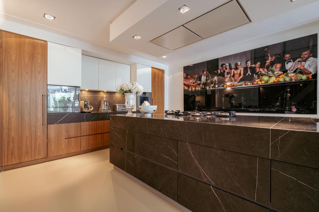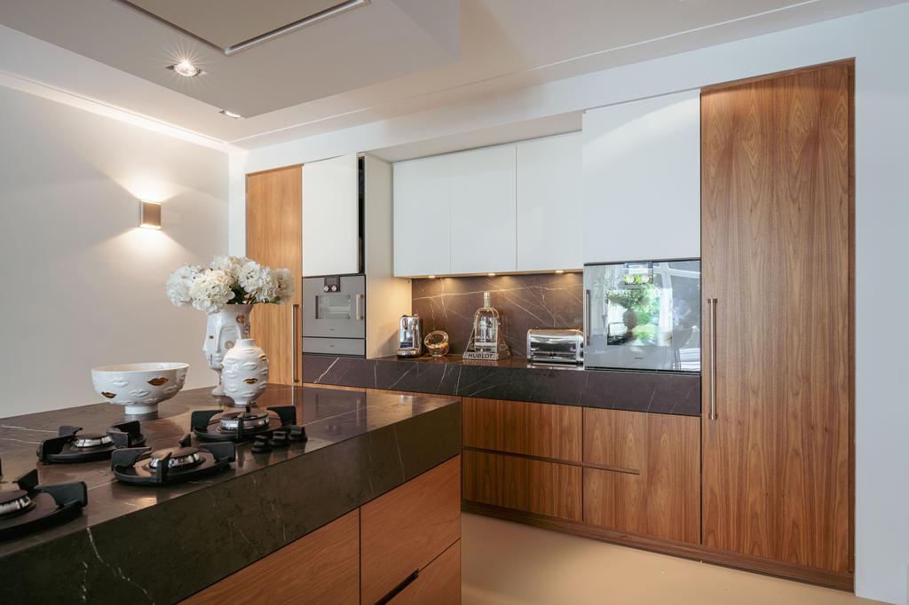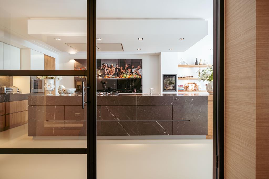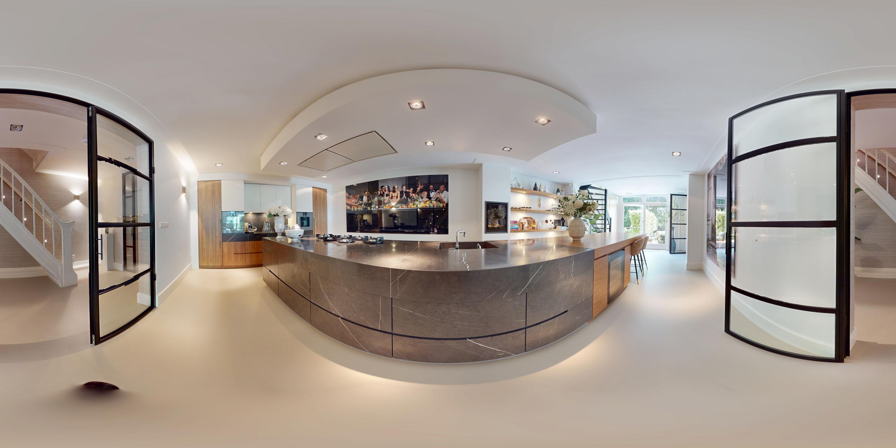 Η ανοιχτή κουζίνα στο χαμηλότερο επίπεδο, εξοπλισμένη με συσκευές Gaggenau και πάγκο από συμπαγή πέτρα, αποτελεί το επίκεντρο της καθημερινής ζωής. Γαλλικές πόρτες οδηγούν σε ευρύχωρη βεράντα και στον νότιο κήπο των 157 τ.μ., σχεδιασμένο από τον Erik van Gelder, με εξωτερική κουζίνα—μια σπάνια όαση με ιδιωτική πρόσβαση από τη Schapenburgerpad. Σε κάθε όροφο, ο προσεγμένος σχεδιασμός αναβαθμίζει τη λειτουργικότητα: ασανσέρ, μερική ενδοδαπέδια θέρμανση και πολλαπλά τζάκια υγραερίου εξασφαλίζουν άνεση όλο τον χρόνο.