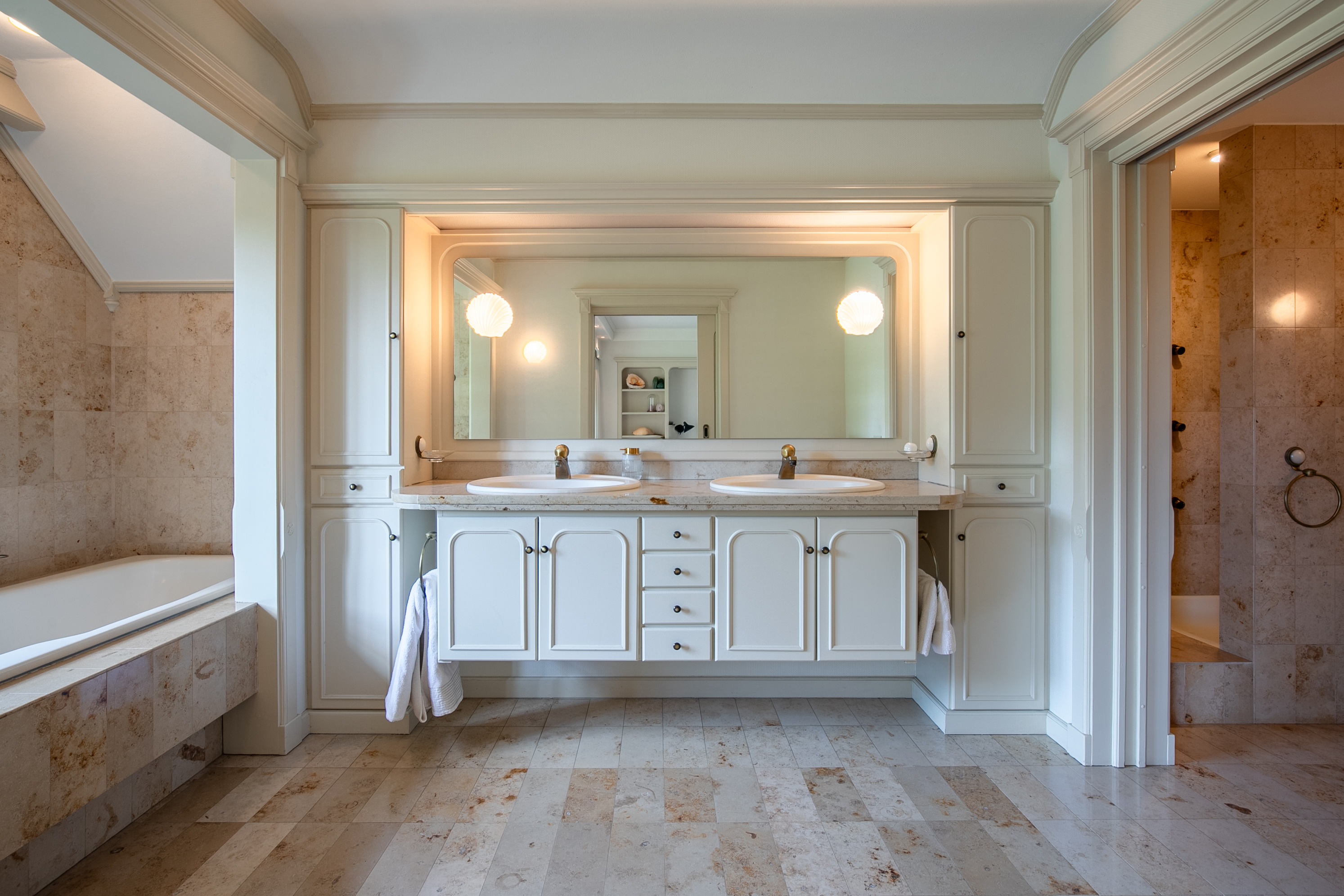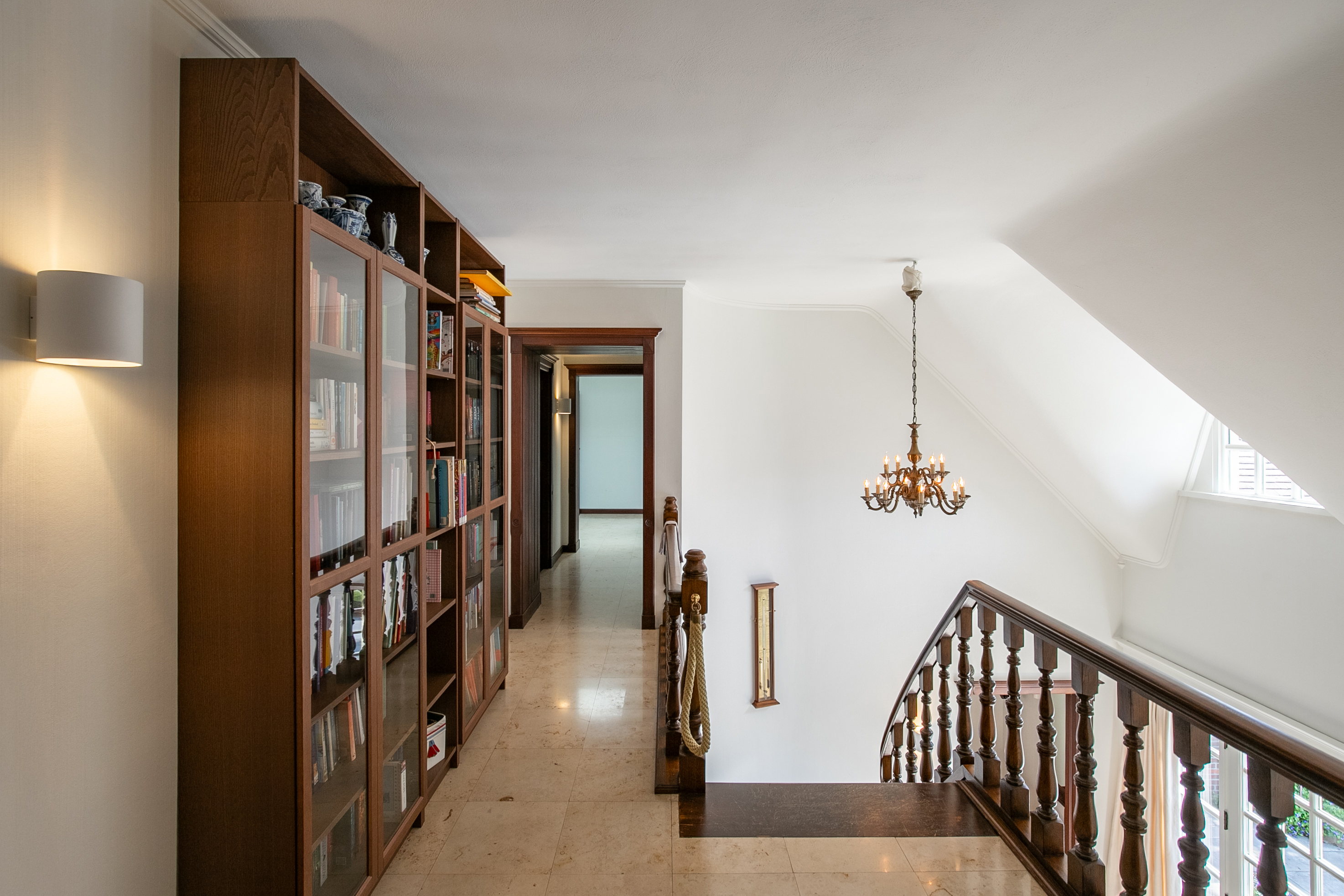 Έξι υπνοδωμάτια κατανεμημένα σε τρία επίπεδα, εξυπηρετούνται από τρία μπάνια. Η κύρια σουίτα διαθέτει ιδιωτικό μπάνιο, δωμάτιο-ντουλάπα και μπαλκόνι με θέα σε ώριμους κήπους. Το υπόγειο προσφέρει πλυντήριο, αποθήκη και κελάρι, ενώ το διπλό γκαράζ, η ασφαλής ιδιωτική είσοδος και η ηλεκτρική πύλη ολοκληρώνουν τη διακριτική πολυτέλεια.