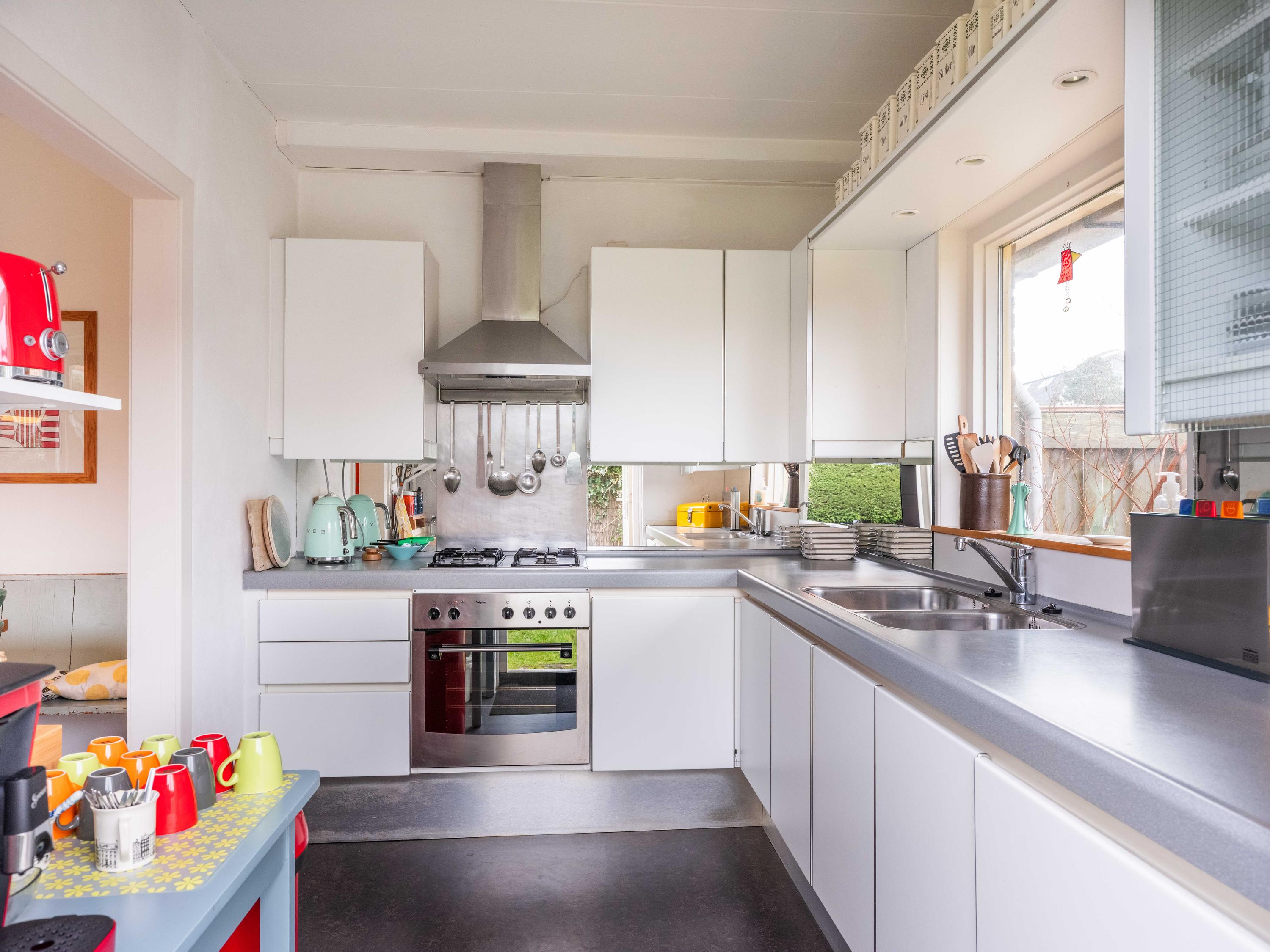 Μεγάλα παράθυρα επιτρέπουν το φυσικό φως να διαχέεται, ενώ ο ώριμος κήπος εξασφαλίζει ιδιωτικότητα και εναλλαγή ηλίου και σκιάς καθ’ όλη τη διάρκεια της ημέρας. Το γκαράζ φιλοξενεί ένα μικρό αυτοκίνητο ή ποδήλατα, διαθέτει ηλεκτρικό ρεύμα και φωτισμό για πρακτική αποθήκευση, ενώ η επιπλέον θέση στο δρομάκι παρέχει άνετο πάρκινγκ.