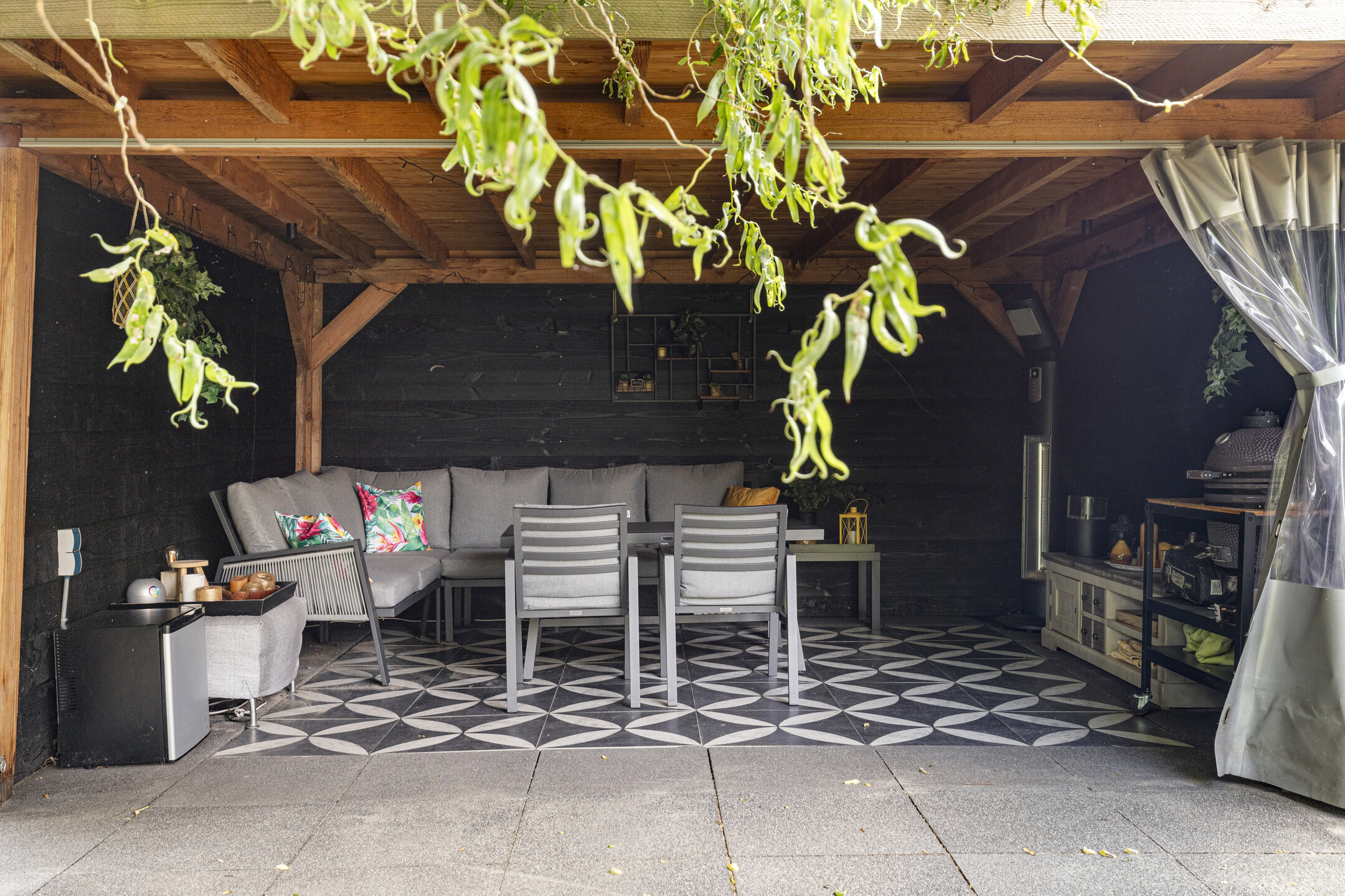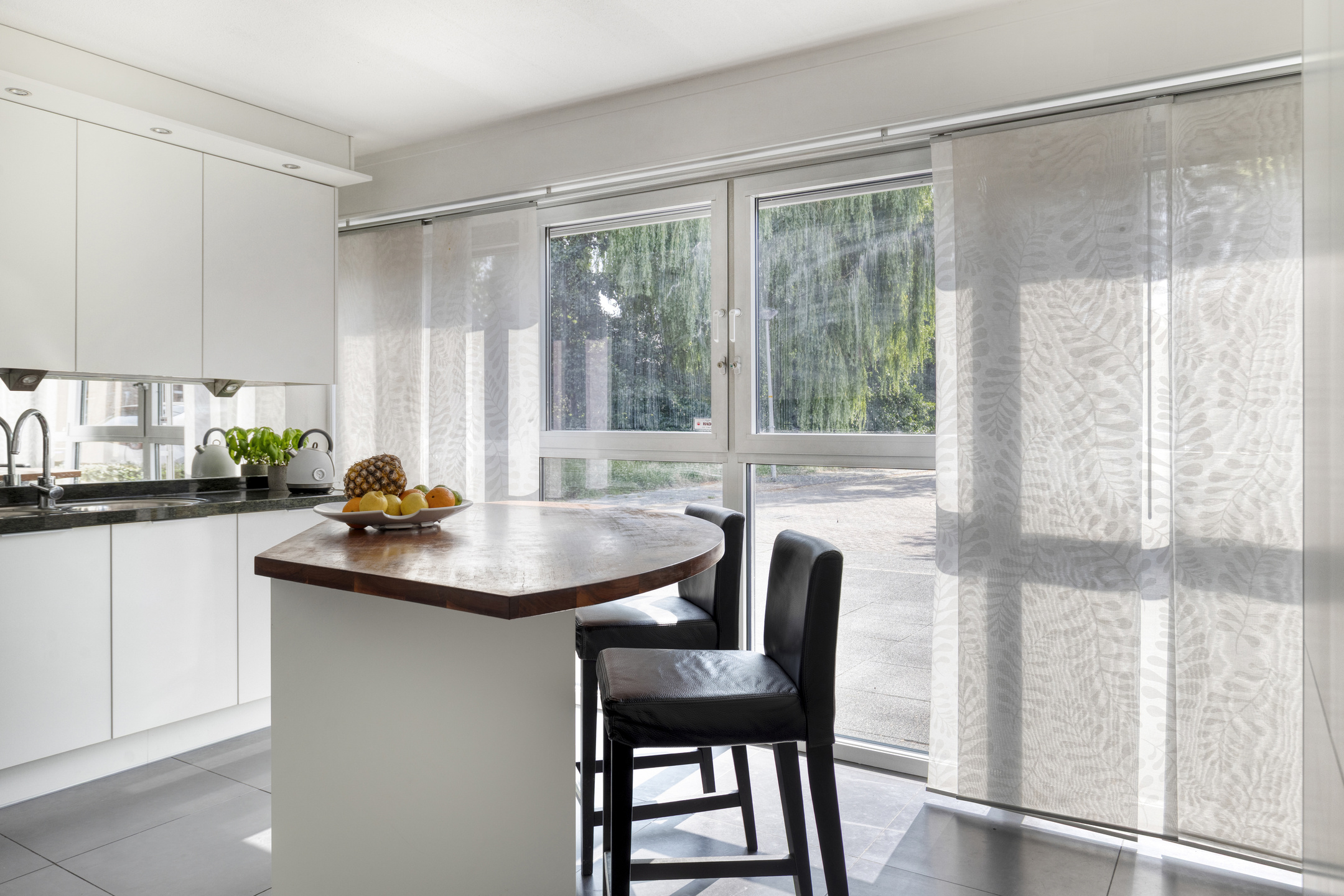 Η είσοδος οδηγεί σε ένα πλακιδωτό χολ και στη συνέχεια στο ευρύχωρο καθιστικό, όπου η ενδοδαπέδια θέρμανση και οι γαλλικές πόρτες δημιουργούν μια γαλήνια, φωτεινή ατμόσφαιρα. Η πρόσφατα ανακαινισμένη κουζίνα σε σχήμα L διαθέτει εντοιχισμένες συσκευές και διπλό νεροχύτη, σχεδιασμένα για λειτουργικότητα και πρακτικότητα. Η άμεση πρόσβαση στην ιδιωτική βεράντα επιτρέπει άψογη σύνδεση μεταξύ εσωτερικού και εξωτερικού χώρου.