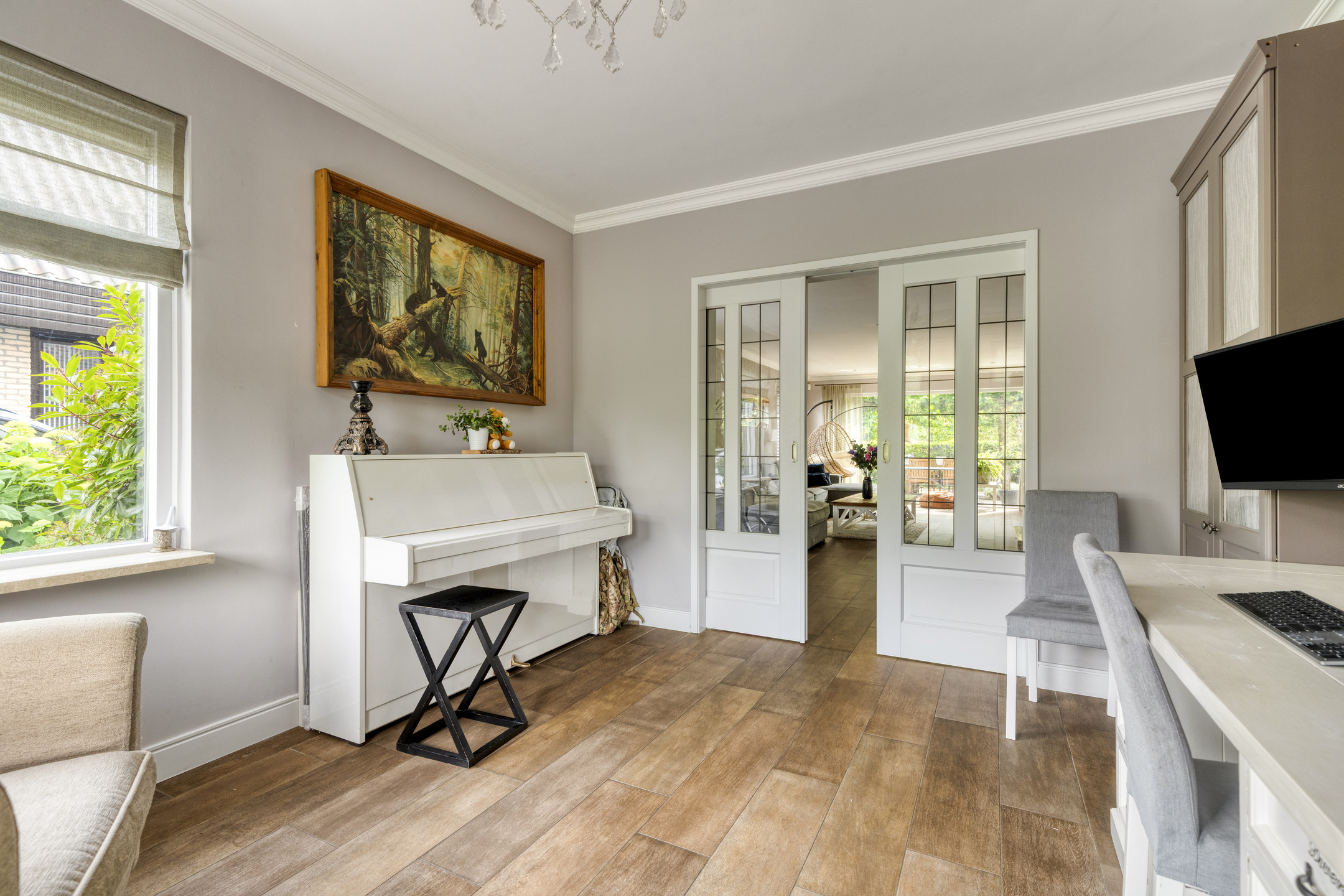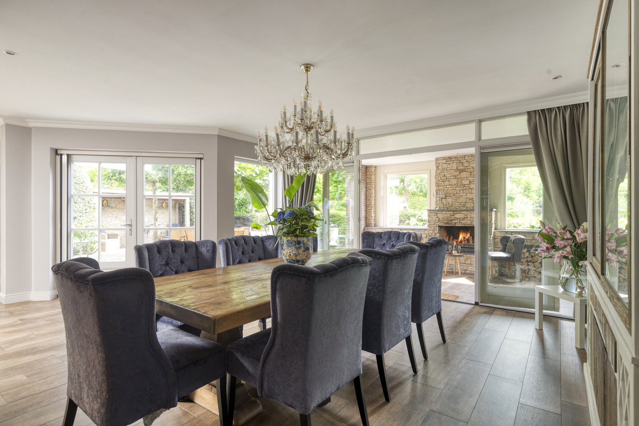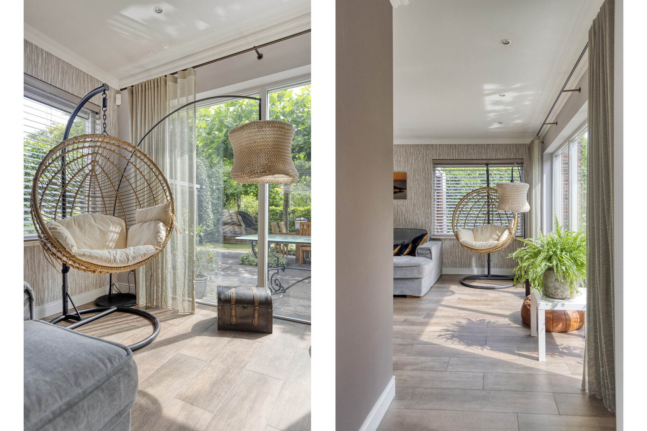 Η Villa Bergschenhoek με πέντε υπνοδωμάτια και κήπο με νοτιοδυτικό προσανατολισμό προσφέρει διακριτική άνεση σε έναν ήσυχο δρόμο κοντά στο κέντρο του Bergschenhoek. Αυτή η βίλα, σε οικόπεδο 445 τ.μ., χαρακτηρίζεται από γενναιόδωρες διαστάσεις και προσεγμένες λεπτομέρειες σε όλο το χώρο διαβίωσης των 223 τ.μ. Η κατοικία ανοίγει σε αλληλουχία χώρων σαλονιού και τραπεζαρίας με πλακάκια ξύλινης όψης, ενδοδαπέδια θέρμανση και κουζίνα εξοπλισμένη με συσκευές Siemens, νησίδα μαγειρέματος και φυσικό φως από φεγγίτη. Γαλλικές πόρτες οδηγούν σε σκεπαστή βεράντα 17 τ.μ. με τζάκι, δημιουργώντας μια ομαλή μετάβαση ανάμεσα σε εσωτερικό και κήπο.