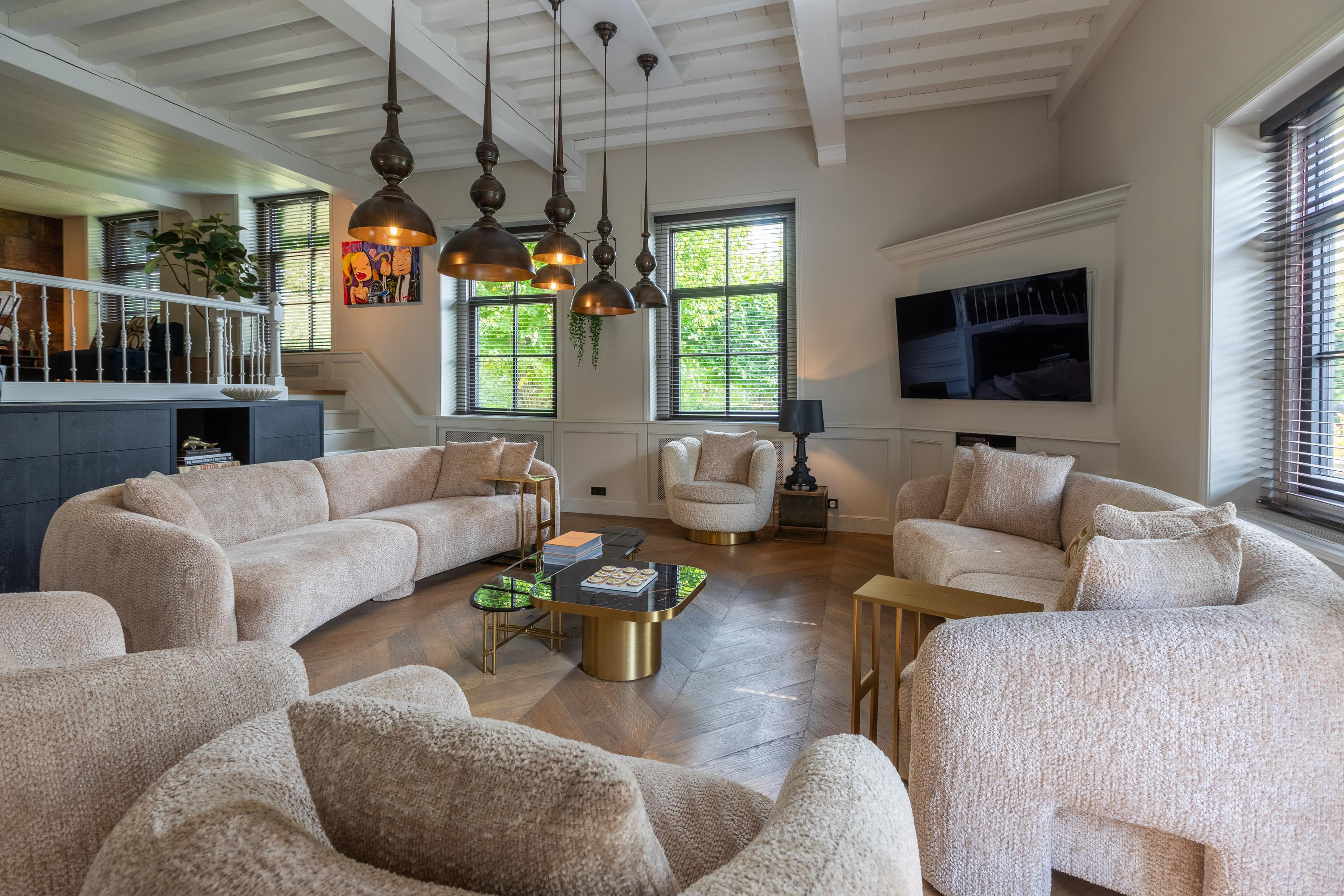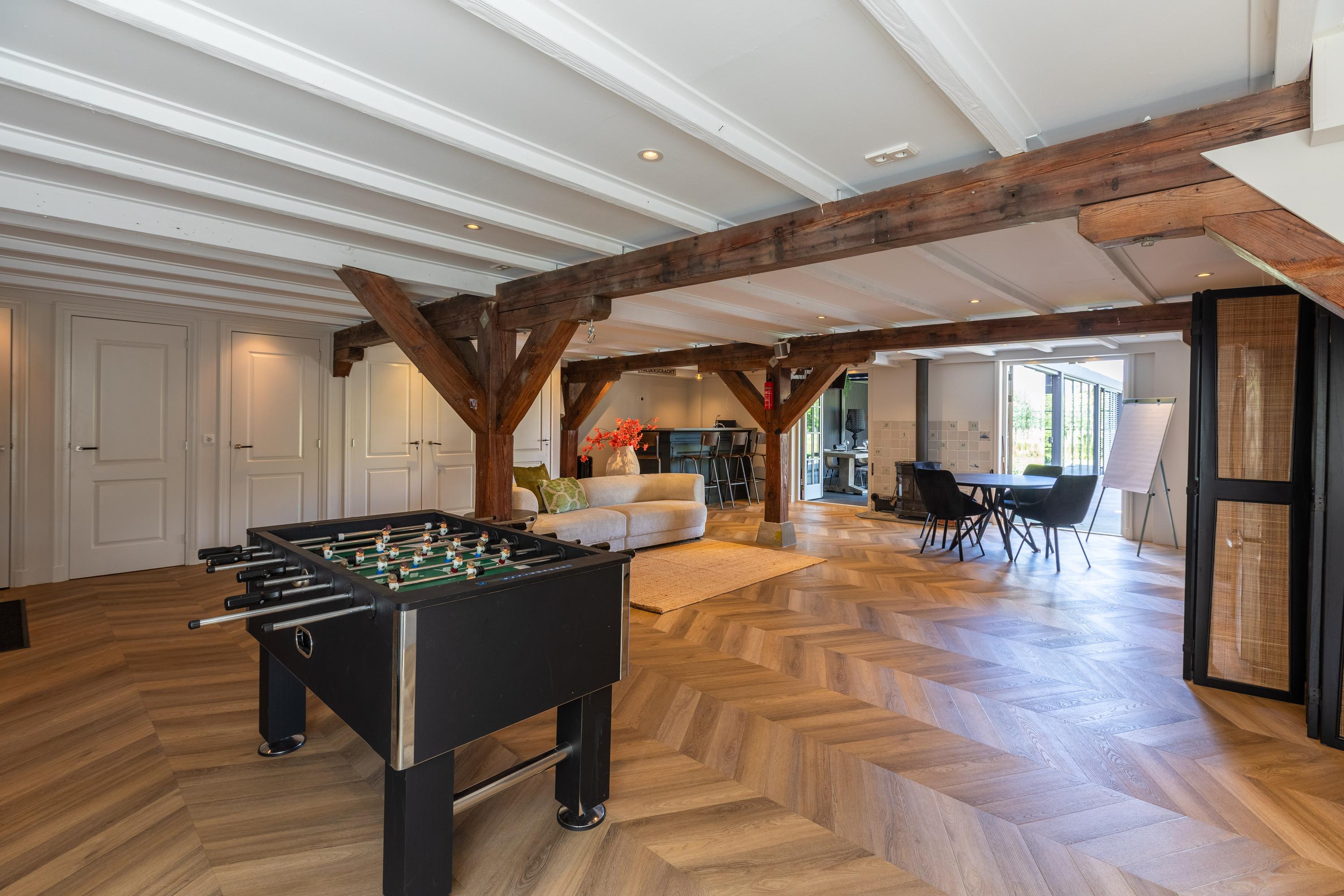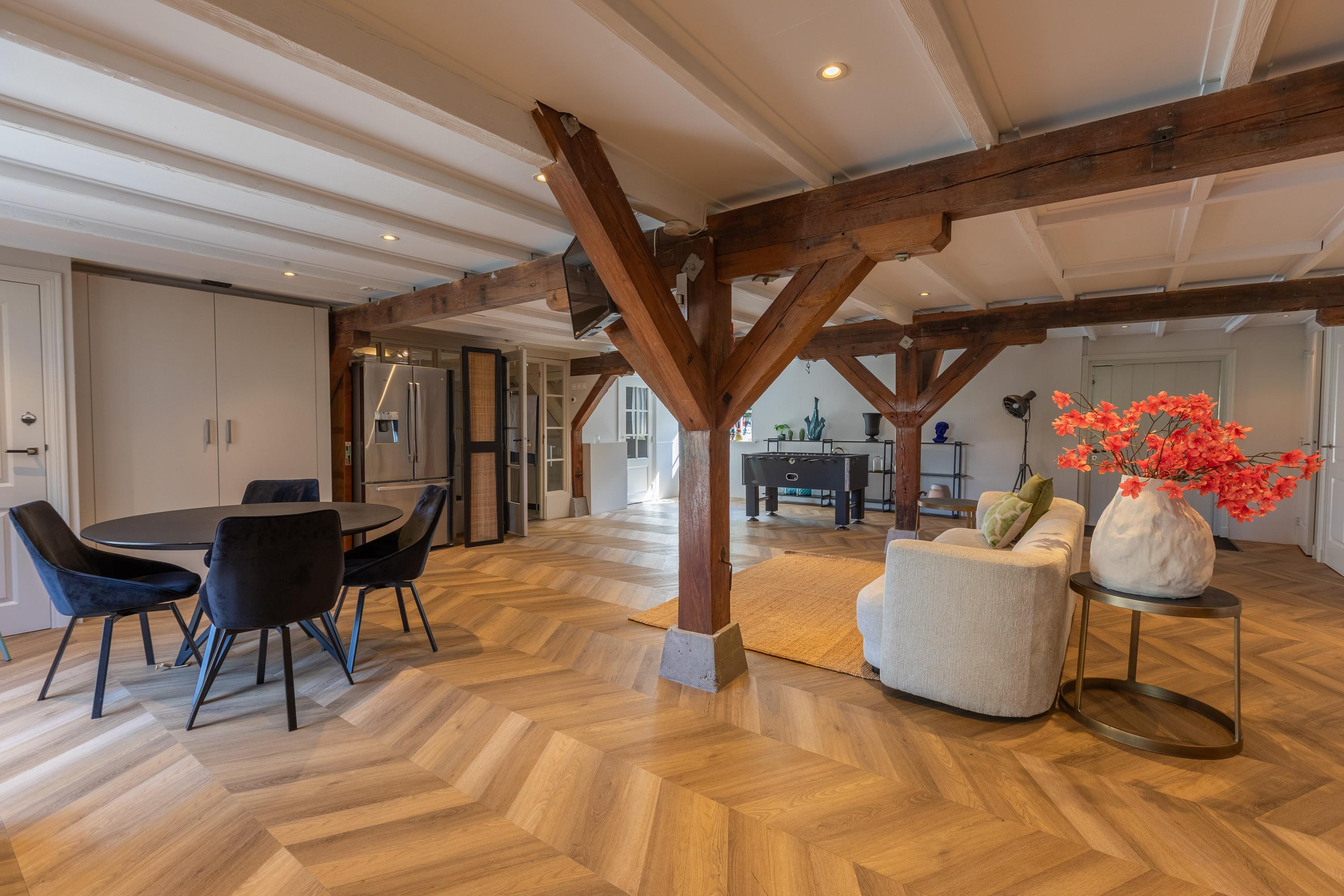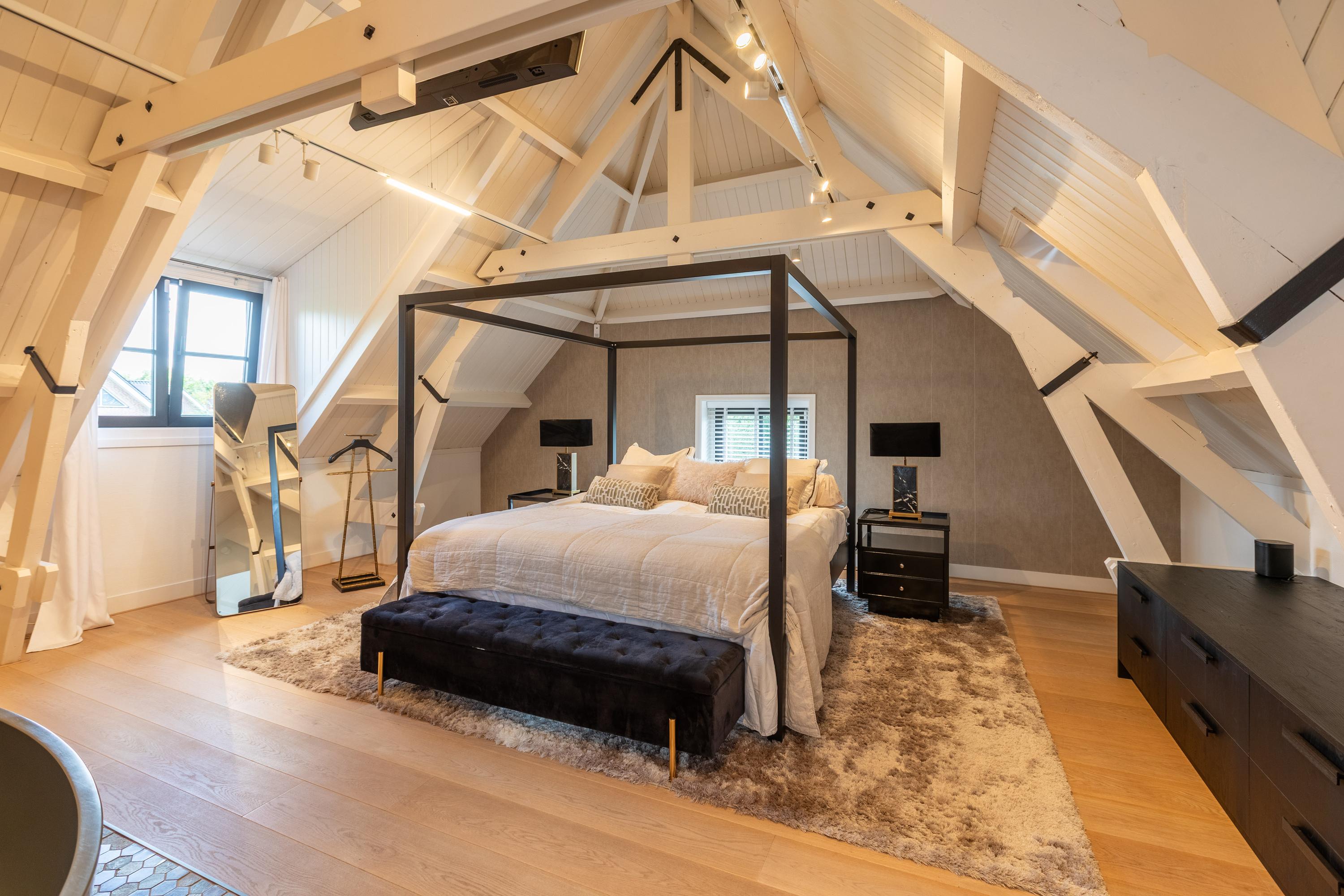 Με την άφιξη μέσω ηλεκτρικά ελεγχόμενης πύλης, ο κήπος προσφέρει επιμελημένους γκαζόν σε επίπεδα, ώριμες φυτεύσεις και χαμηλωμένο καθιστικό, πλαισιώνοντας την πανοραμική θέα στα γειτονικά λιβάδια του Midden-Delfland. Η κύρια κατοικία διαθέτει ευρύχωρους χώρους, συμπεριλαμβανομένης μιας εντυπωσιακής κουζίνας με μαρμάρινη νησίδα μαγειρέματος και πατάρι, μια σειρά από διασυνδεδεμένα καθιστικά με αυθεντικές δοκούς και αίθουσα κινηματογράφου στο αρχικό κελάρι τυριού. Η ζώνη ευεξίας προσφέρει στιγμές χαλάρωσης με jacuzzi, φινλανδική και υπέρυθρη σάουνα, όλα μέσα σε ένα φωτεινό προσάρτημα.