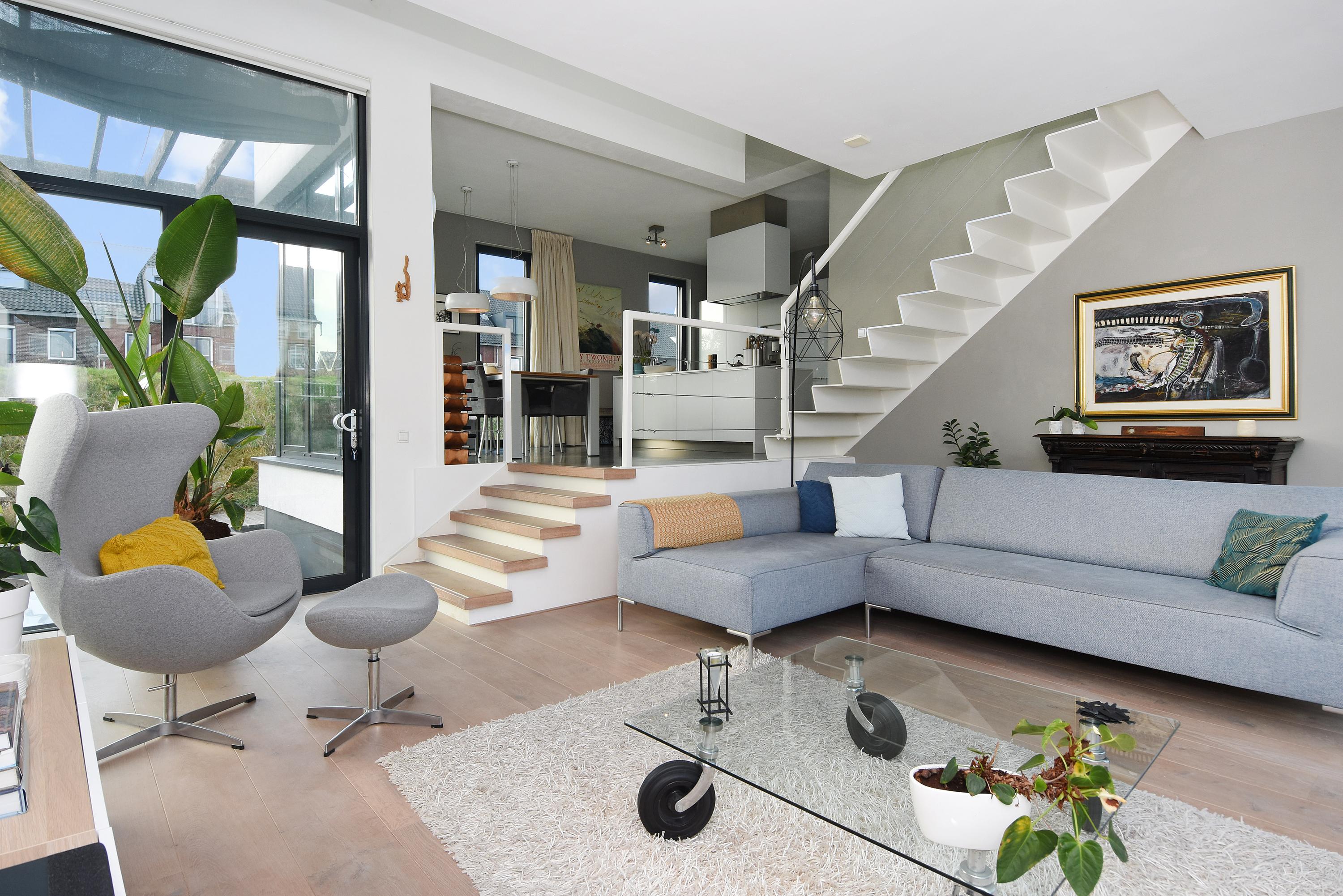 Η διαρρύθμιση είναι σκόπιμα ευέλικτη. Με την άφιξη, ειδικά διαμορφωμένος χώρος για αποθήκευση ποδηλάτων οδηγεί, μέσω σταθερής σκάλας, στην κύρια είσοδο. Ο χώρος υποδοχής αποκαλύπτει πρακτική βοηθητική περιοχή και μια κύρια σουίτα με ιδιωτικό μπάνιο, ευρύχωρη ντουζιέρα και διπλό νιπτήρα. Το ισόγειο ρέει από πλήρως εξοπλισμένη κουζίνα με ευρύχωρο νησίδα προς το καθιστικό, όπου τα παράθυρα από το δάπεδο έως την οροφή πλαισιώνουν τη θέα στο νερό. Βεράντες τόσο προς το νερό όσο και στην ταράτσα παρέχουν ιδιωτικά καταφύγια για χαλάρωση στην ύπαιθρο. Το πατάρι, σχεδιασμένο ως ευέλικτη ζώνη, προσφέρεται φυσικά για εργασία, αναψυχή ή χαλάρωση κάτω από τον ολλανδικό ουρανό.