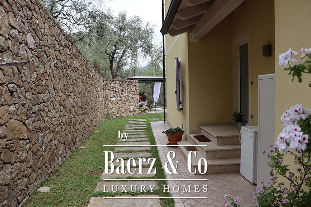 Και τα δύο κύρια κτήρια είναι εξοπλισμένα με φωτοβολταϊκά πάνελ, ενσωματώνοντας φιλική προς το περιβάλλον τεχνολογία στον ήρεμο ρυθμό της υπαίθρου. Ο εκτενής κήπος των 12.000 τ.μ. διαθέτει βιολογική πισίνα, σχεδιασμένη με σεβασμό στο περιβάλλον, κατασκευασμένη από χαλαζιακή άμμο και ρητίνη. Αυτή η εξοχική κατοικία προς πώληση στο Dolceacqua παντρεύει τη φιλοξενία με την απομόνωση, προσφέροντας ένα σπάνιο καταφύγιο της Λιγουρίας για όσους αναζητούν αυθεντικότητα και ήσυχη μεγαλοπρέπεια.