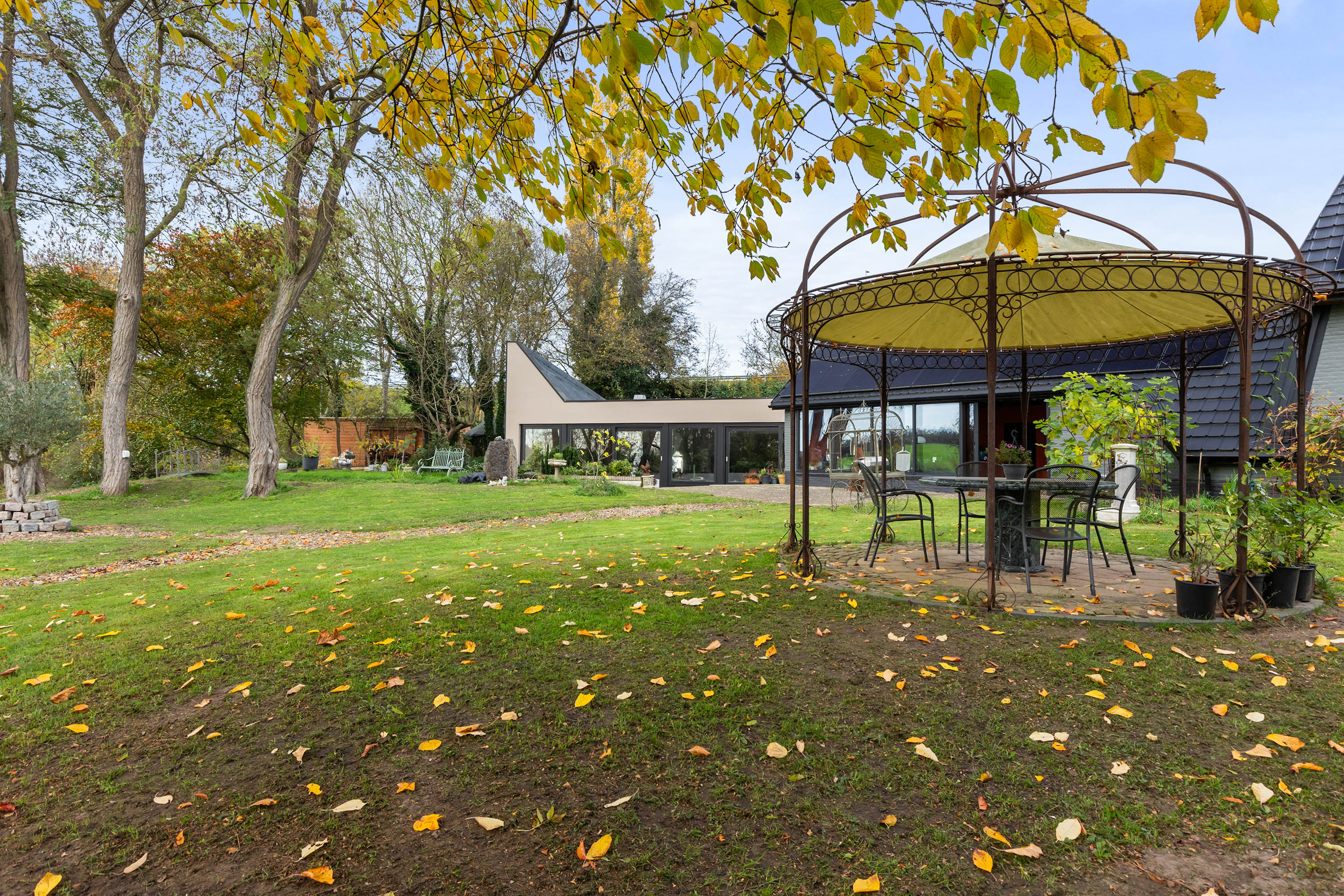 Αγρόκτημα με σύγχρονο μπανγκαλόου στην Epse–μία αξιοσημείωτη σύνθεση ιστορίας, σύγχρονου design και βιώσιμου οράματος. Η ιδιοκτησία προσφέρει περίπου 330 τ.μ. κομψά διαμορφωμένης κατοικίας, εμπλουτισμένη με ένα εμπορικό κτίριο 445 τ.μ., τοποθετημένο σε ανοιχτά χωράφια κοντά στο Deventer με εξαιρετική προβολή κατά μήκος της A1. Μαζί, η κύρια κατοικία και ένα αυτόνομο δευτερεύον διαμέρισμα διαθέτουν τρία υπνοδωμάτια και τρία μπάνια σε 314 τ.μ., εντός εσωτερικών χώρων που ισορροπούν αυθεντικές λεπτομέρειες με σύγχρονη πολυτέλεια.