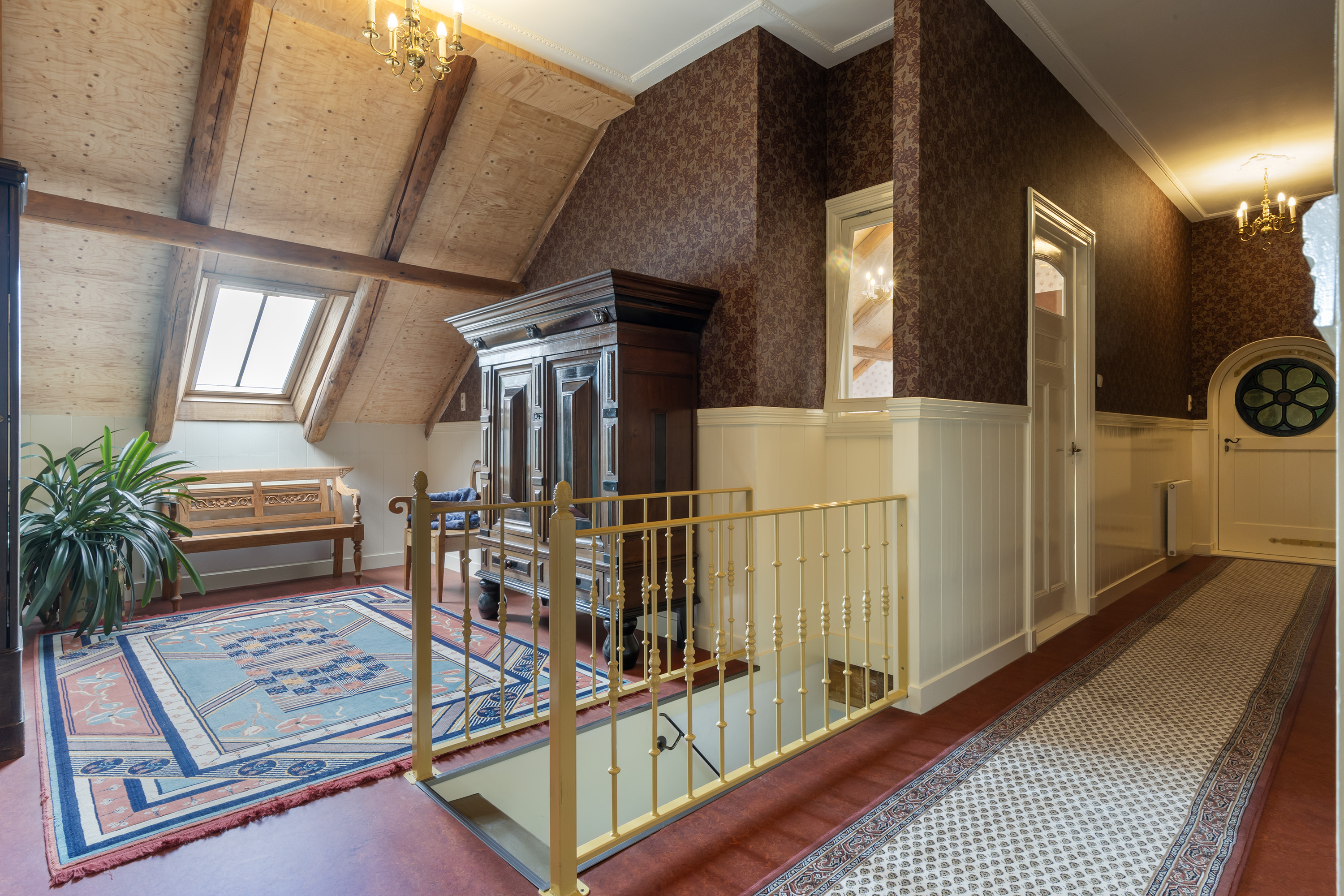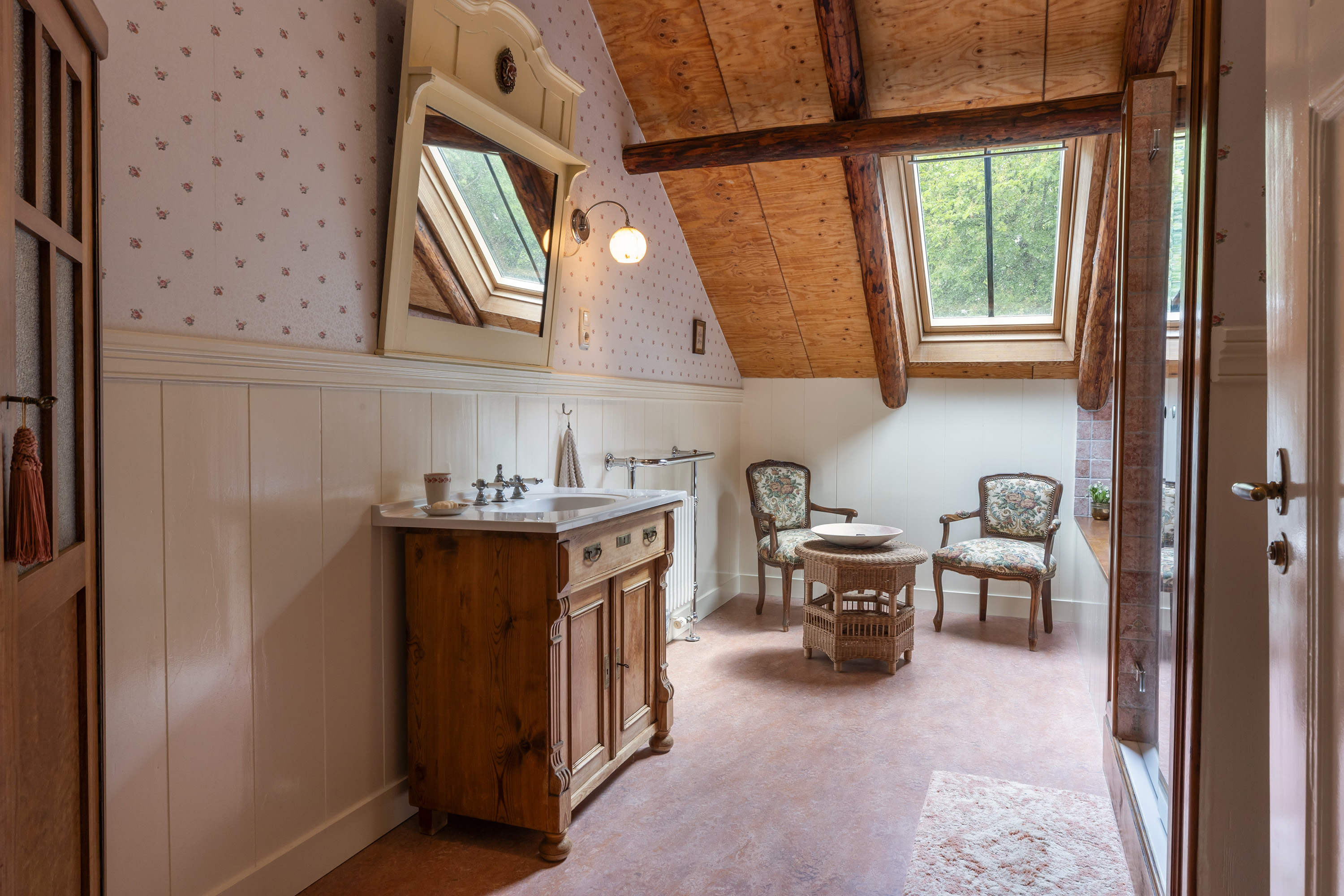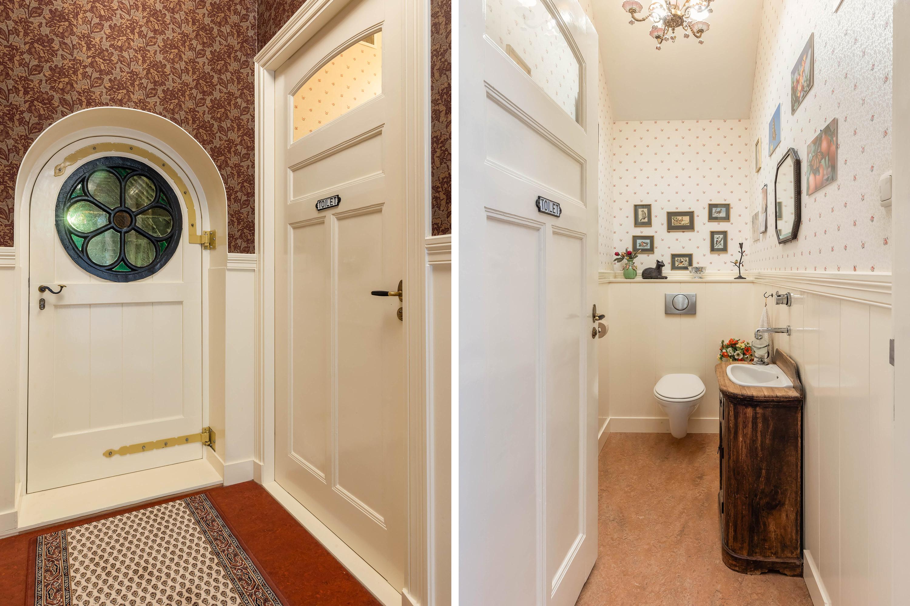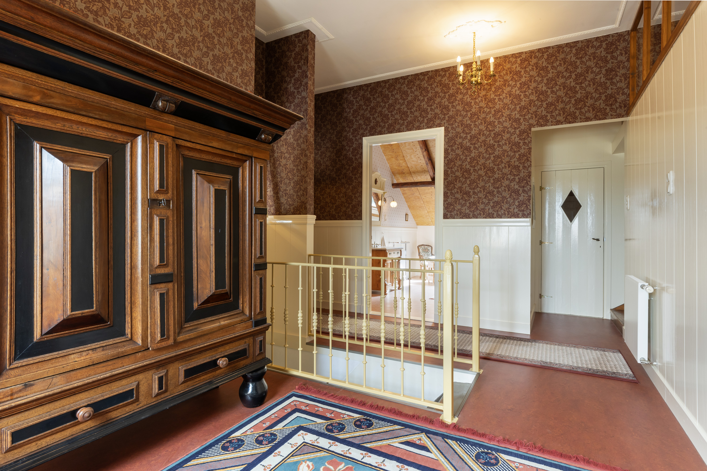 Η κύρια πρόσοψη, με σκαλοπάτια από φυσική πέτρα και διακοσμητική τοιχοποιία, αντικατοπτρίζει την κλασική αρχιτεκτονική του Groningen. Στο εσωτερικό, αποκατεστημένα αυθεντικά στοιχεία—μαρμάρινα δάπεδα, ψηλά παράθυρα, περίτεχνες ξυλουργικές εργασίες—ορίζουν μια ακολουθία επιβλητικών χώρων υποδοχής και ήρεμων ιδιωτικών δωματίων. Η κουζίνα διακρίνεται για τα πέτρινα δάπεδα και την παραδοσιακή κουζίνα AGA, ενώ τα ευρύχωρα μπάνια διαθέτουν επενδύσεις από πέτρα και ξύλο κάτω από φεγγίτες. Ο πρώτος όροφος φιλοξενεί ήσυχα υπνοδωμάτια, γραφείο και ένα γαλήνιο μπάνιο με φως από Velux φεγγίτες και θερμαινόμενο με υβριδική αντλία θερμότητας.