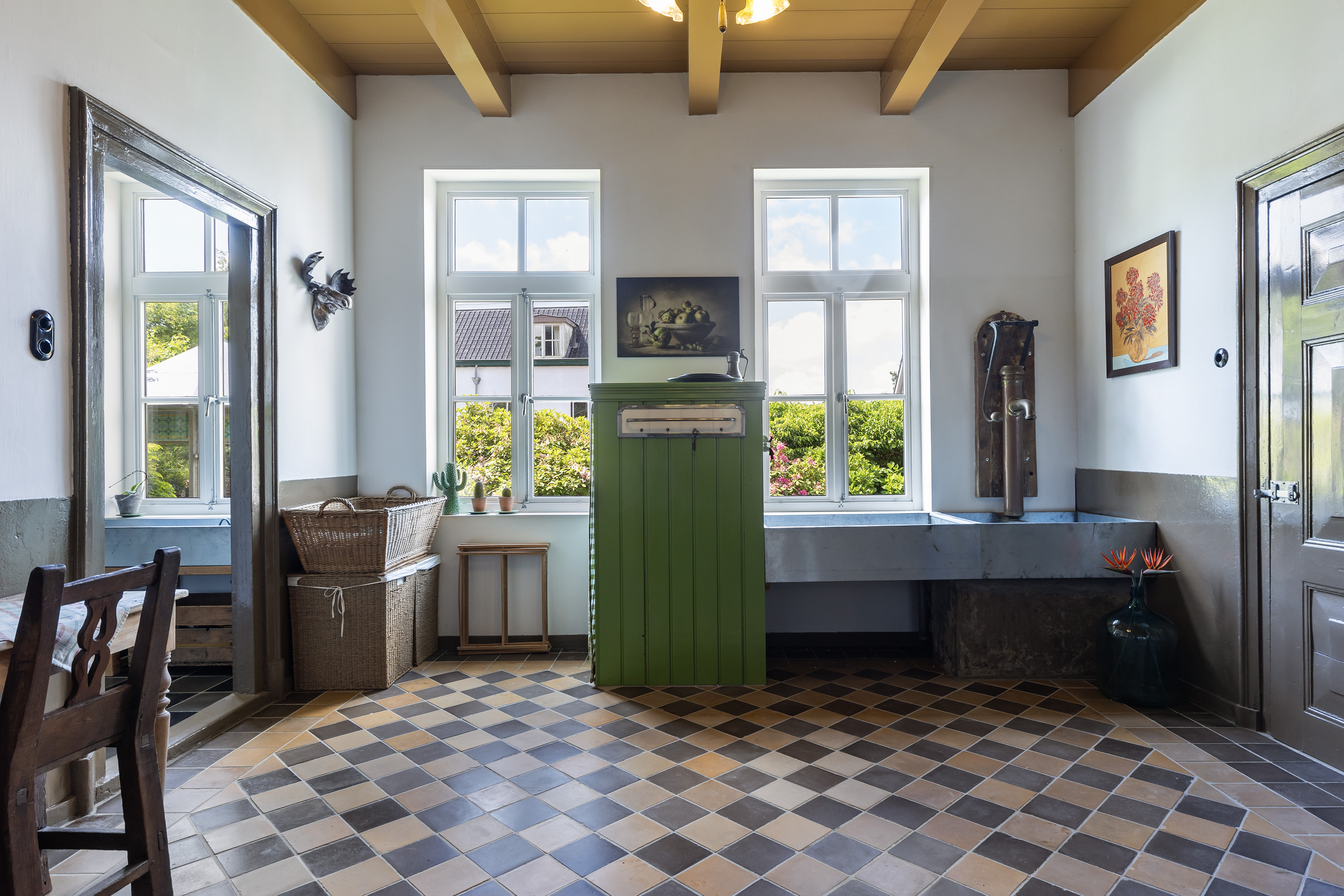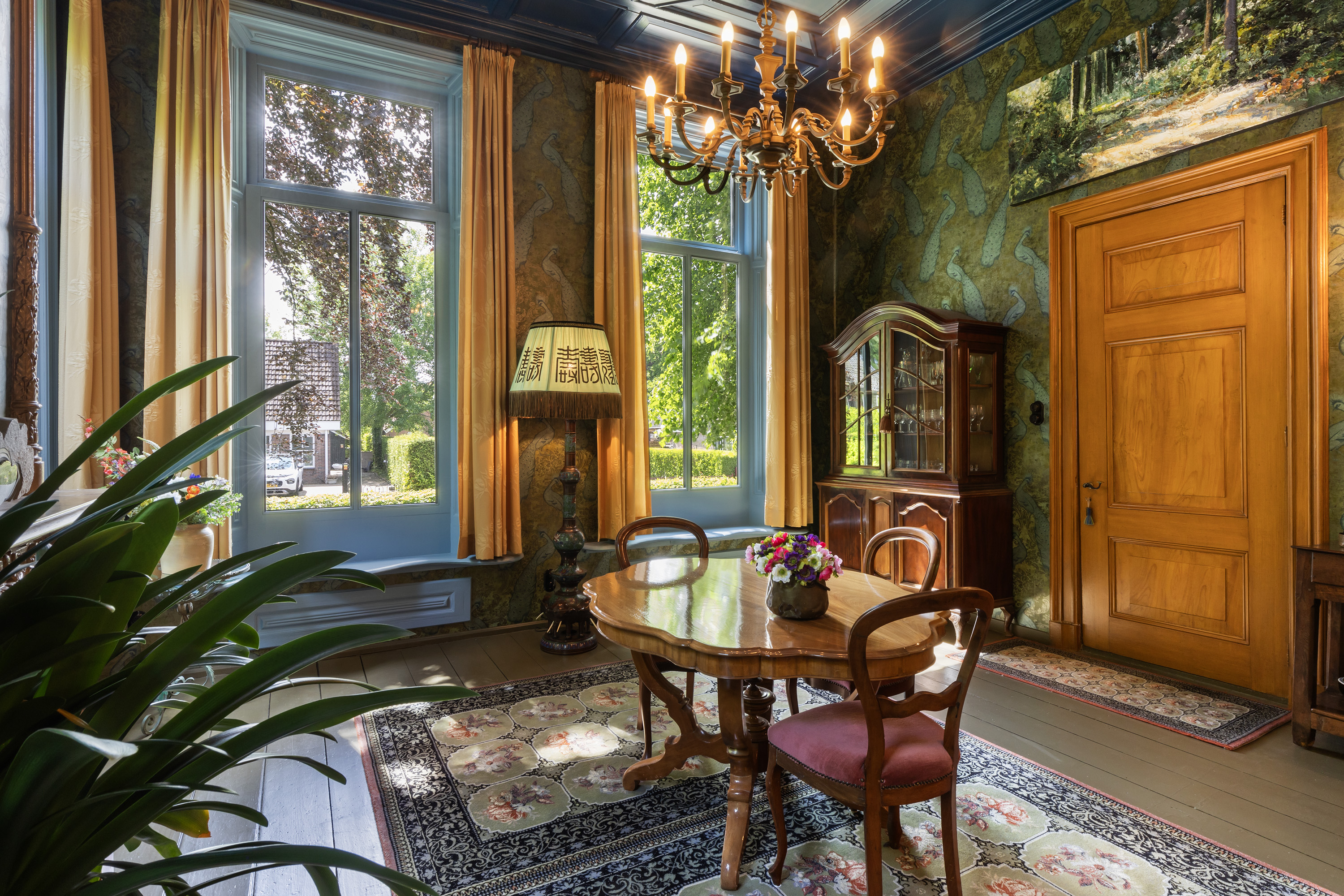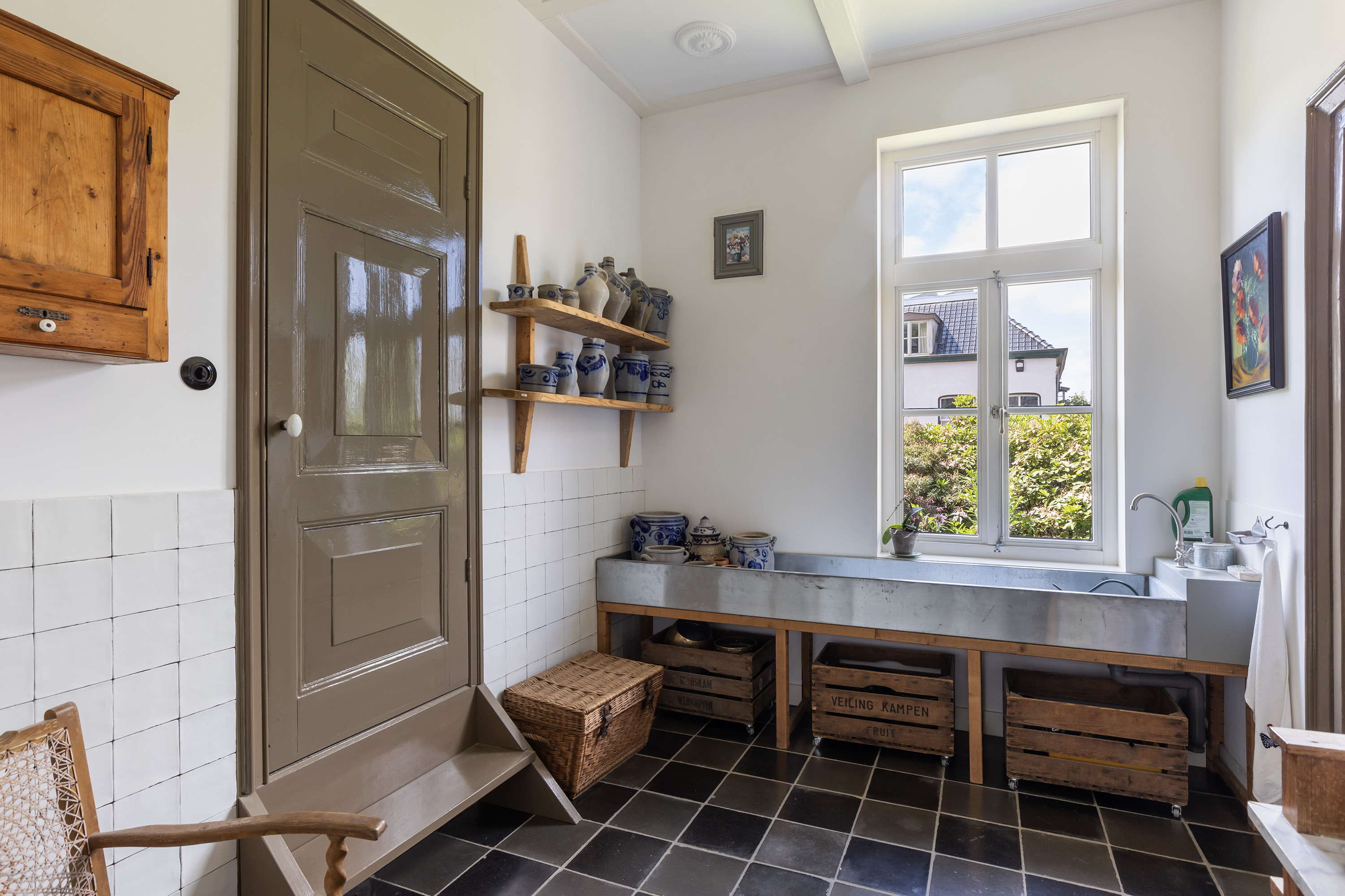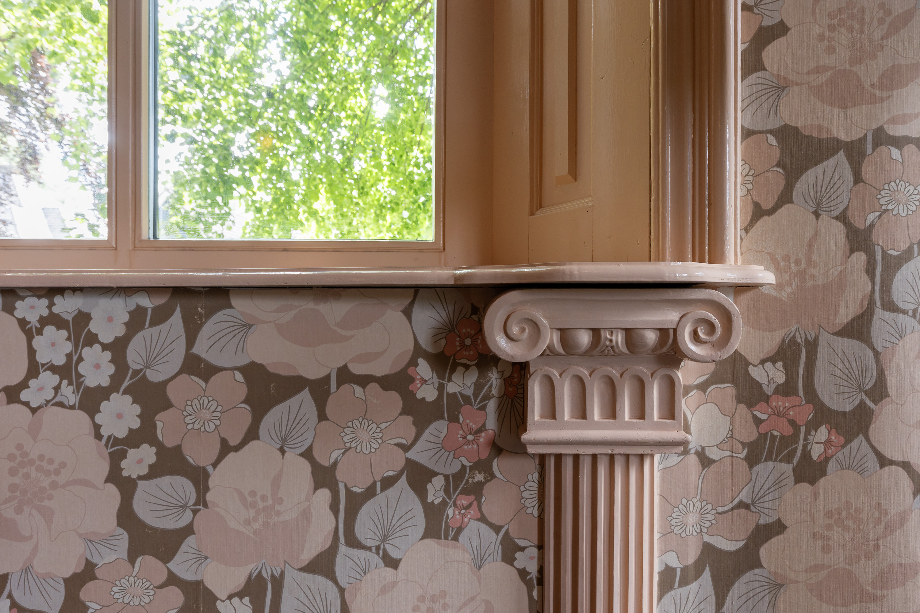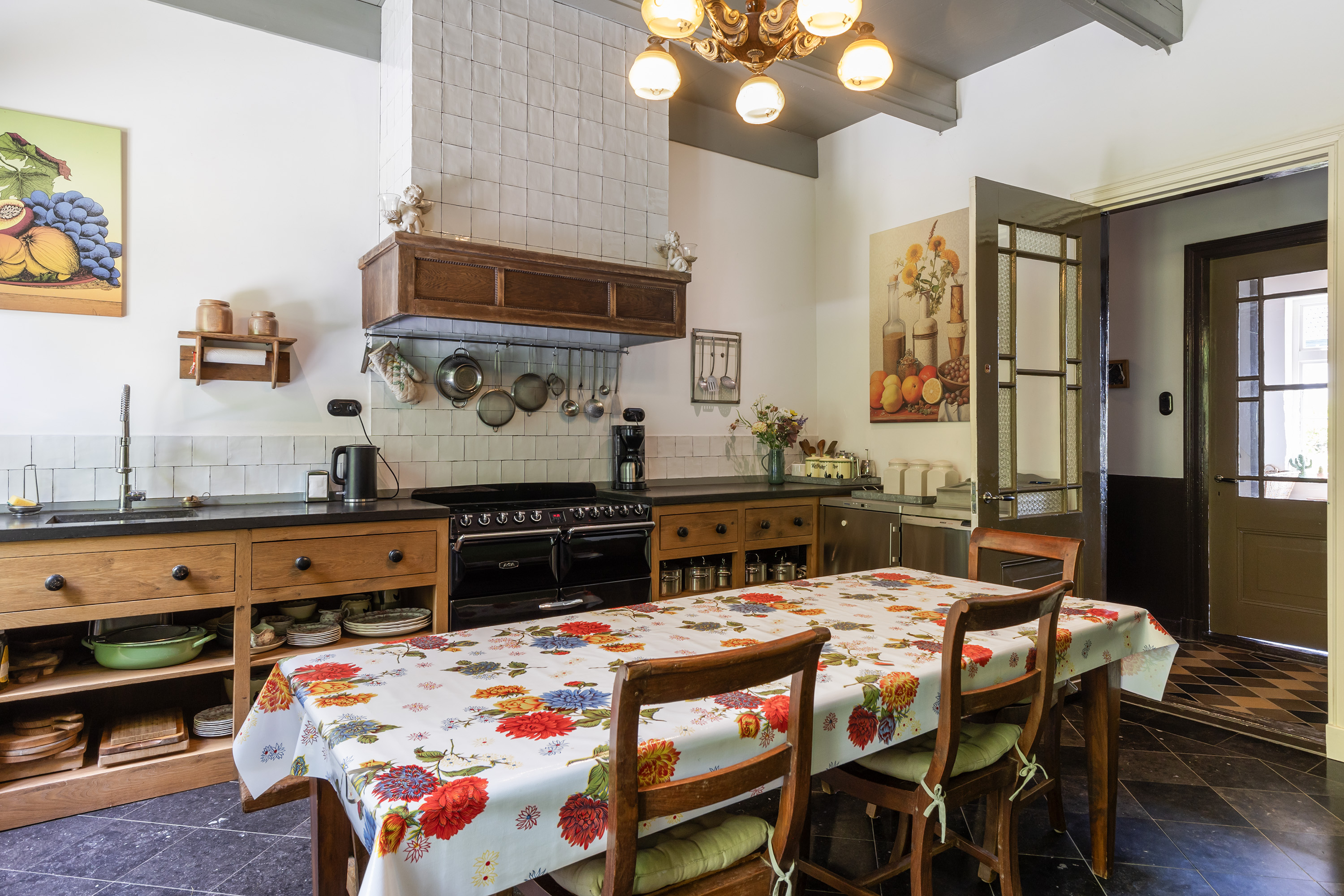 Η κύρια πρόσοψη, με σκαλοπάτια από φυσική πέτρα και διακοσμητική τοιχοποιία, αντικατοπτρίζει την κλασική αρχιτεκτονική του Groningen. Στο εσωτερικό, αποκατεστημένα αυθεντικά στοιχεία—μαρμάρινα δάπεδα, ψηλά παράθυρα, περίτεχνες ξυλουργικές εργασίες—ορίζουν μια ακολουθία επιβλητικών χώρων υποδοχής και ήρεμων ιδιωτικών δωματίων. Η κουζίνα διακρίνεται για τα πέτρινα δάπεδα και την παραδοσιακή κουζίνα AGA, ενώ τα ευρύχωρα μπάνια διαθέτουν επενδύσεις από πέτρα και ξύλο κάτω από φεγγίτες. Ο πρώτος όροφος φιλοξενεί ήσυχα υπνοδωμάτια, γραφείο και ένα γαλήνιο μπάνιο με φως από Velux φεγγίτες και θερμαινόμενο με υβριδική αντλία θερμότητας.