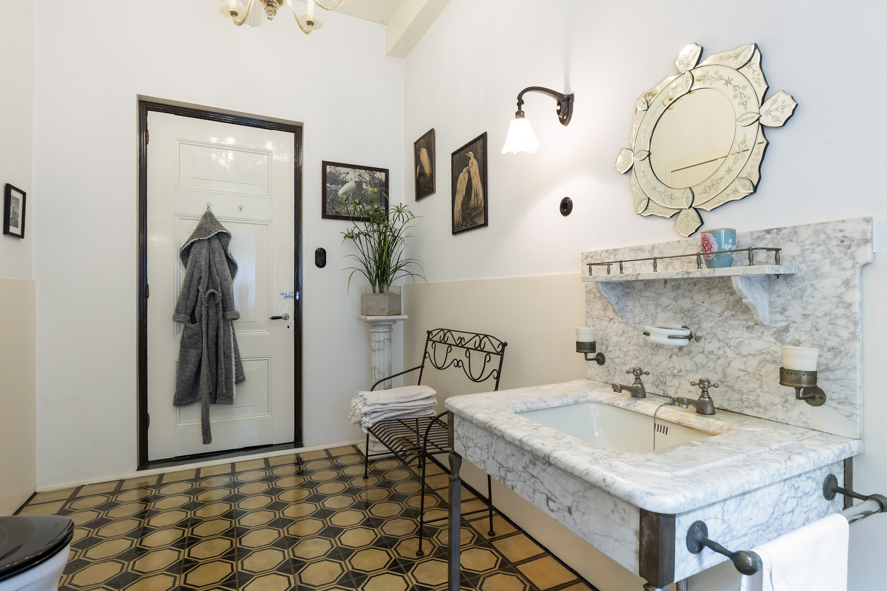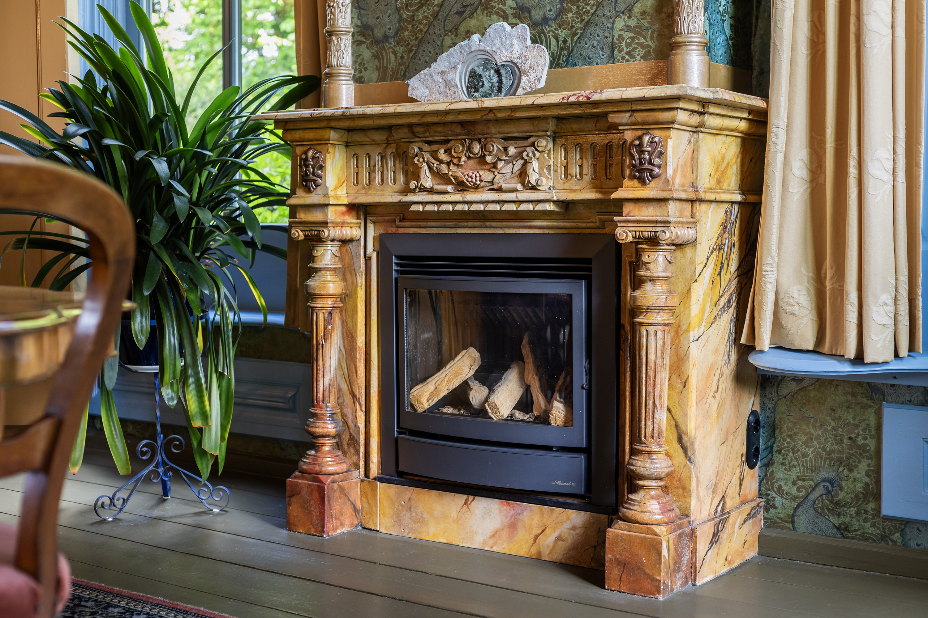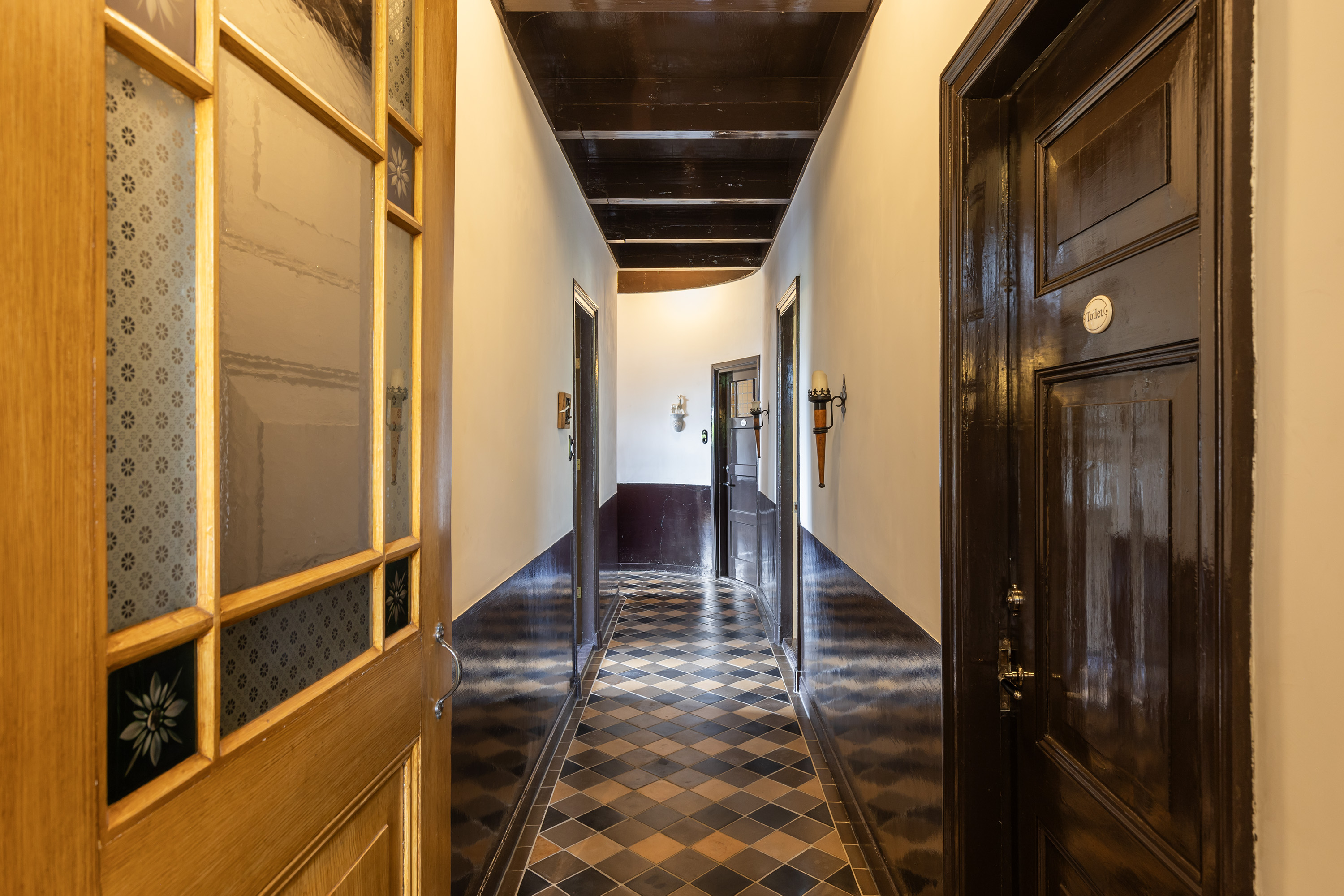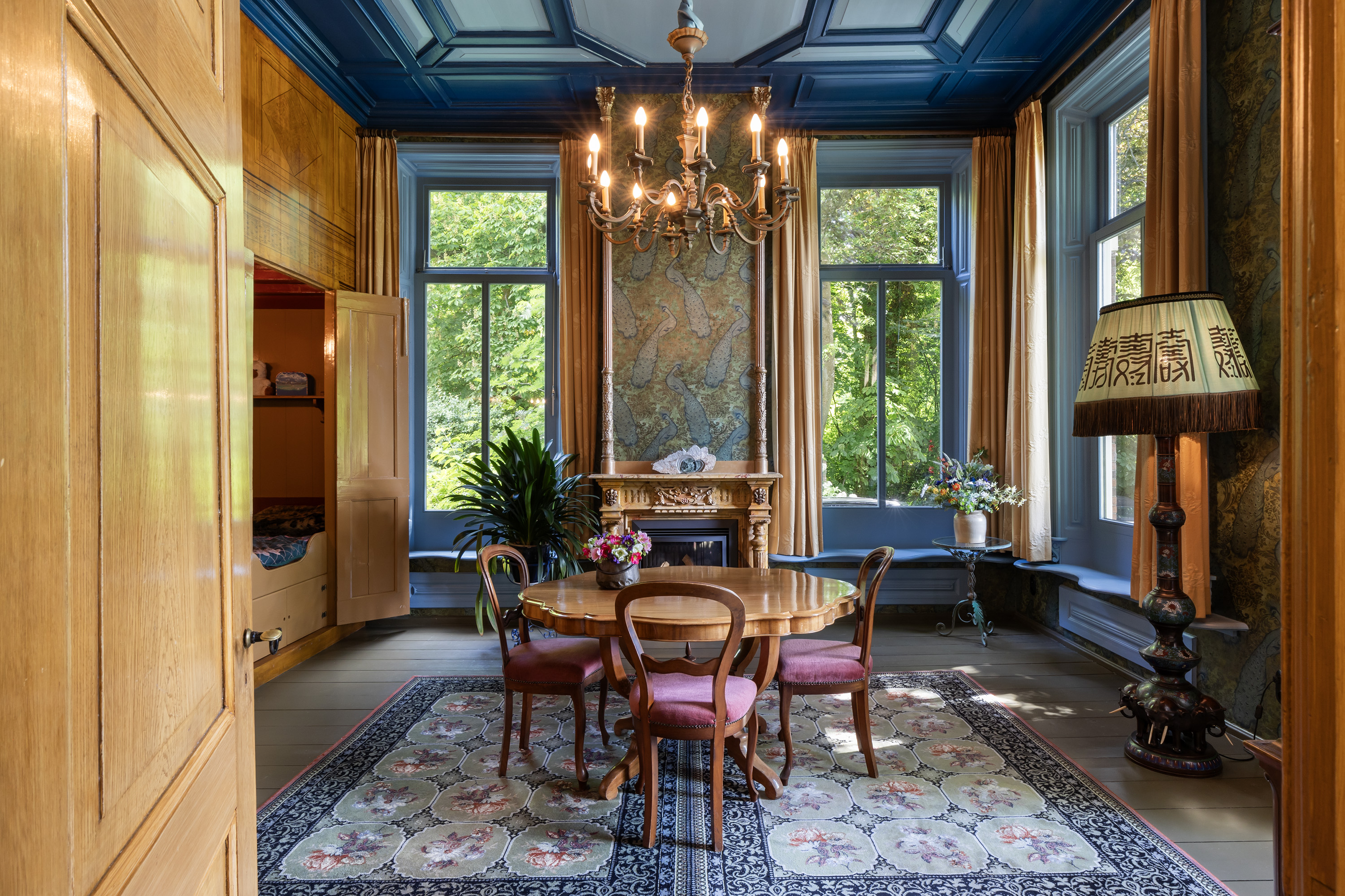 Η κύρια πρόσοψη, με σκαλοπάτια από φυσική πέτρα και διακοσμητική τοιχοποιία, αντικατοπτρίζει την κλασική αρχιτεκτονική του Groningen. Στο εσωτερικό, αποκατεστημένα αυθεντικά στοιχεία—μαρμάρινα δάπεδα, ψηλά παράθυρα, περίτεχνες ξυλουργικές εργασίες—ορίζουν μια ακολουθία επιβλητικών χώρων υποδοχής και ήρεμων ιδιωτικών δωματίων. Η κουζίνα διακρίνεται για τα πέτρινα δάπεδα και την παραδοσιακή κουζίνα AGA, ενώ τα ευρύχωρα μπάνια διαθέτουν επενδύσεις από πέτρα και ξύλο κάτω από φεγγίτες. Ο πρώτος όροφος φιλοξενεί ήσυχα υπνοδωμάτια, γραφείο και ένα γαλήνιο μπάνιο με φως από Velux φεγγίτες και θερμαινόμενο με υβριδική αντλία θερμότητας.