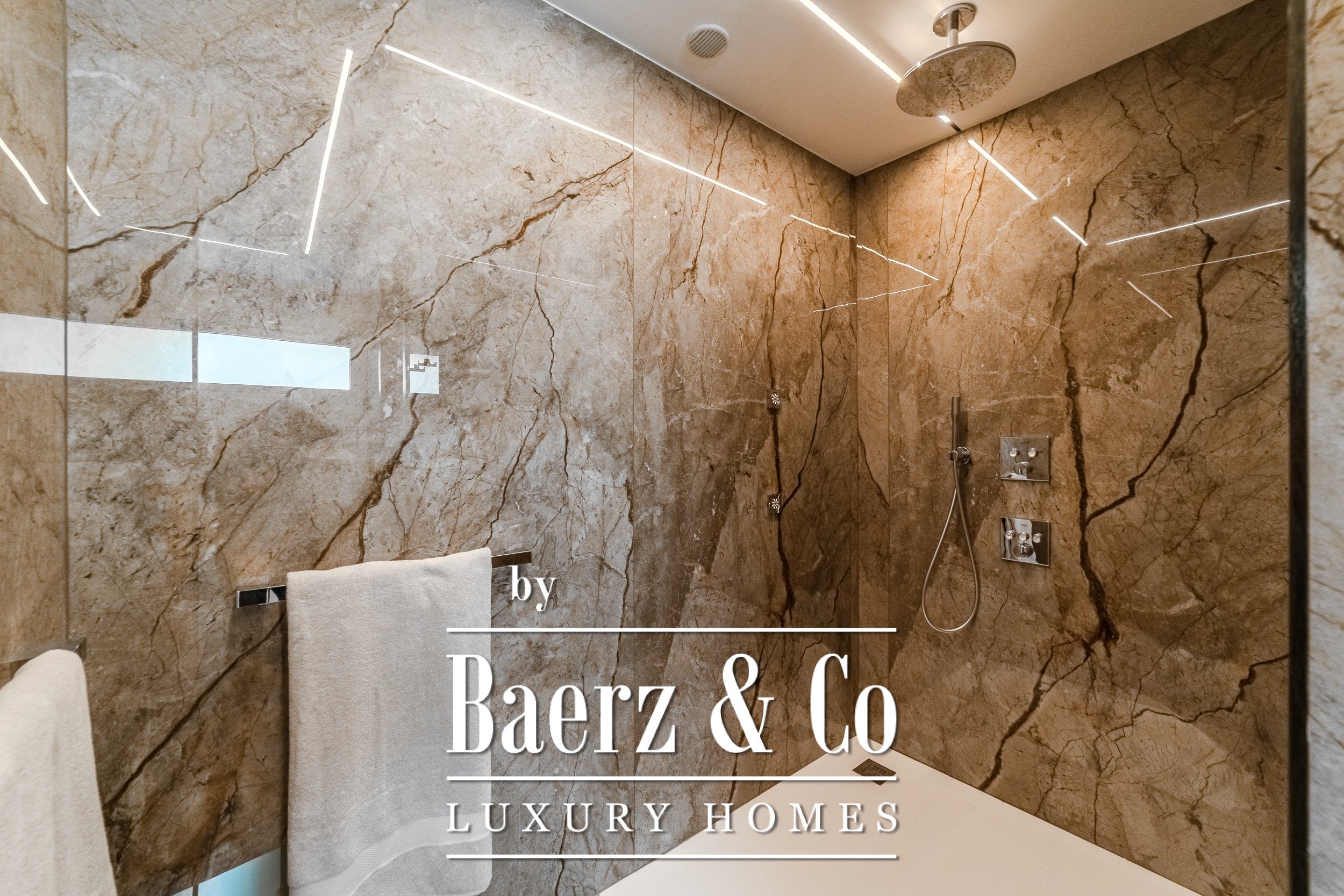 Κάθε μία από τις τέσσερις κρεβατοκάμαρες περιλαμβάνει en-suite μπάνιο και ευρύχωρες walk-in ντουλάπες, με τη δυνατότητα διαμόρφωσης πέμπτης κρεβατοκάμαρας. Ιταλικές σχεδιαστικές δημιουργίες εμπλουτίζουν τους χώρους διαβίωσης, ενώ μια εντυπωσιακά σύγχρονη κουζίνα δεσπόζει στον open-plan εσωτερικό χώρο. Ευρύχωροι χώροι σαλονιού και τραπεζαρίας διασυνδέονται ιδανικά με τον εξωτερικό χώρο, οδηγώντας σε μεγάλη βεράντα και θερμαινόμενη πισίνα. Πανοραμική θέα στη θάλασσα και το βουνό προσφέρει μια μοναδική αίσθηση ηρεμίας από κάθε σημείο.