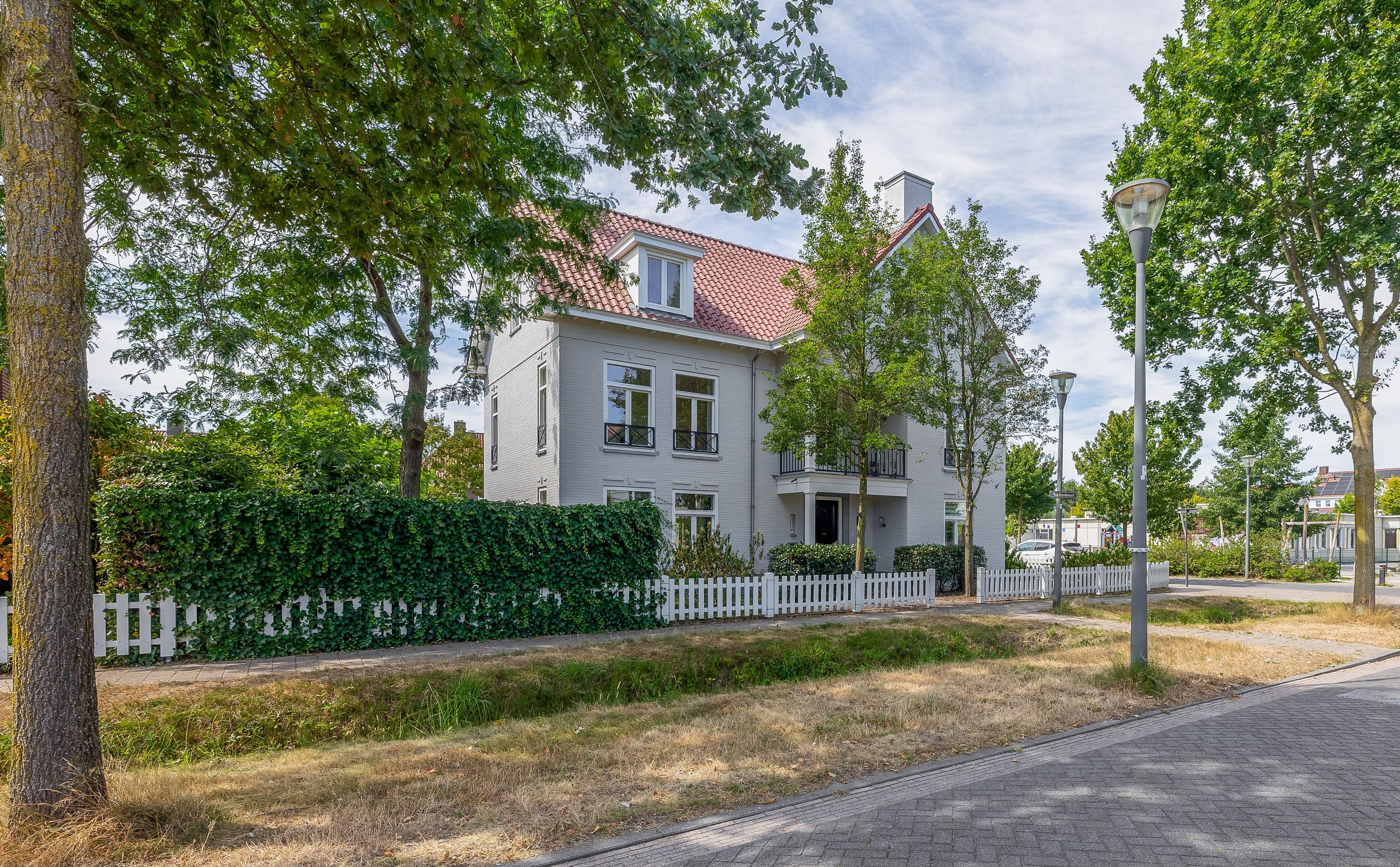 Αυτή η ανεξάρτητη βίλα στο Helmond βρίσκεται στην καρδιά της συνοικίας Brand του Brandevoort, σε γωνιακό οικόπεδο που ισορροπεί αρμονικά την ιδιωτικότητα με την αίσθηση ανοιχτότητας. Η κατοικία ξεχωρίζει με τη στέγη από κόκκινα κεραμίδια, τις προσεγμένες προεξοχές, τα μπαλκόνια και τη μοναδική τοιχοποιία, προσφέροντας έντονη ταυτότητα σε ένα ζωντανό αλλά ήσυχο οικιστικό περιβάλλον.