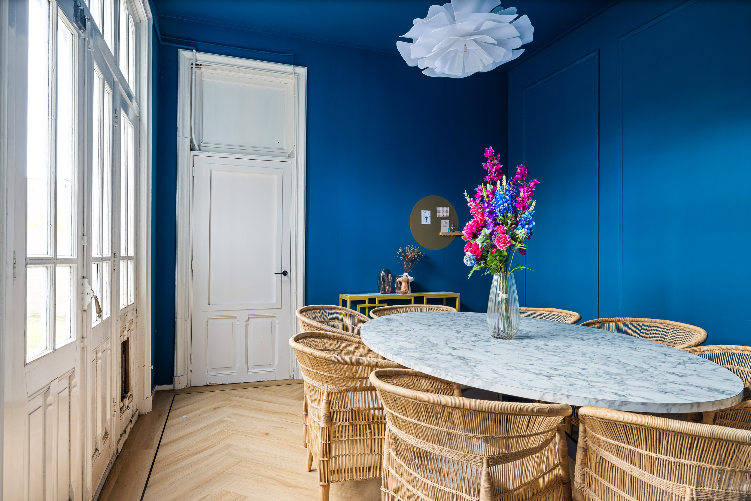 Το ιστορικό αστικό σπίτι στην Joure της Ολλανδίας προσφέρει έναν σπάνιο συνδυασμό προέλευσης, σχεδιασμού και ευελιξίας για διαβίωση και εργασία στην καρδιά της Φριζίας. Αυτό το Εθνικό Μνημείο Πολιτιστικής Κληρονομιάς, που χρονολογείται από το 1904 και έχει σχεδιαστεί από τον αρχιτέκτονα C.H. Peters, δεσπόζει στη φημισμένη Midstraat. Τα νεογοτθικά στοιχεία και οι νεορυγεννησιακές λεπτομέρειες αποτυπώνονται στην περίτεχνα διακοσμημένη πρόσοψη και την προσεγμένη λιθοδομή, με κάθε λεπτομέρεια να αντανακλά τη δεξιοτεχνία της εποχής, που παραμένει ζωντανή σε όλο το εσωτερικό των 416 τ.μ.