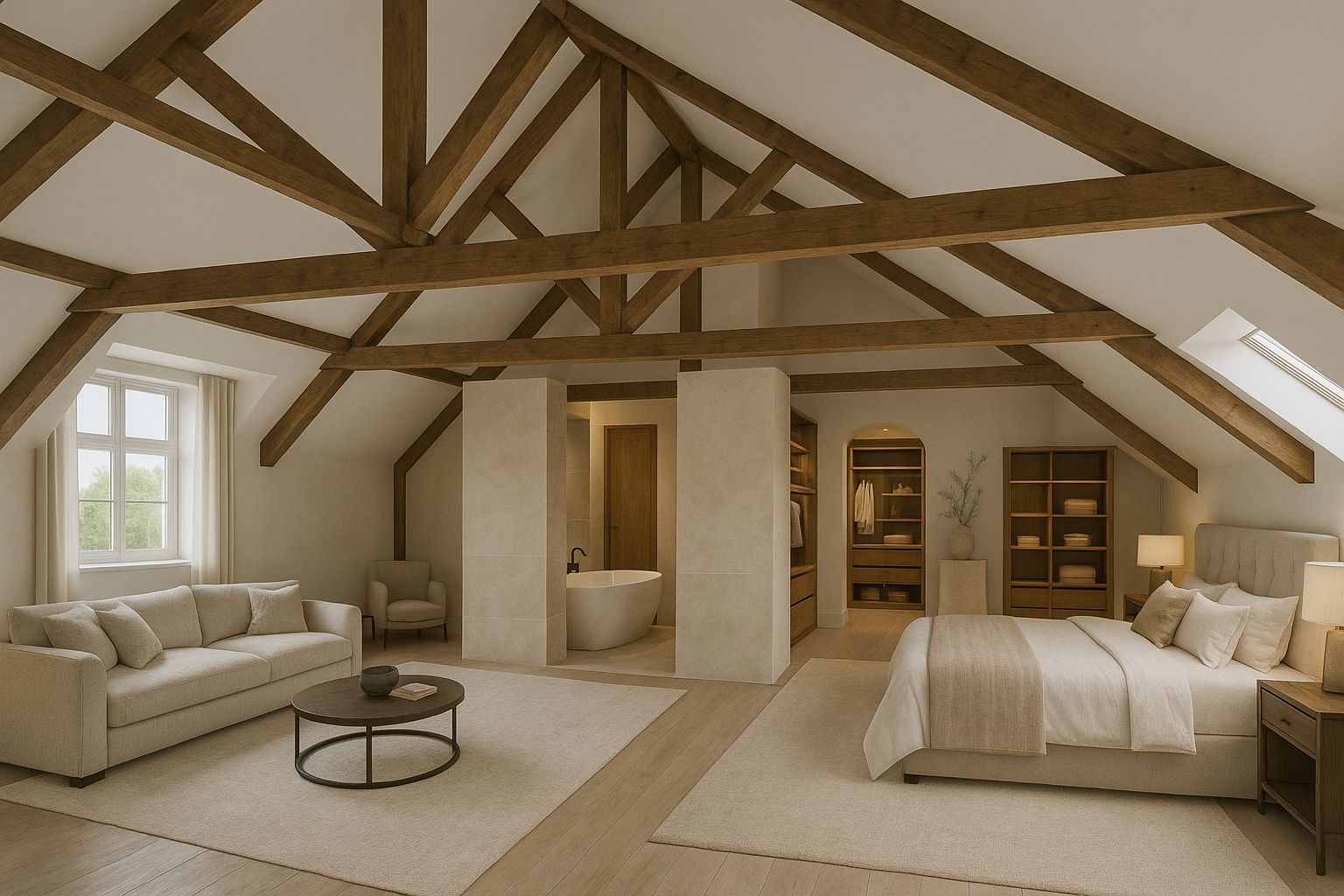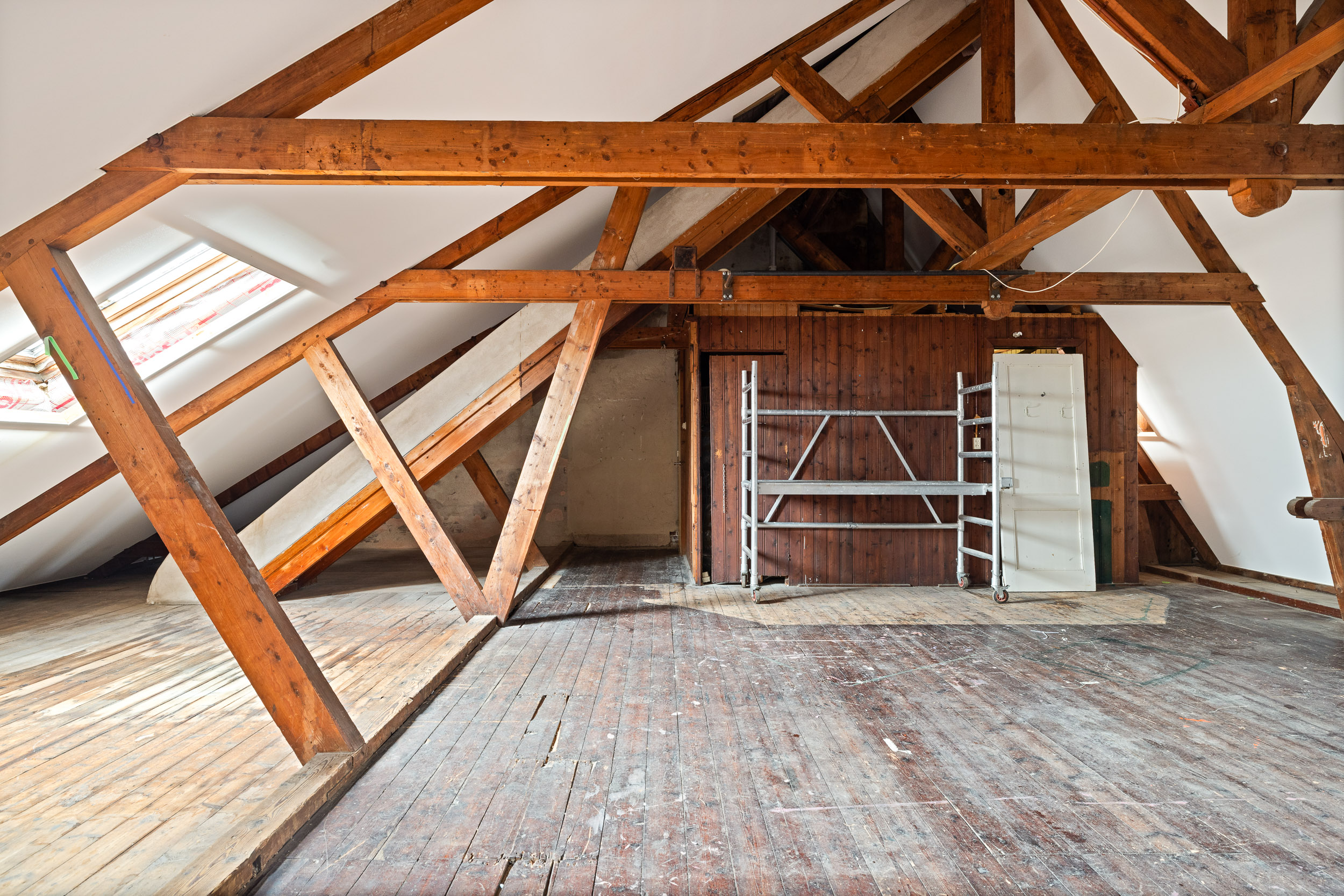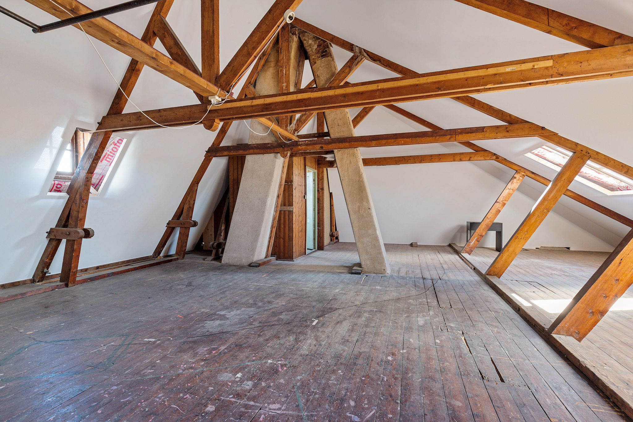 Μία επιβλητική σκάλα οδηγεί στον πρώτο όροφο, όπου τα δωμάτια en suite διαθέτουν συρόμενες πόρτες με ιστορικά μπρούτζινα εξαρτήματα, δάπεδα παρκέ και διατηρημένο τζάκι από μαύρο μάρμαρο. Η ζώνη καθιστικού επεκτείνεται σε μια ευρύχωρη ταράτσα 45 τ.μ., ενώ μια επιπλέον κουζίνα και δύο υπνοδωμάτια αποτυπώνουν τη συνέχεια της κληρονομιάς με δομική ακεραιότητα. Ο δεύτερος όροφος περιλαμβάνει μια ανοιχτή σοφίτα 85 τ.μ. με στιβαρές ξύλινες δοκούς, προσφέροντας άπλετο ύψος και προοπτικές για μελλοντικό ατελιέ ή ανεξάρτητο διαμέρισμα.