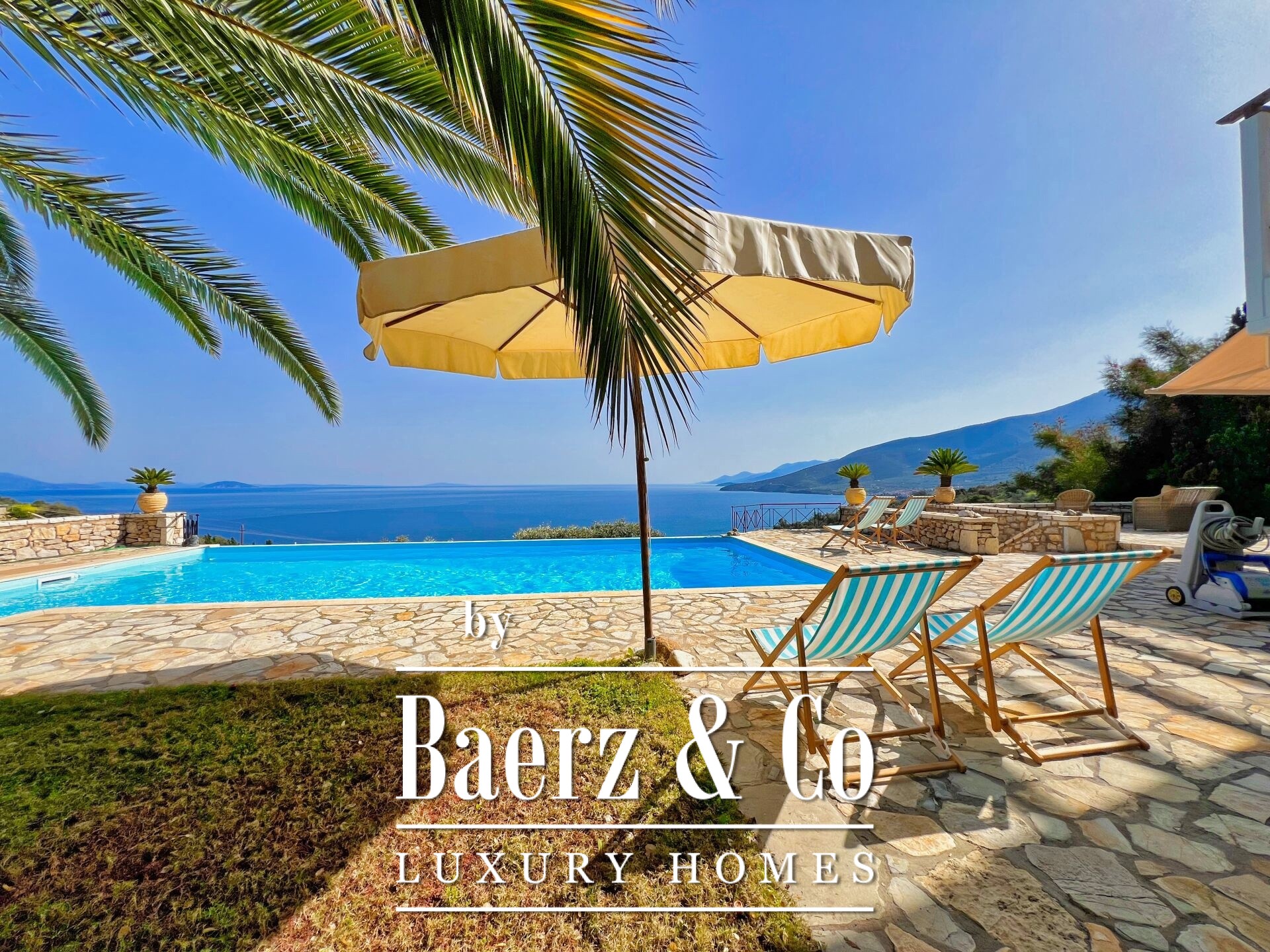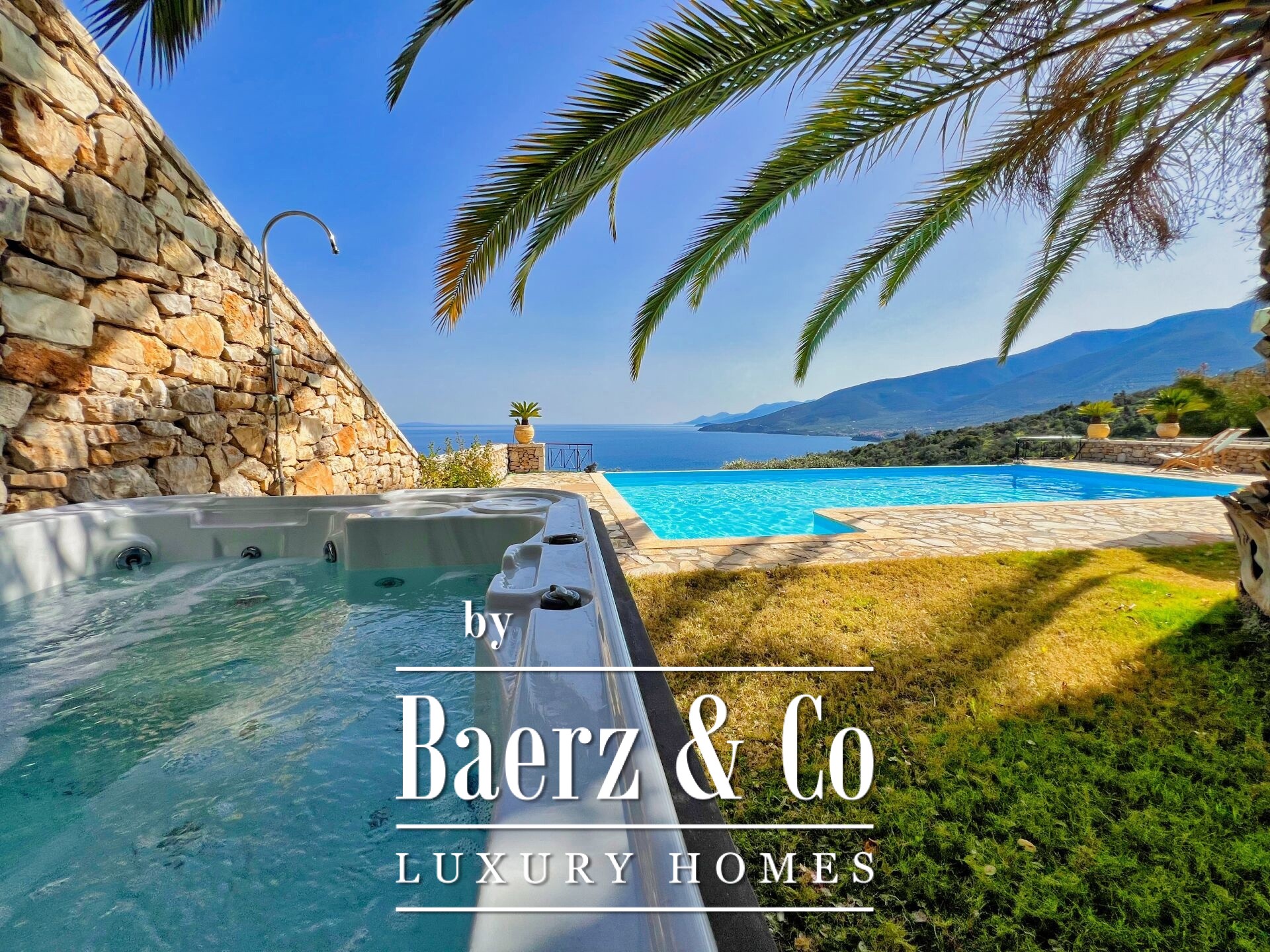 Στους εξωτερικούς χώρους, πισίνα 50 m² και ζώνη jacuzzi εναρμονίζονται με τη διαμορφωμένη φύση. Η ασφάλεια διασφαλίζεται με διπλό σύστημα εισόδου, εκ των οποίων το ένα είναι ηλεκτρικά ελεγχόμενο, και σκεπαστό χώρο στάθμευσης για έως και τρία αυτοκίνητα, καθώς και αποθήκη 15 m². Παραδίδεται με τα περισσότερα έπιπλα, προσφέροντας διακριτική φινέτσα και προνομιακή θέα στο Κιβέρι.