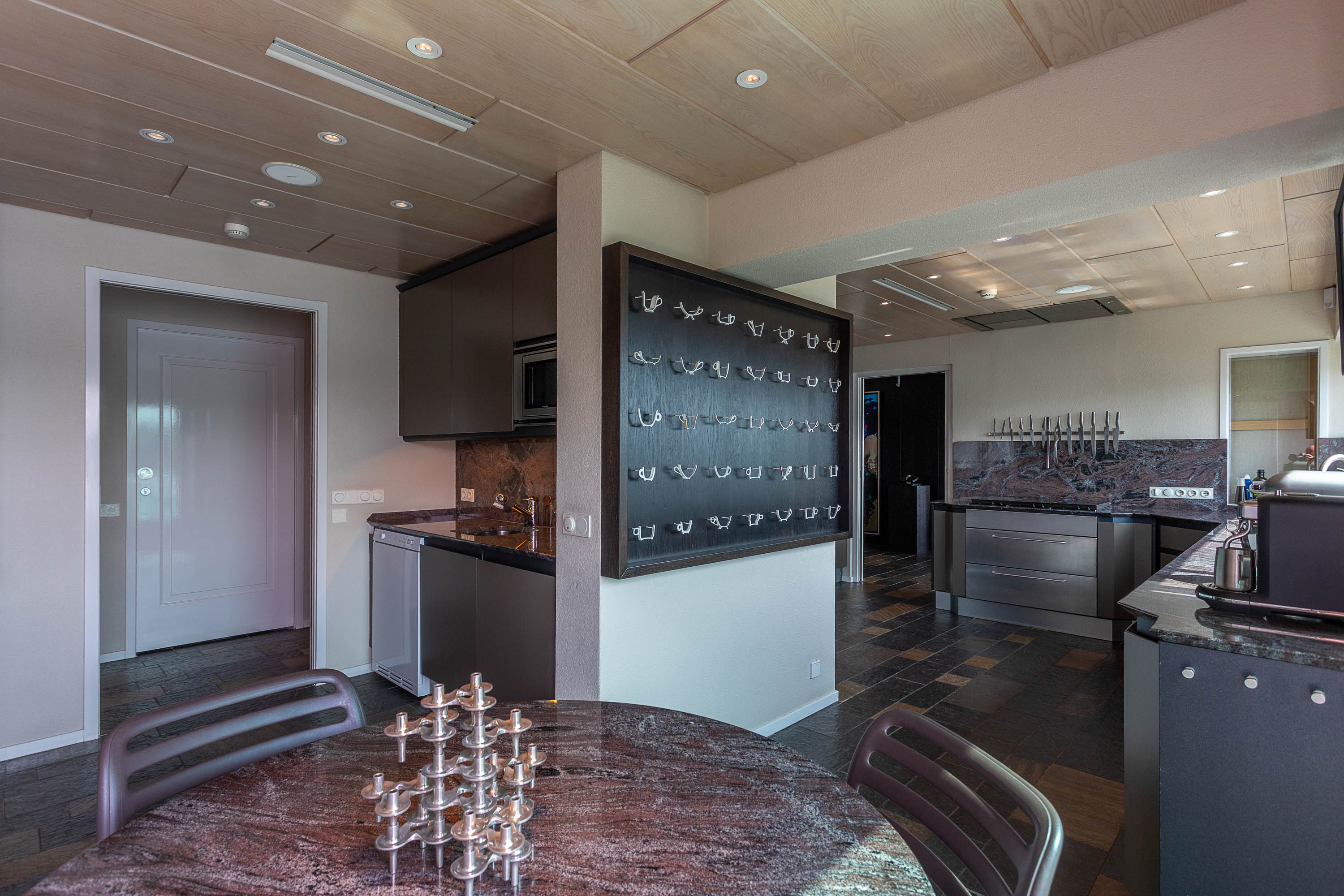 Στο κάτω επίπεδο ξετυλίγεται ένα πλήρες κέντρο ευεξίας: πισίνα με jet stream, καταρράκτη, υδρομασάζ και χώρο χαλάρωσης προσφέροντας αίσθηση ιδιωτικού spa. Η βιωσιμότητα διαπερνά κάθε λεπτομέρεια: 58 φωτοβολταϊκά πάνελ – περιλαμβανομένων 23 πάνελ PVT – ηλιακοί συλλέκτες, κλιματισμός, τμηματική ενδοδαπέδια θέρμανση και θερμομονωτικά τζάμια διασφαλίζουν αποτελεσματικότητα και άνεση όλο το χρόνο.