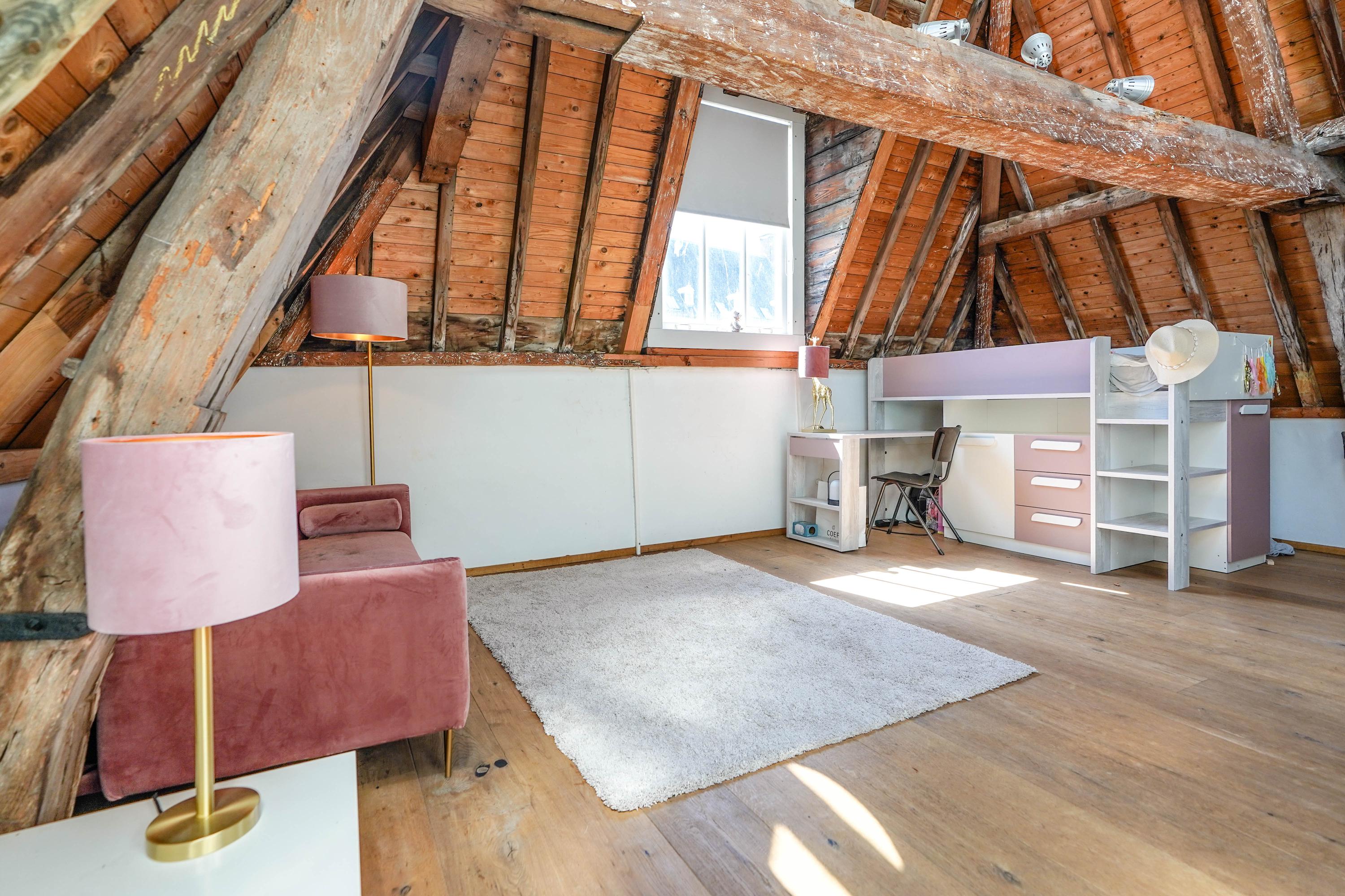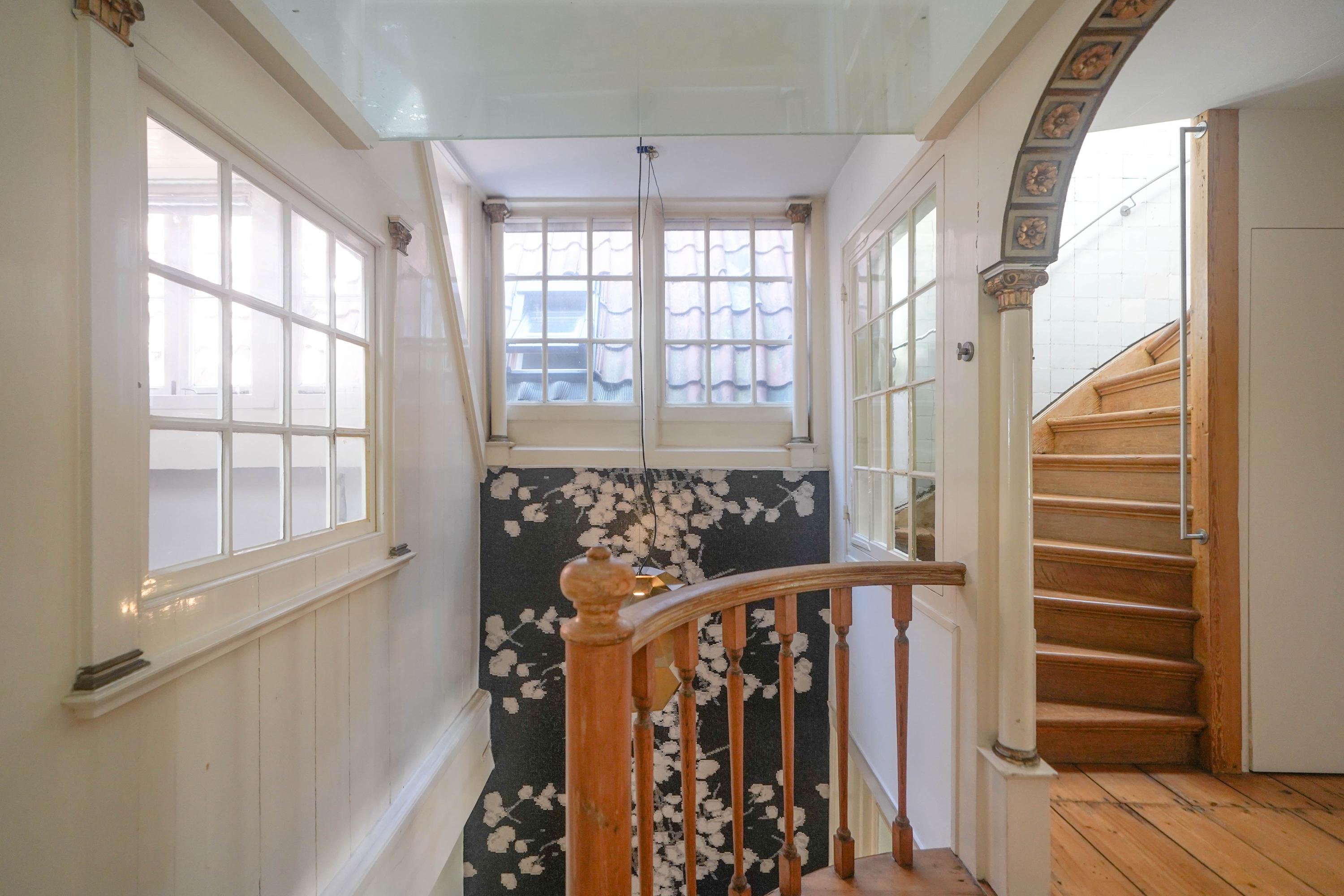 Αυτό το ιστορικό σπίτι στο Leiden προσφέρει μια σπάνια αρμονία αρχιτεκτονικής του 17ου αιώνα και σύγχρονης άνεσης, στηριγμένο στις όχθες του Ρήνου στους πρόποδες του λόφου του κάστρου. Πίσω από τη διακριτική του πρόσοψη, το ακίνητο αποκαλύπτει 437 m² κατοικίσιμου χώρου, κατανεμημένου στο αυθεντικό κύριο σπίτι και σε ένα ανακαινισμένο οπίσθιο κτίσμα. Μεγάλα και υψηλόροφα δωμάτια, ορισμένα με εντυπωσιακή κορυφή οκτώ μέτρων, αναδεικνύονται από εμφανή δοκάρια δρυός, τζάκια από φυσική πέτρα και πλούσια διακοσμητικά γύψου που διατηρούνται από τις ευήμερες απαρχές του ακινήτου.