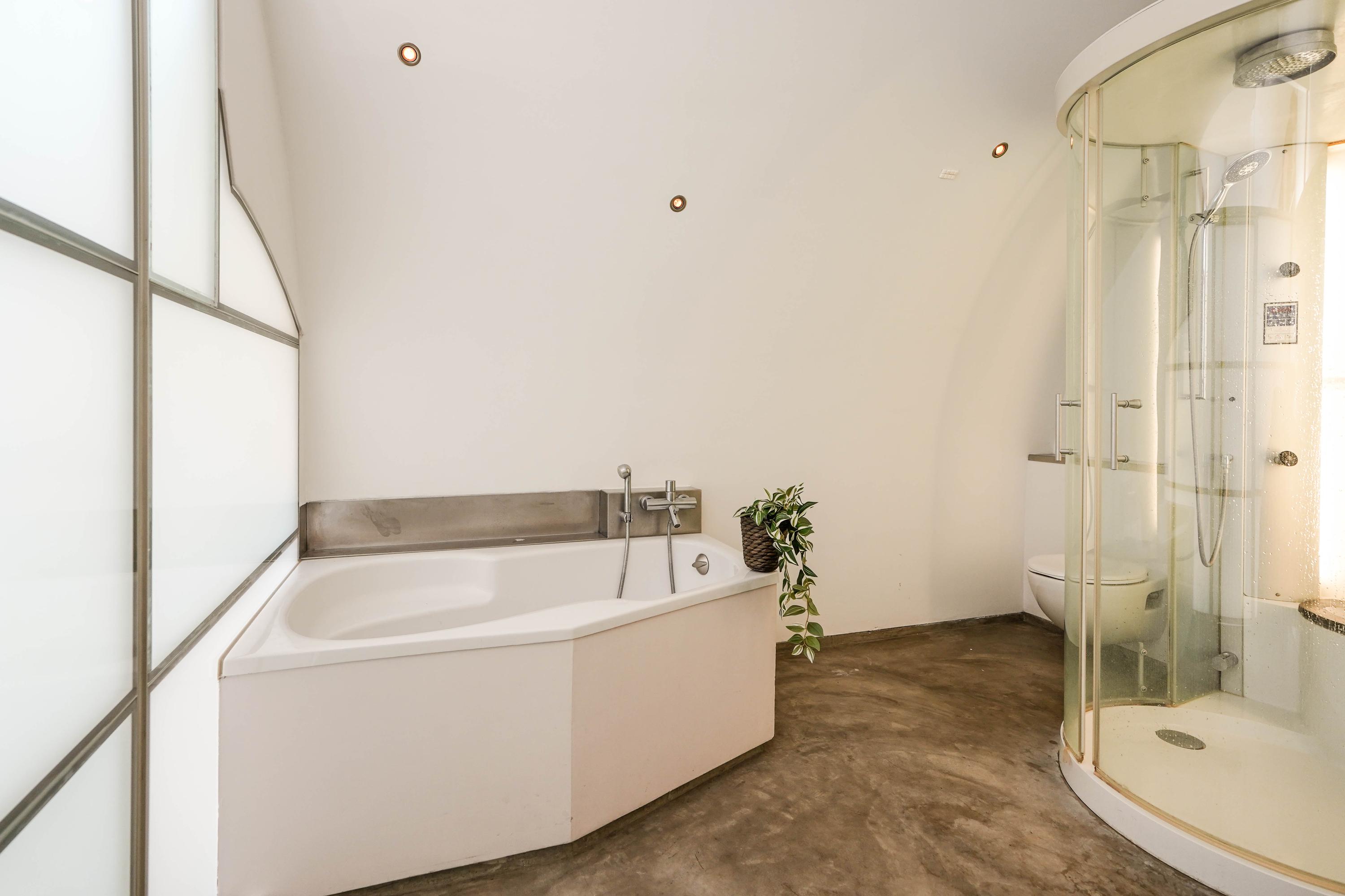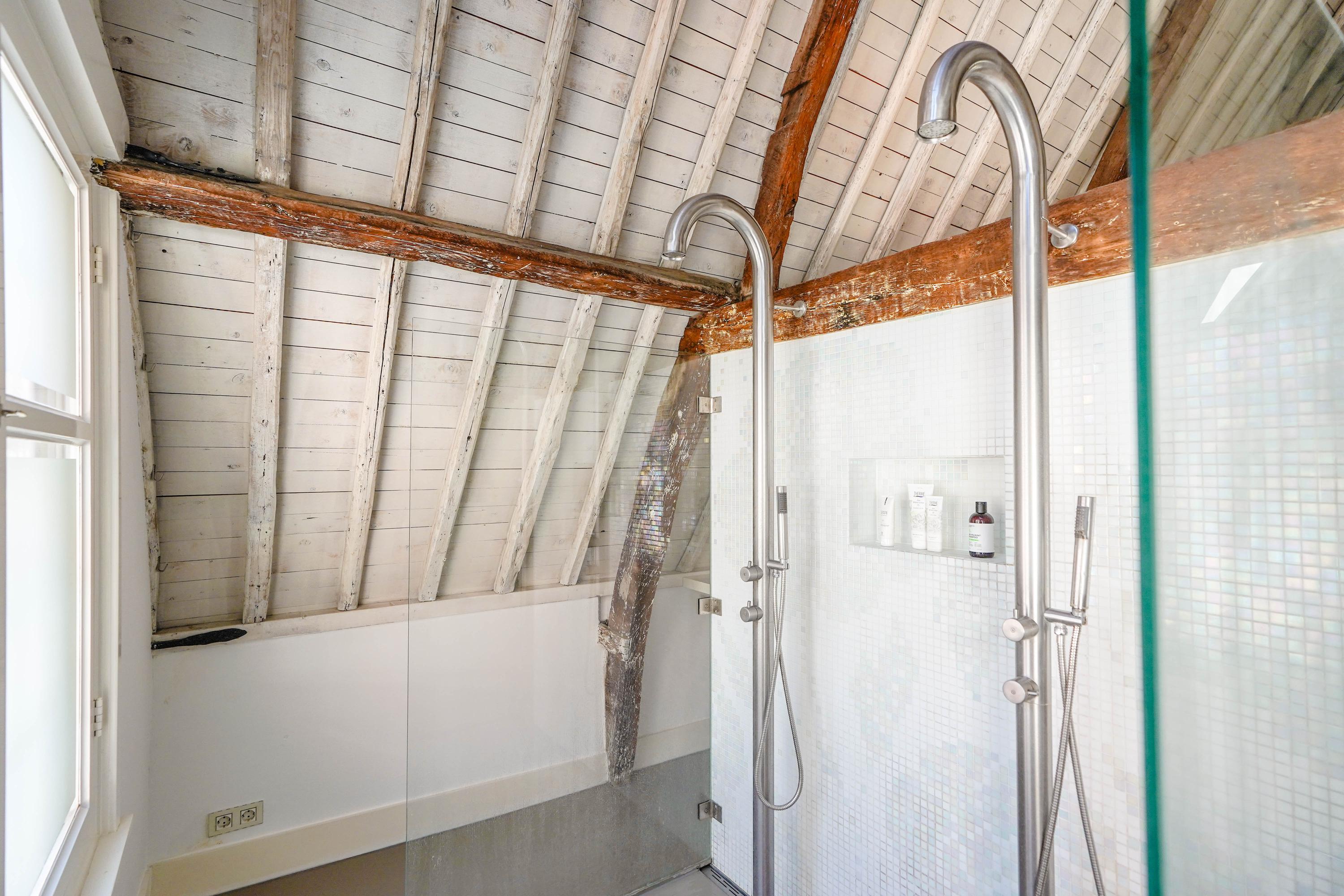 Στον πρώτο όροφο φιλοξενείται ένα σαλόνι 70 m² με θέα στον Ρήνο και την πλατεία Stadhuisplein, καθώς και μια εντυπωσιακή κουζίνα-τραπεζαρία 50 m² με ευρύχωρους πάγκους και τραπέζι δώδεκα ατόμων, προσφέροντας κλίμακα τόσο για συγκεντρώσεις όσο και για άνεση στην καθημερινότητα. Οι χώροι ανάπαυσης εκτείνονται στους ανώτερους ορόφους, αποτελούμενοι από επτά υπνοδωμάτια και τρία μπάνια, καθένα εξοπλισμένο με μεγάλα παράθυρα, εντοιχισμένες ντουλάπες και αποθηκευτικούς χώρους για λευκά είδη, με τη master σουίτα να διαθέτει μπάνιο ensuite κάτω από επιβλητικές σκεπές.