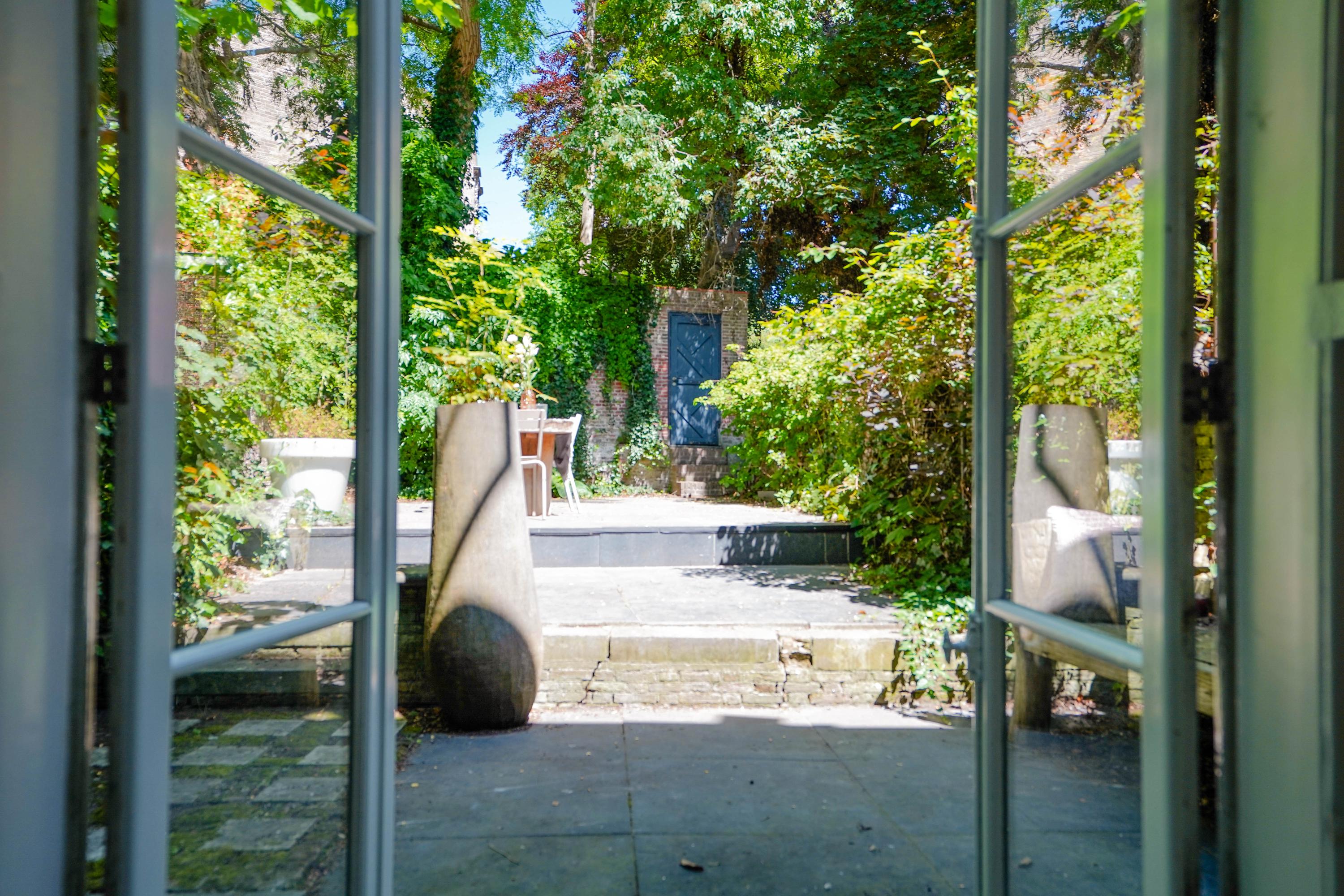 Το οπίσθιο σπίτι συνδέεται άψογα με τον κήπο, ο οποίος αποτελεί όαση στην προστατευόμενη μεσαιωνική καρδιά του Leiden. Σχεδιασμένος τόσο για ιδιωτική χαλάρωση όσο και για κοινωνικότητα, ο κήπος προσφέρει ισόγειο χώρο καθιστικού με επιπλέον κουζίνα, ψηλοτάβανο δεύτερο σαλόνι με θέα το κάστρο και αυτόνομο οίκημα φιλοξενίας. Στοιχεία όπως μηχανικός εξαερισμός, καπνοδόχος, μόνωση στέγης, μερική ενδοδαπέδια θέρμανση και σύνδεση με οπτική ίνα προσδίδουν μοντέρνες ανέσεις, ενώ ο χαρακτηρισμός του ως εθνικό μνημείο και η ένταξη σε προστατευόμενο οικιστικό τοπίο διασφαλίζουν το ιστορικό του κύρος.