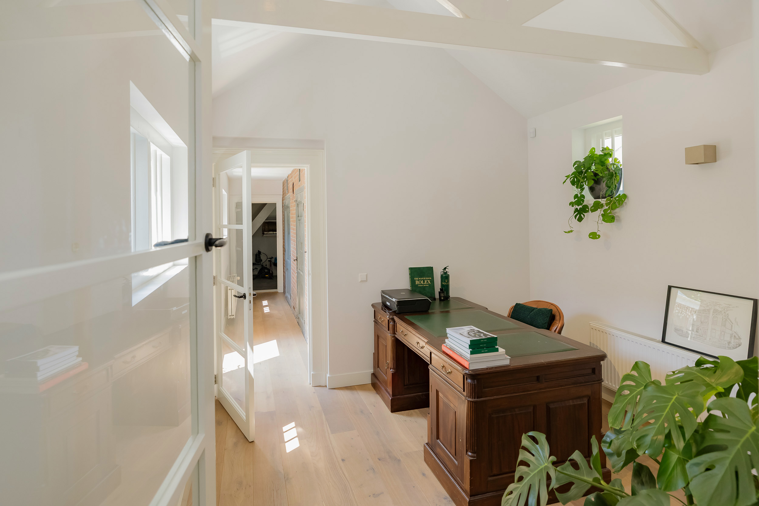 Γύρω από την κατοικία, σιδερένια περίφραξη, ώριμες οξιές και μελετημένη διαμόρφωση προσφέρουν διακριτικότητα και ηρεμία. Τα μέτρα βιωσιμότητας περιλαμβάνουν μόνωση τοίχων και οροφής, ενεργειακά υαλοστάσια, 32 φωτοβολταϊκά πάνελ και δύο λέβητες HR. Σύστημα συναγερμού, φωτιστικά οροφής, κατασκευές επί παραγγελία σε κάθε χώρο και υπέροχα δρύινα δάπεδα ολοκληρώνουν μια προσεγμένη ανακαίνιση, που αναδεικνύει ένα townhouse στη Lisse όπου η ιστορική κληρονομιά συναντά την εκλεπτυσμένη διαβίωση.